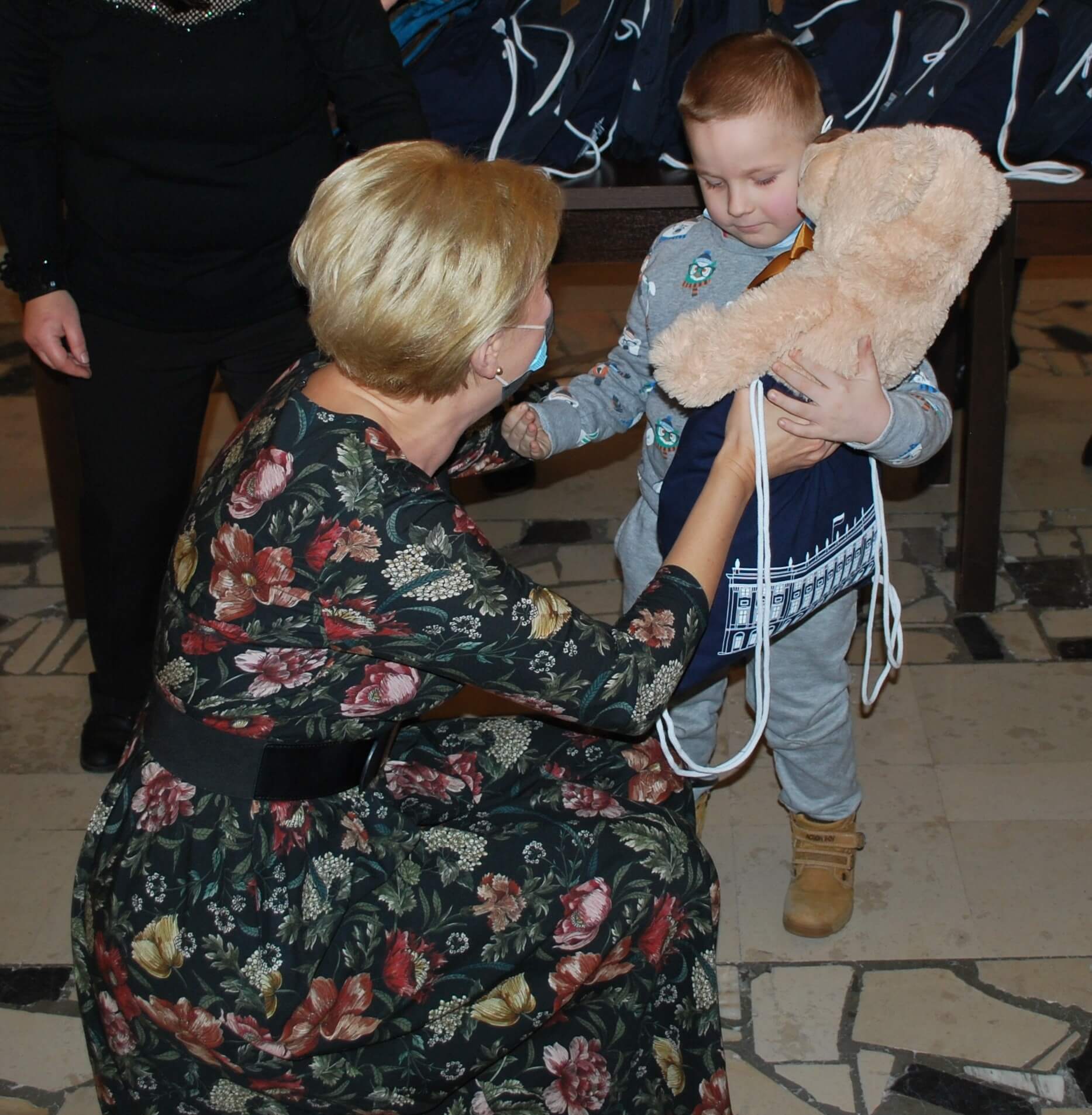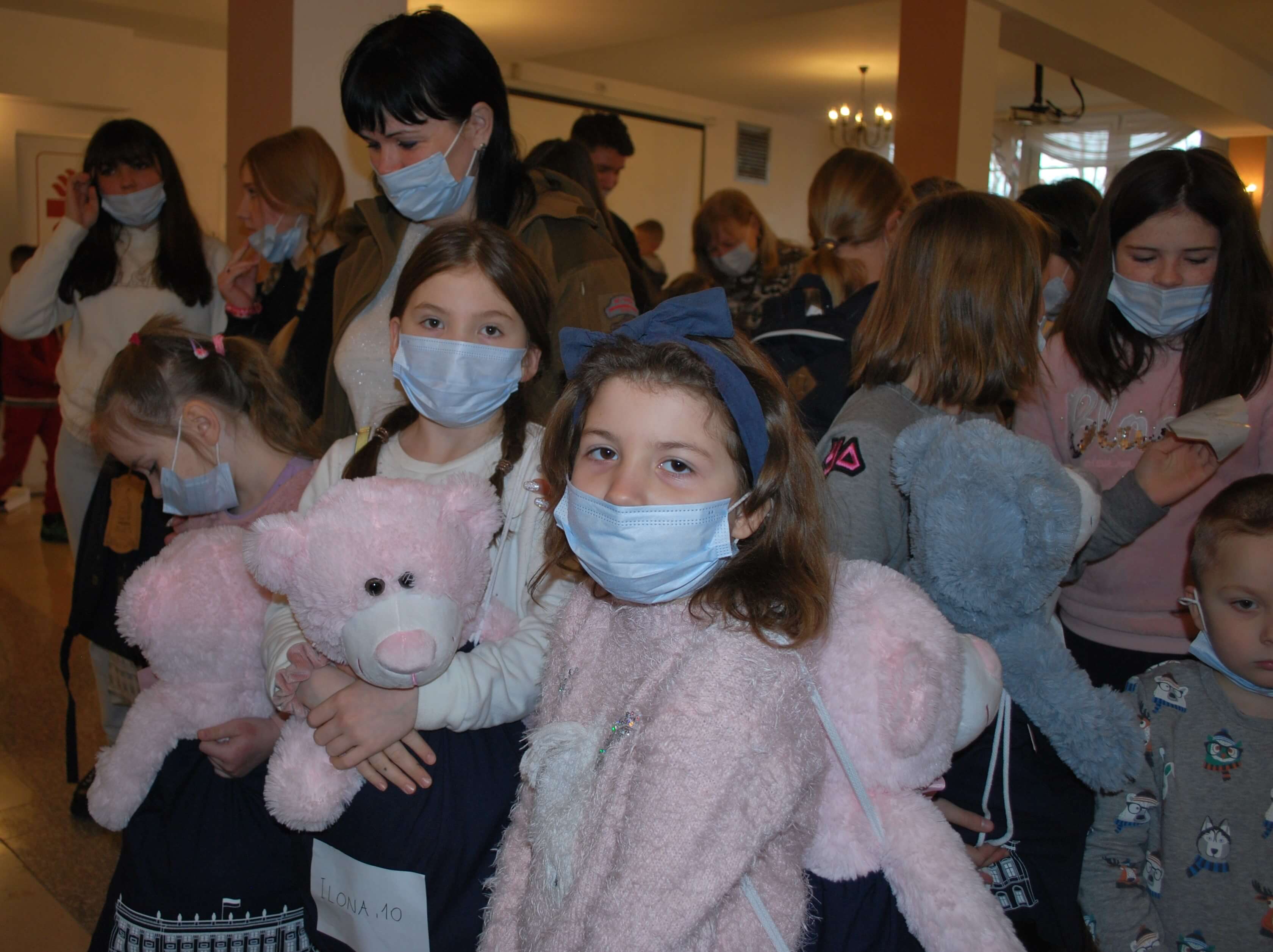 Dzieci z ewakuowanego Domu Dziecka również wyraziły swoje serdeczne podziękowania, wręczając Pani Prezydentowej własnoręcznie wykonane prace plastyczne. Na zakończenie wizyty wszystkie dzieci otrzymały od Pierwszej Damy plecaki z przyborami szkolnymi, słodycze a najmłodsi podopieczni pluszowe misie.