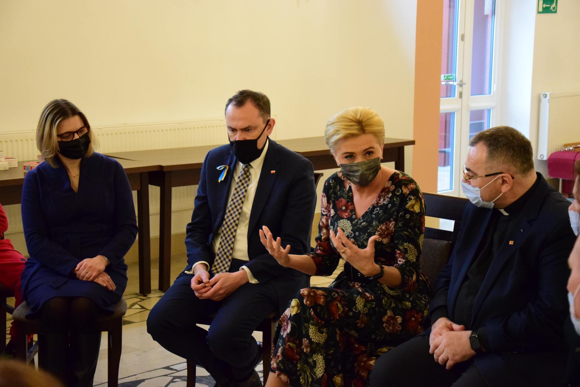 Dyrektor Caritas Diecezji Sandomierskiej, ks. Bogusław Pitucha z ramienia Biskupa Sandomierskiego Krzysztofa Nitkiewicza gościł dziś (w jednym z ośrodków CDS), Pierwszą Damę, wraz Sekretarzem Stanu w Kancelarii Prezydenta RP Adama Kwiatkowskiego, żonę Ambasadora RP na Ukrainie (przyp. red. Bartosza Cichockiego) Monikę Cichocką oraz lokalne władze samorządowe.