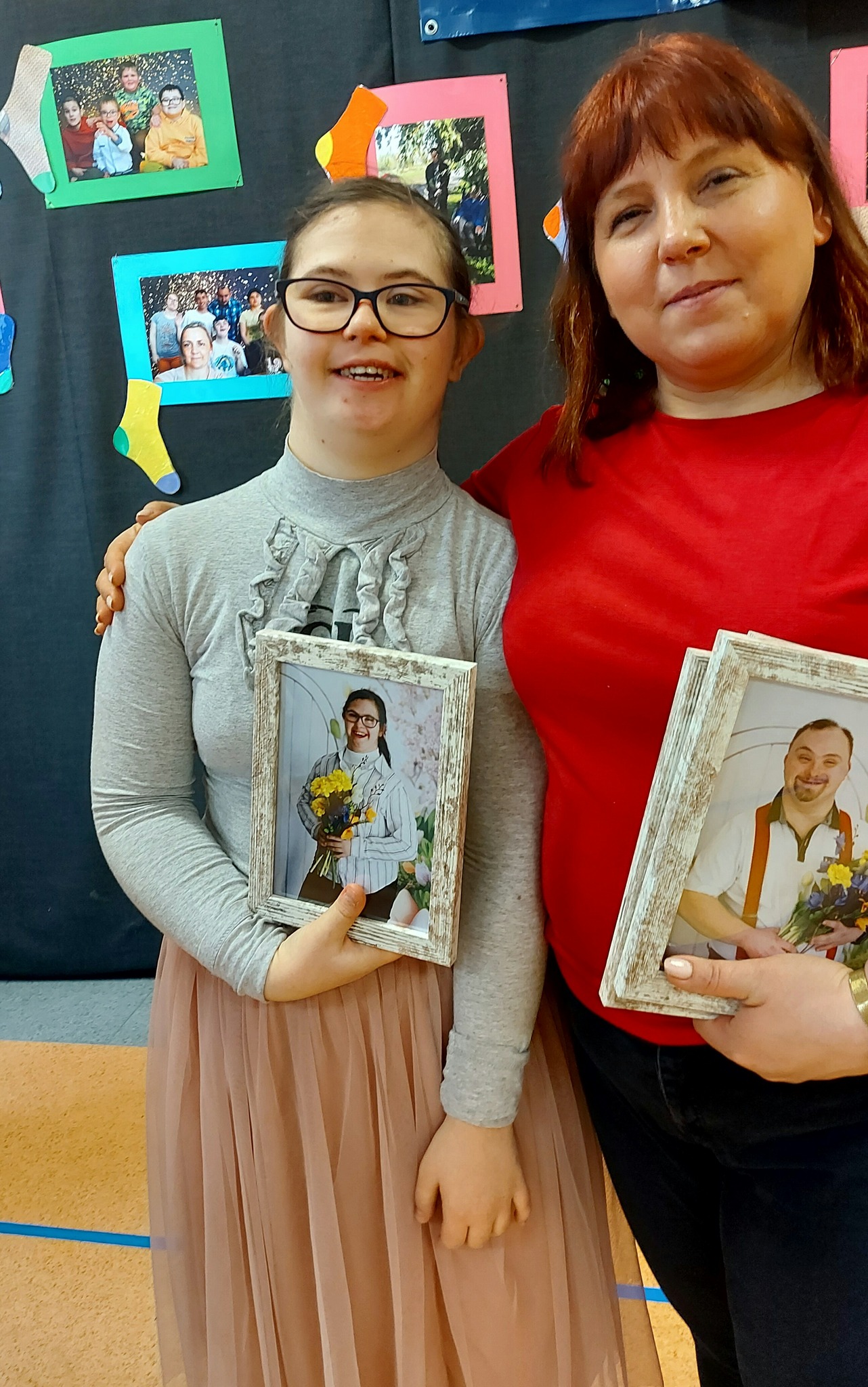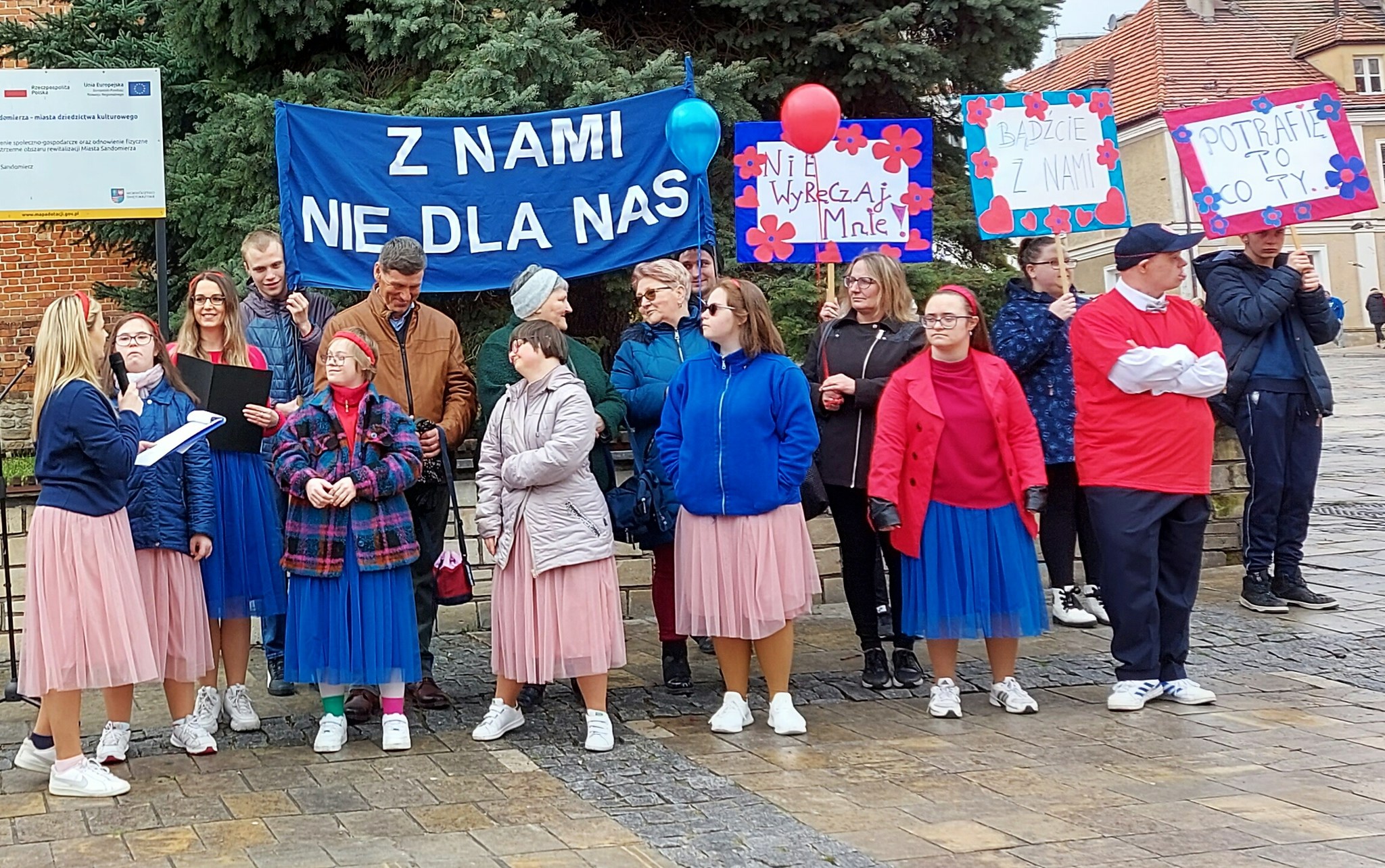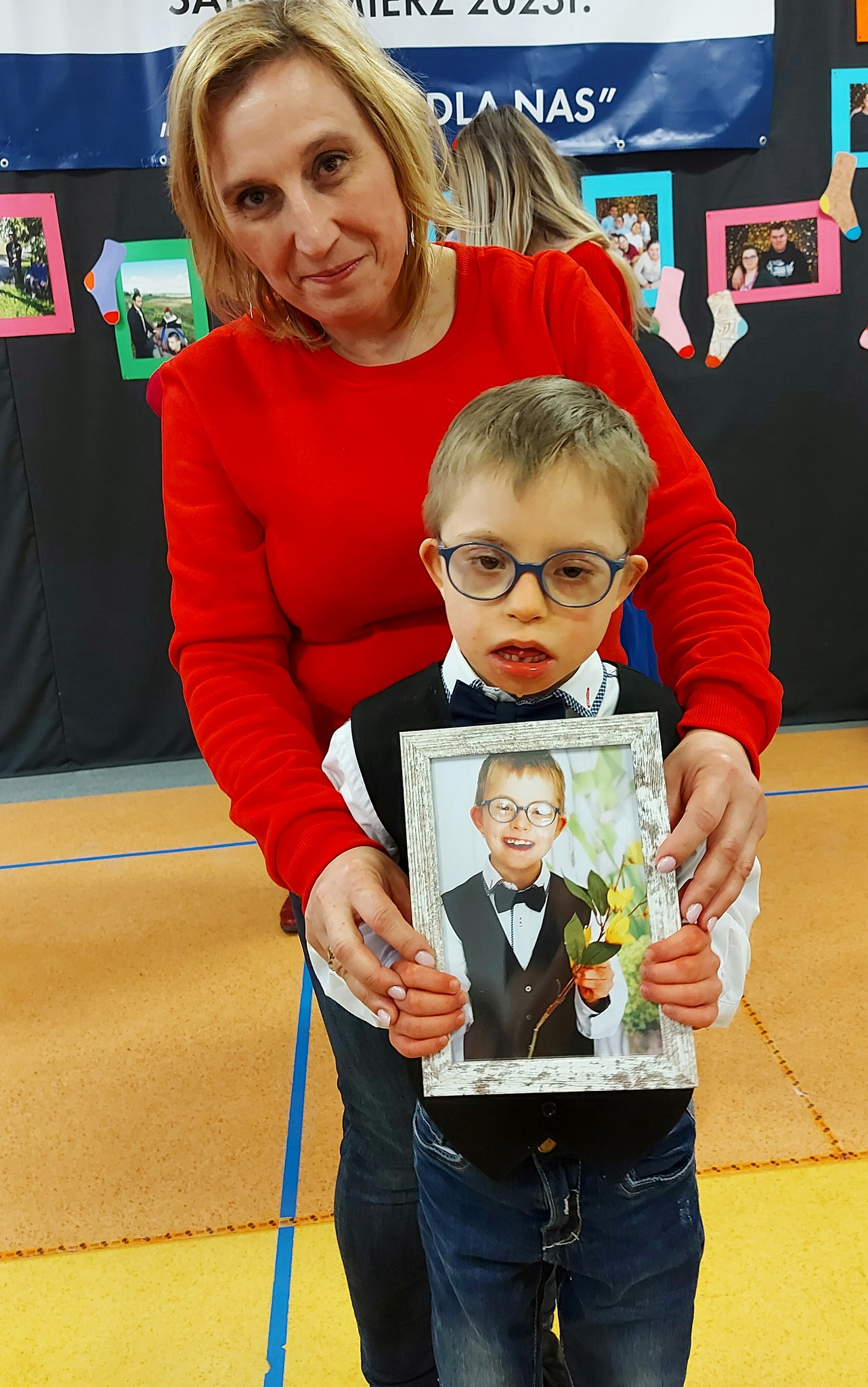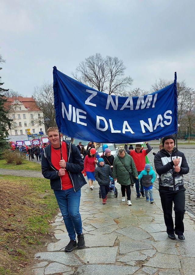 W dniu 21 marca 2023 roku w naszym Ośrodku obchodziliśmy Światowy Dzień Osób z Zespołem Downa pod hasłem ,,Z Nami, Nie Dla Nas”. Ta data nie jest przypadkowa i nawiązuje do obecności u osób z Zespołem Downa dodatkowego, trzeciego chromosomu w 21. parze chromosomów. Tego dnia w ramach solidarności zakładamy kolorowe skarpetki nie do pary, które są symbolem wyjątkowości, integracji, a także akceptacji. Dzisiejszą uroczystość rozpoczęliśmy Mszą Świętą w kościele Ducha Św., którą sprawował ksiądz Marek Walczak. W nabożeństwie uczestniczyła cała społeczność szkolna wraz z rodzicami uczniów z Zespołem Downa. Następnie cała wspólnota Ośrodka wraz z zaproszonymi gośćmi wyruszyła w barwnym korowodzie na rynek Starego Miasta, gdzie nastąpiło powitanie i część artystyczna. Uczniowie z ZD mogli zaprezentować swoje umiejętność taneczne. W tym dniu przywitaliśmy też wiosnę. ,,Pani Wiosna” - Danuta Żur-Podlewska zaprezentowała wiersz pt. ,,Z Nami, Nie Dla Nas” własnego autorstwa. Ważnym punktem tej uroczystości było rozdawanie jabłek i ulotek informacyjnych przez dzieci z ZD, a w niebo poszybowały niebieskie i czerwone balony. Następnie została wykonana wspólna fotografia. Dalsza część obchodów odbyła się na sali gimnastycznej naszego Ośrodka, gdzie na rodziców i uczniów czekała słodka niespodzianka w postaci pysznego tortu. Na zakończenie w ramach podziękowań za trud włożony w wychowanie uczniowie z ZD wręczyli swoim rodzicom pamiątkowe zdjęcia z indywidualnej sesji fotograficznej.