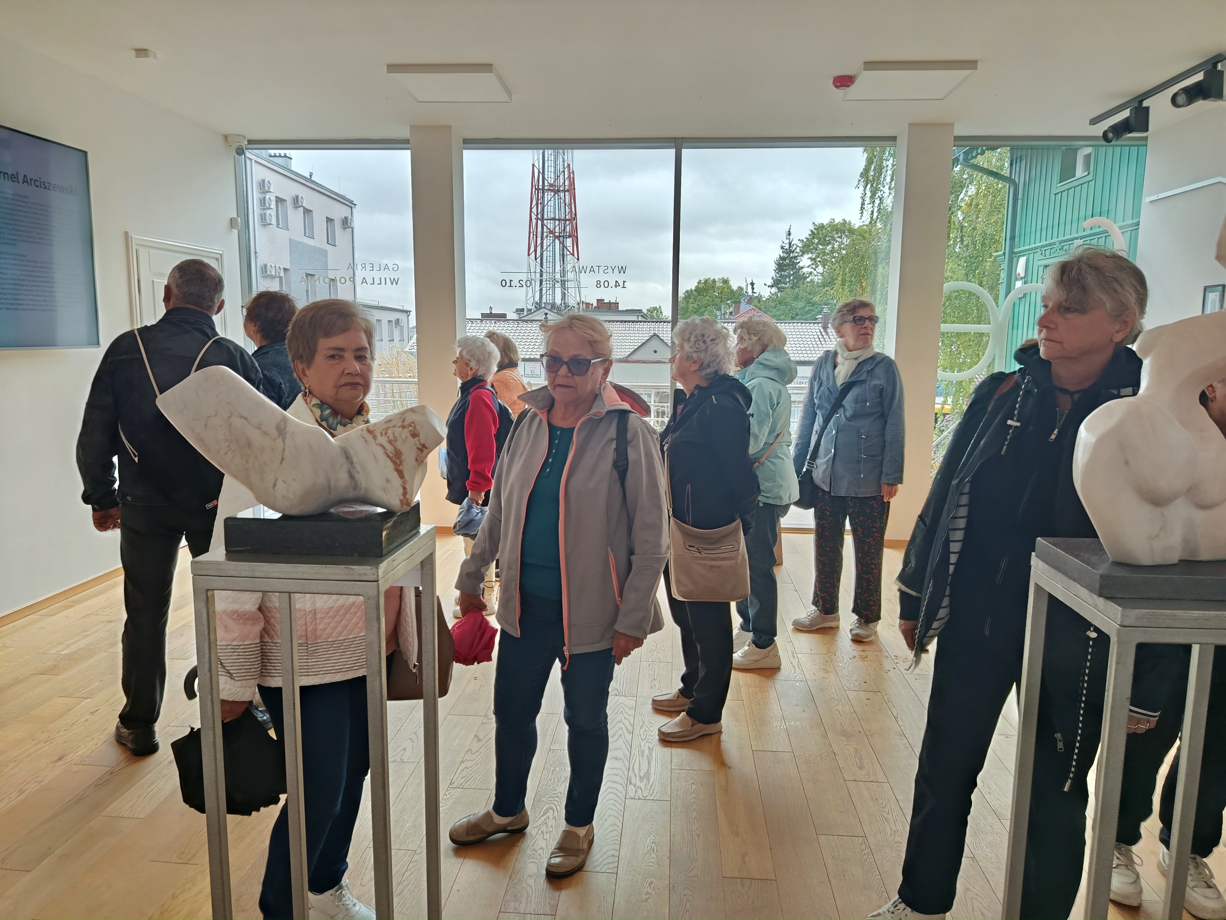 Ważnym punktem wycieczki była także wizyta w Galerii Polonia, gdzie seniorzy obejrzeli wystawę „She” autorstwa Kornela Arciszewskiego. Ekspozycja wywarła na uczestnikach duże wrażenie i stała się inspiracją do ciekawych rozmów. Po wspólnym obiedzie i chwili odpoczynku ostatnim etapem podróży było zwiedzanie Sanktuarium Brata Alberta Chmielowskiego.