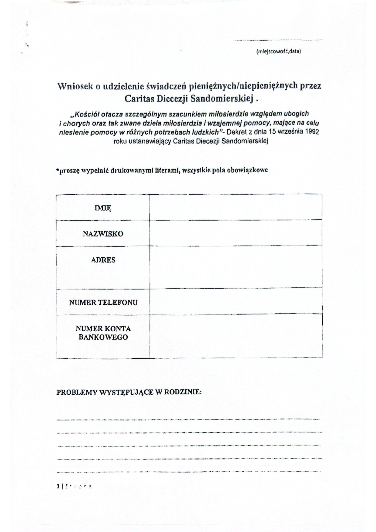 Caritas Diecezji Sandomierskiej jest instytucją charytatywną, której misją jest niesienie pomocy w duchu ewangelicznej miłości, dającej nadzieję na godne życie ludziom znajdującym się w trudnej sytuacji.