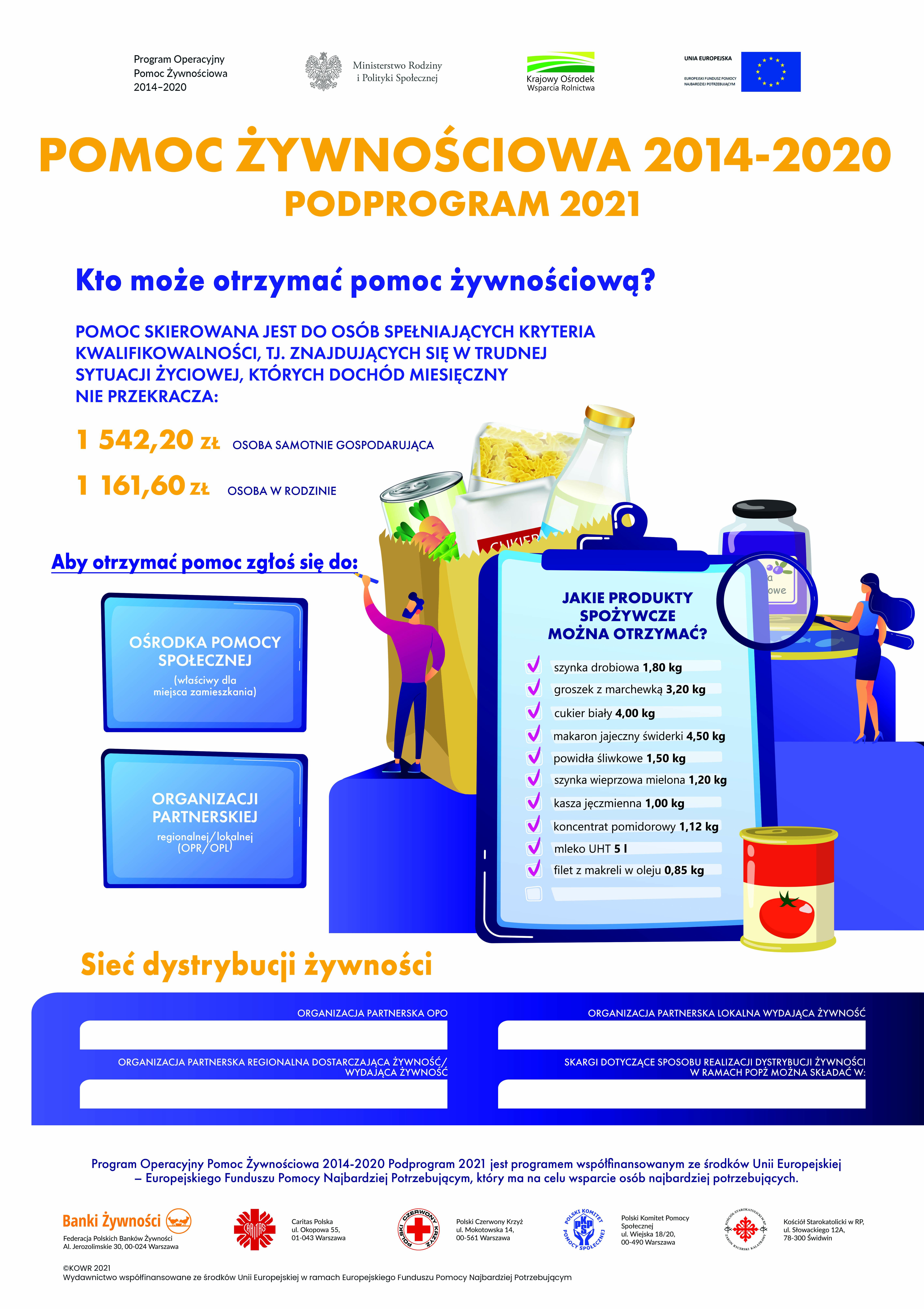 PROGRAM OPERACYJNY POMOC ŻYWNOŚCIOWA 2014-2020 JEST WSPÓŁFINANSOWANY Z EUROPEJSKIEGO FUNDUSZU POMOCY NAJBARDZIEJ POTRZEBUJĄCYM – PODPROGRAM 2021