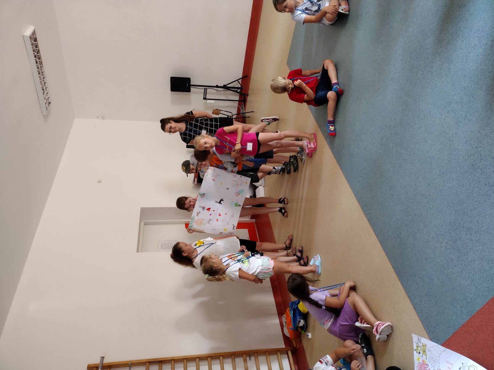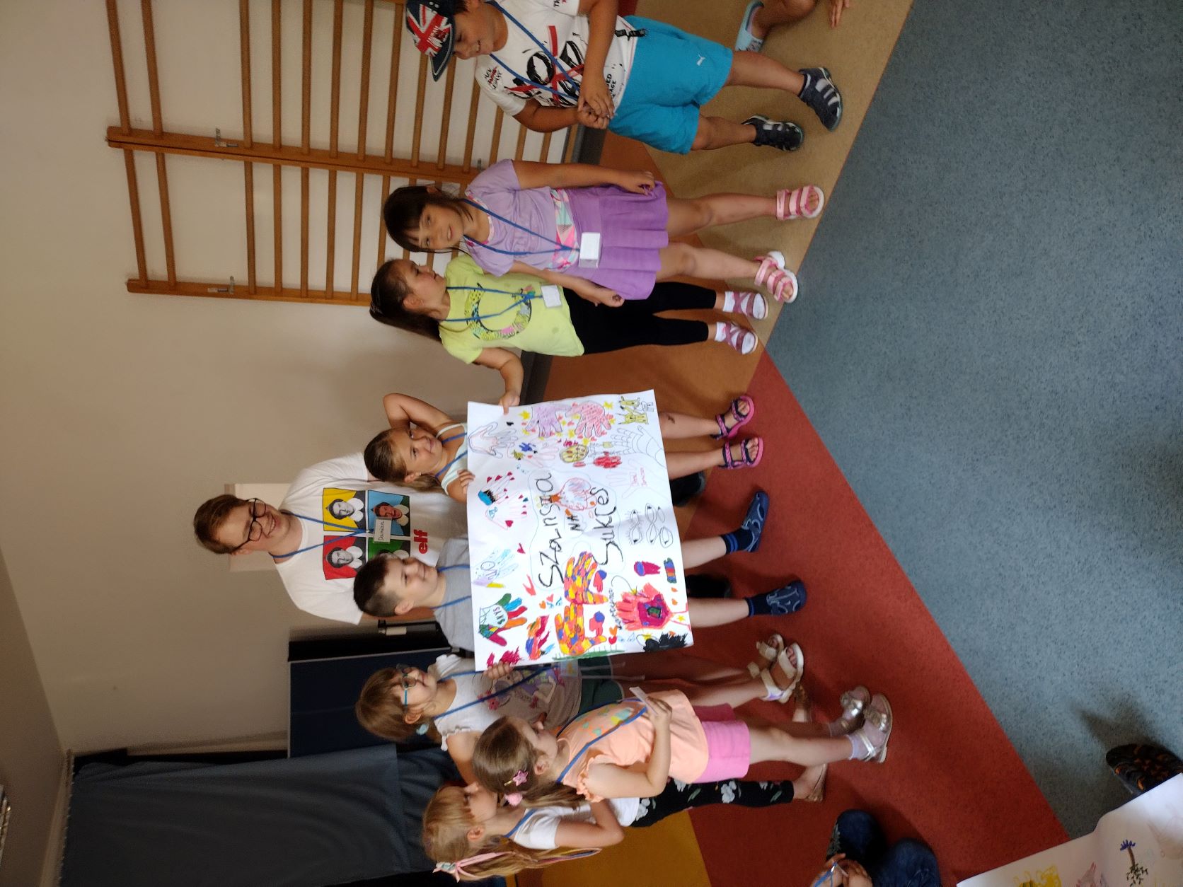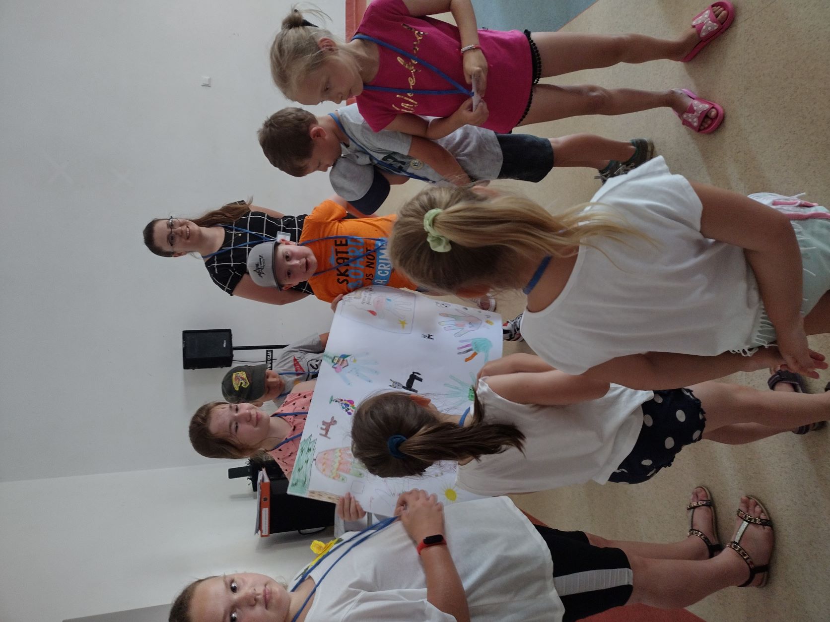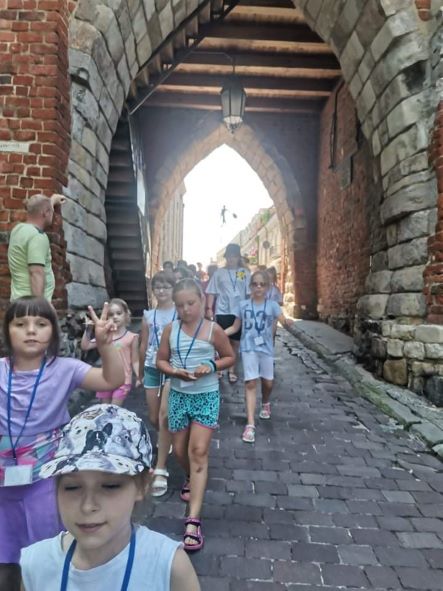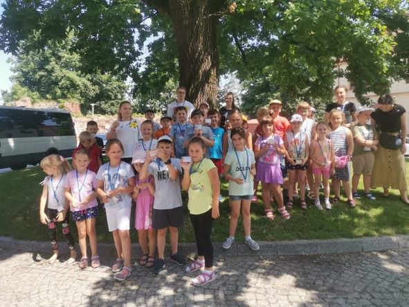 Dzisiejszy poranek dla 31 uczestników wypoczynku w wieku od 6–12 lat był pełen pozytywnych emocji podczas, którego nawiązało się dużo nowych znajomości. Tuż po drugim śniadaniu, na przygotowanych przez instruktorów zajęciach plastycznych mających na celu wspólną integrację, dzieci wykonały plakaty z nazwą swojej grupy, gdzie wraz ze swym opiekunem mogły zaprezentować się pozostałym uczestnikom. Tak więc powstały cztery grupy noszące kreatywne i zaskakujące nazwy: „Szansa na Sukces”, „Pieski”, „Szalone Arbuzy” i „Zakręcone Zwierzaki” a każdą z nich opiekują się: Aleksandra, Karolina, Karolina, Natalia i Damian. Po zakończonej prezentacji była przerwa na owocowy poczęstunek, by nabrać energii do wspólnego spaceru po Starym Mieście…