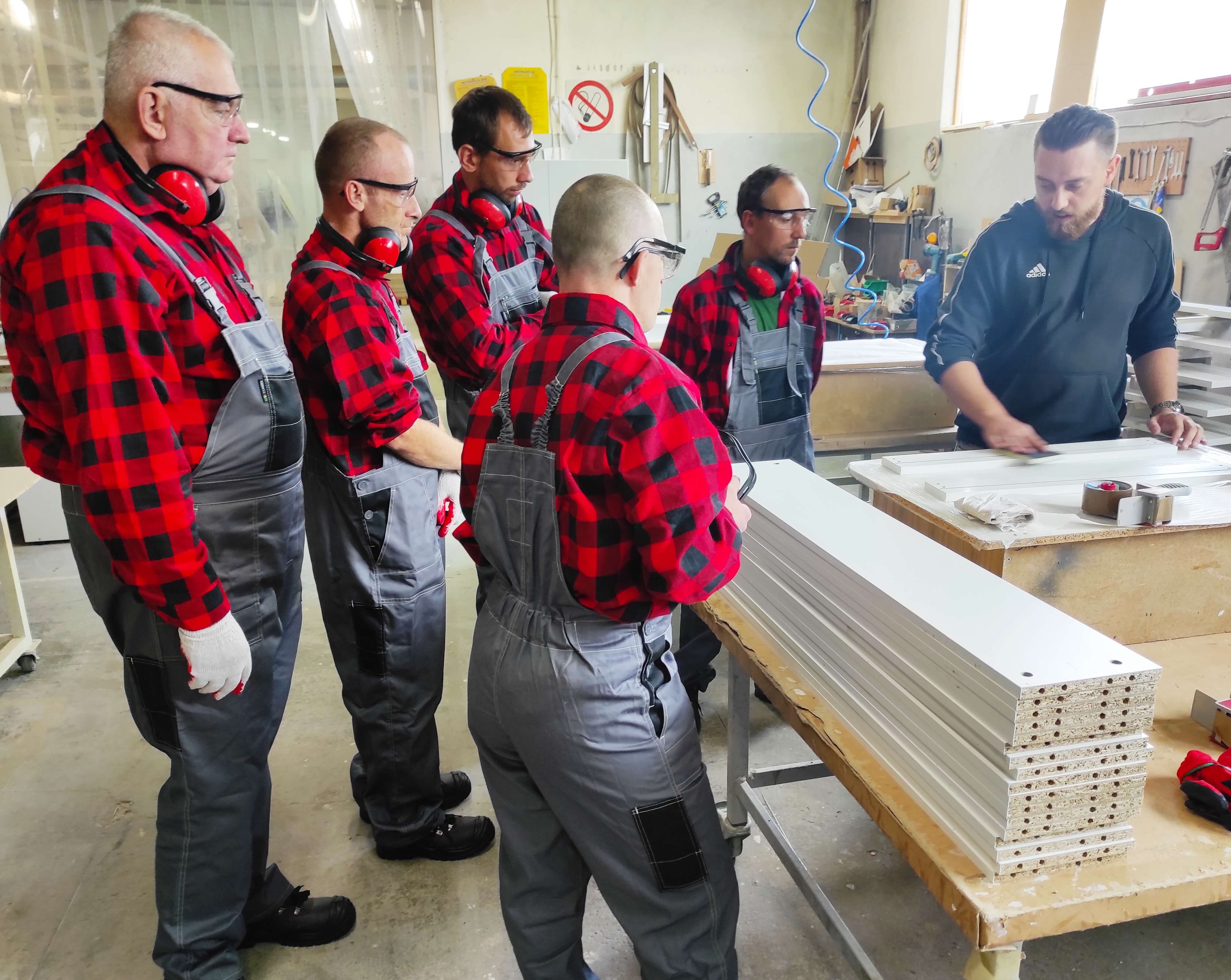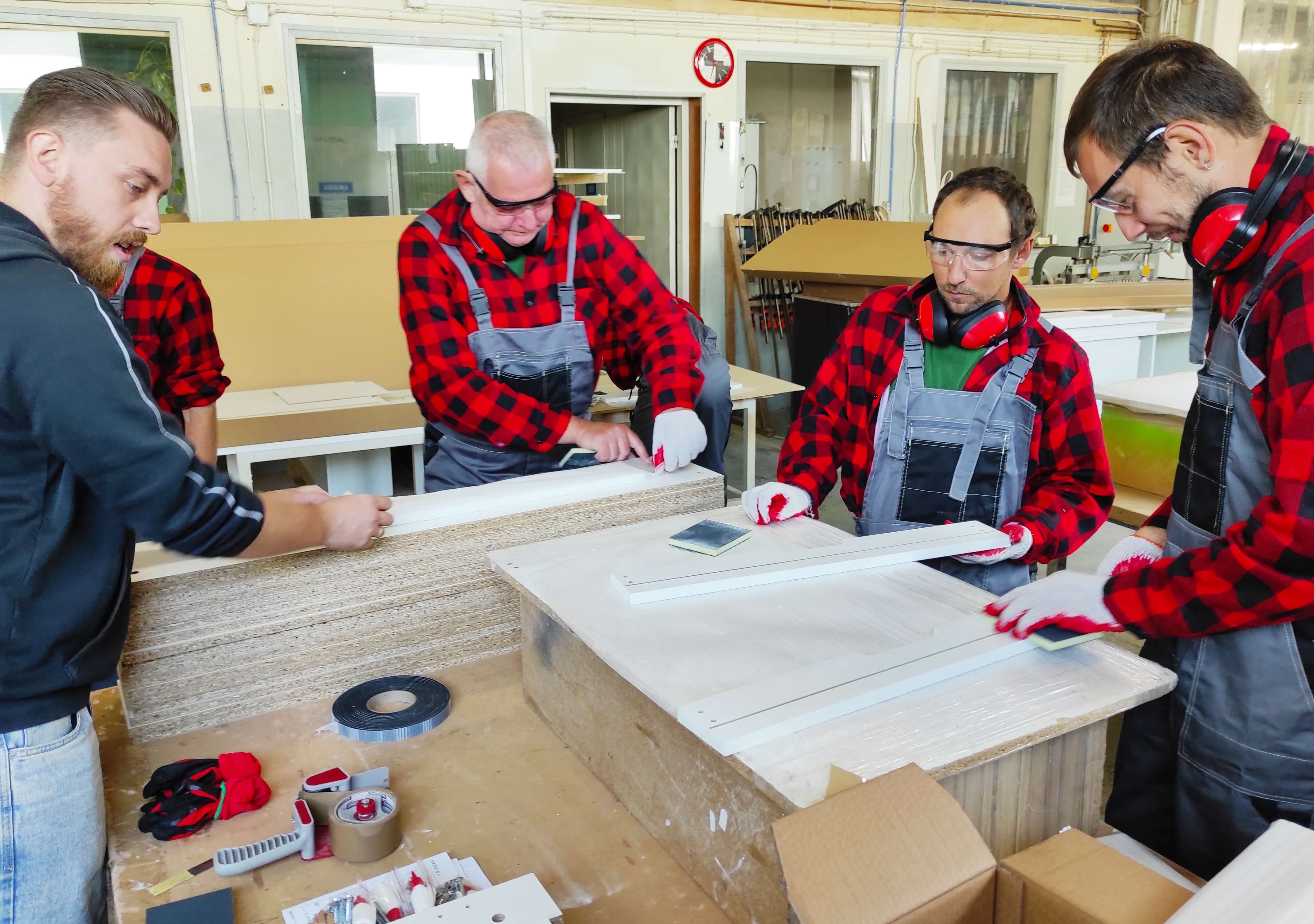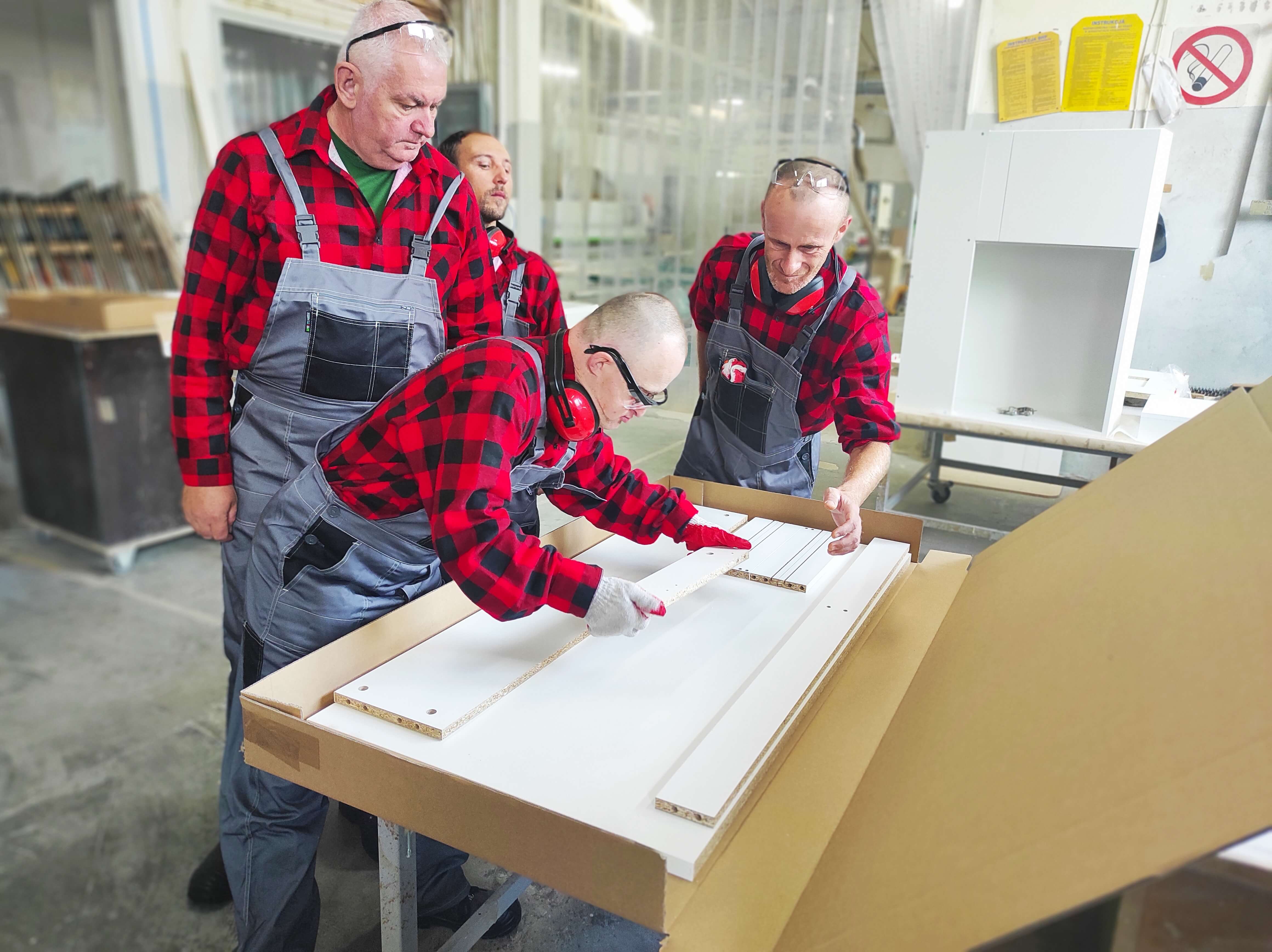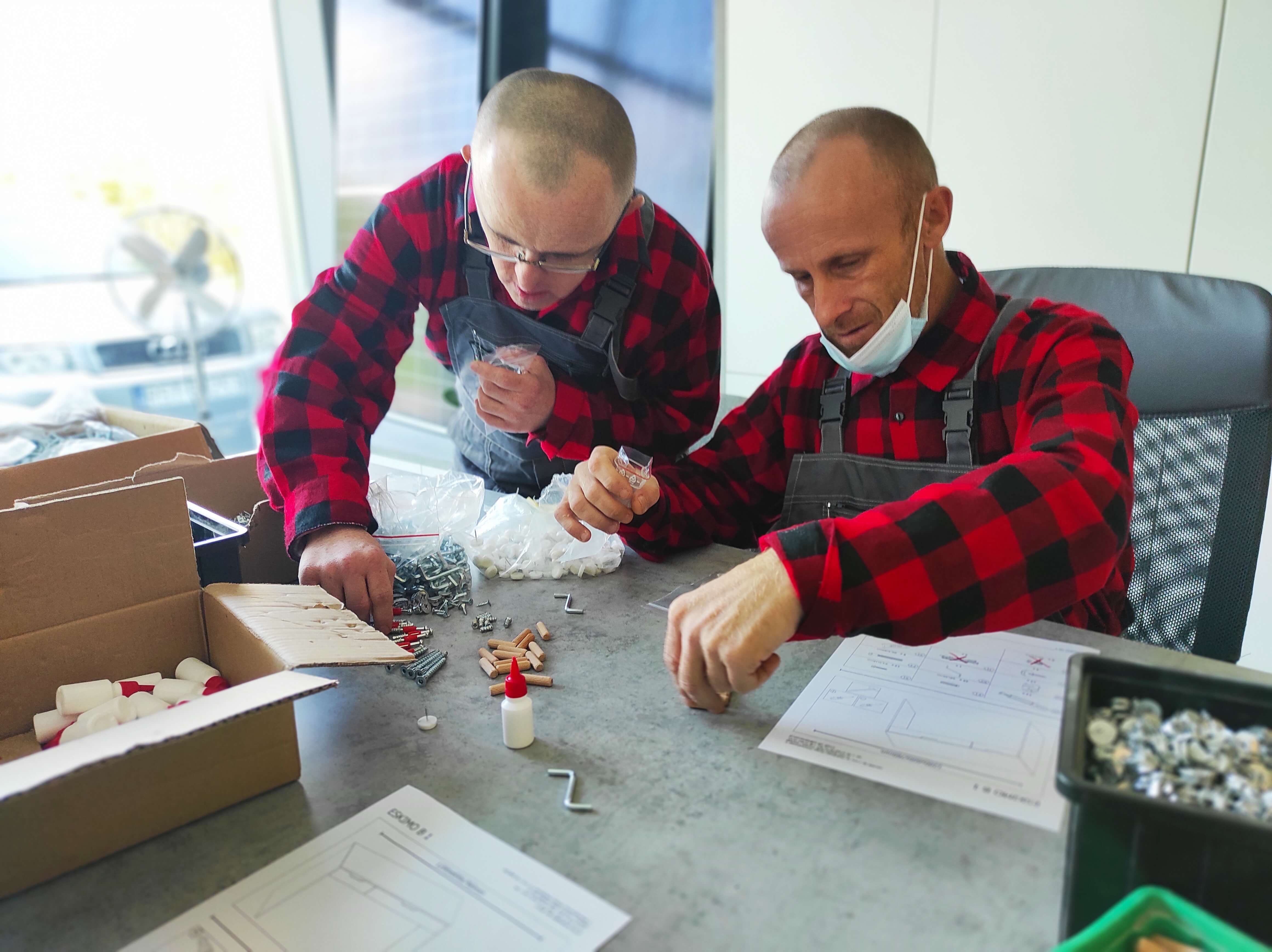 Sobota 28 sierpnia br. była kolejnym dniem pracy uczestników projektu „Praca – Motywacja – Aktywizacja”. Po warsztatach ogrodniczych przyszła kolej na zajęcia stolarskie, które odbywają się w Przedsiębiorstwie Wielobranżowym „Feniks” w Turbii. Bierze w nich udział sześciu chętnych do zaznajomienia się z tajemnicami pracy stolarskiej panów. Wyposażeni w odzież ochronną, pyszne zestawy śniadaniowe oraz środki do dezynfekcji, stawili się na miejscu w pełnej gotowości do pracy. Pod czujnym okiem instruktora - Pana Mateusza, który objaśniał wszystkie zadania do wykonania, pracowali razem ze swoimi opiekunkami - Paniami: Eweliną i Aleksandrą nad powierzonymi im zadaniami. Tego dnia uczestnicy projektu poznali specyfikę miejsca, zasady bezpieczeństwa oraz higieny pracy, zaznajomili się także z materiałami wykorzystywanymi do produkcji mebli. Kompletowali elementy łączące meble według wskazanej instrukcji. Ich zadaniem było również okleinowanie surowych krawędzi płyt meblowych obrzeżem z tworzywa sztucznego. Wszyscy mieli okazję pakować gotowe do wysyłki produkty poprzez zabezpieczanie ich folią bąbelkową oraz styropianem. Podczas powrotu do domu w busie, z wielkim przejęciem dzielili się wrażeniami z tego dnia. Zmęczeni solidną, kilkugodzinną pracą zapewniali, że w następną sobotę stawią się znów w komplecie na swoich nowych stanowiskach pracy.