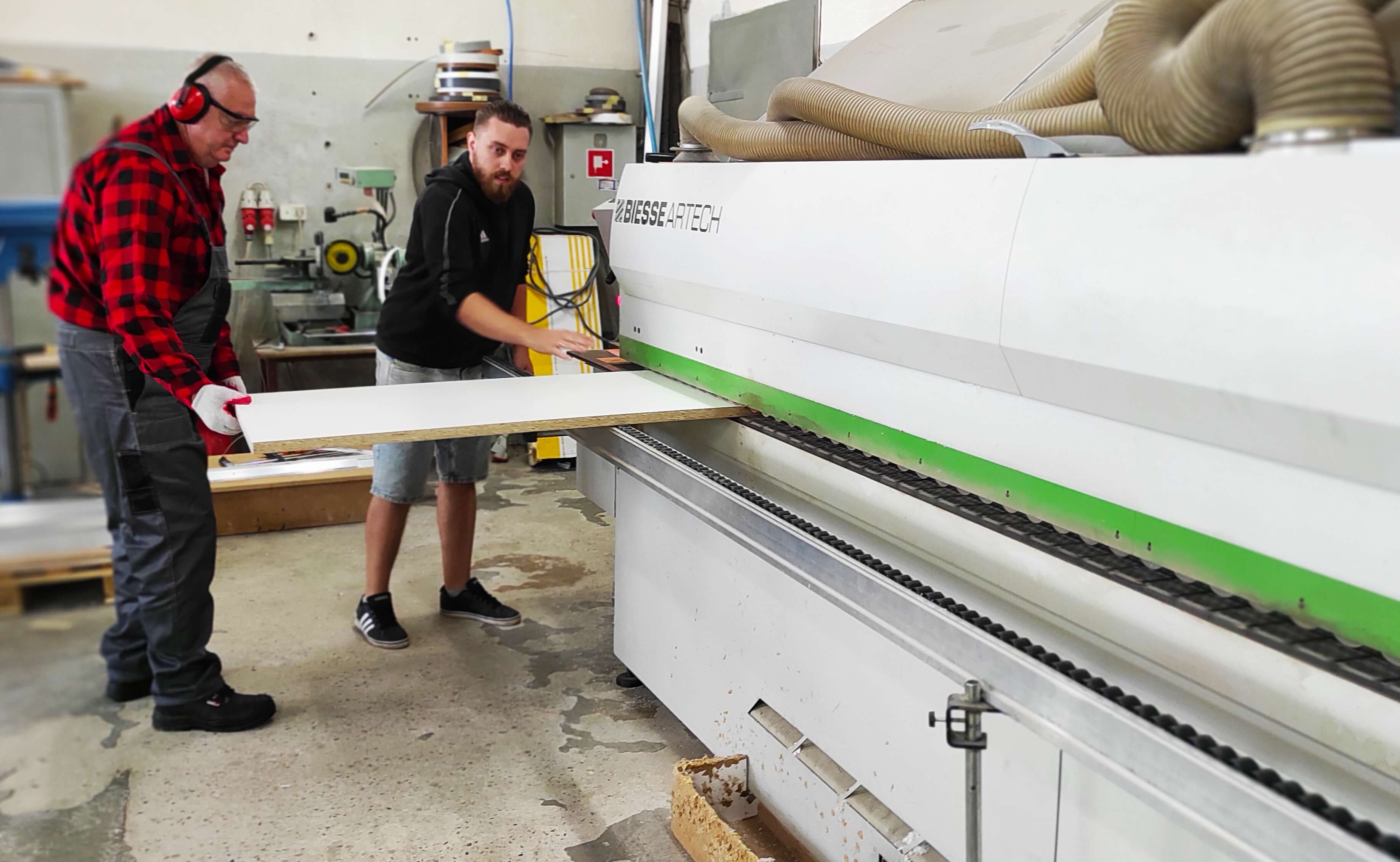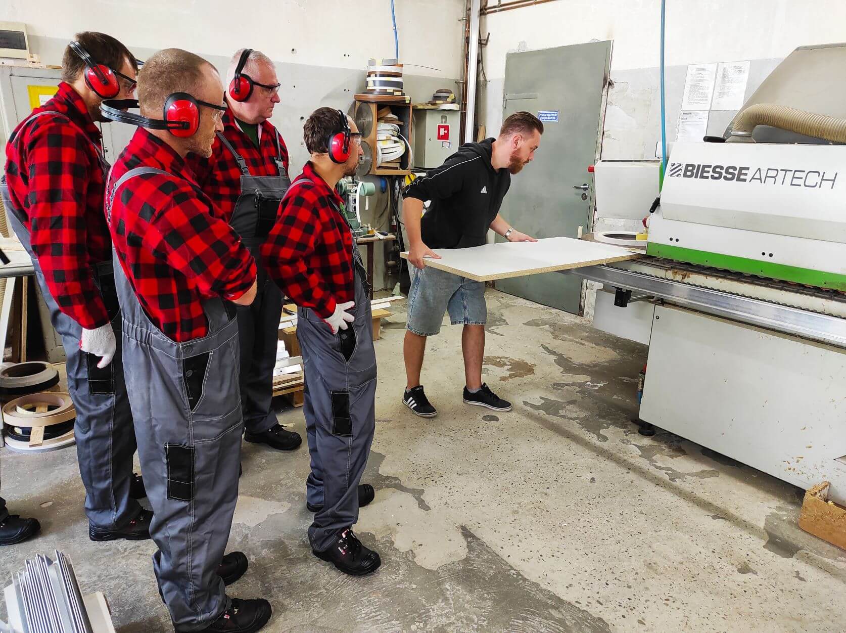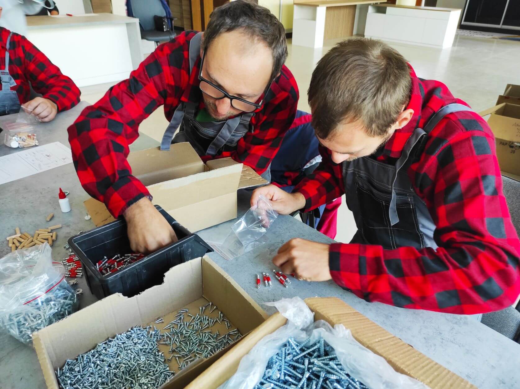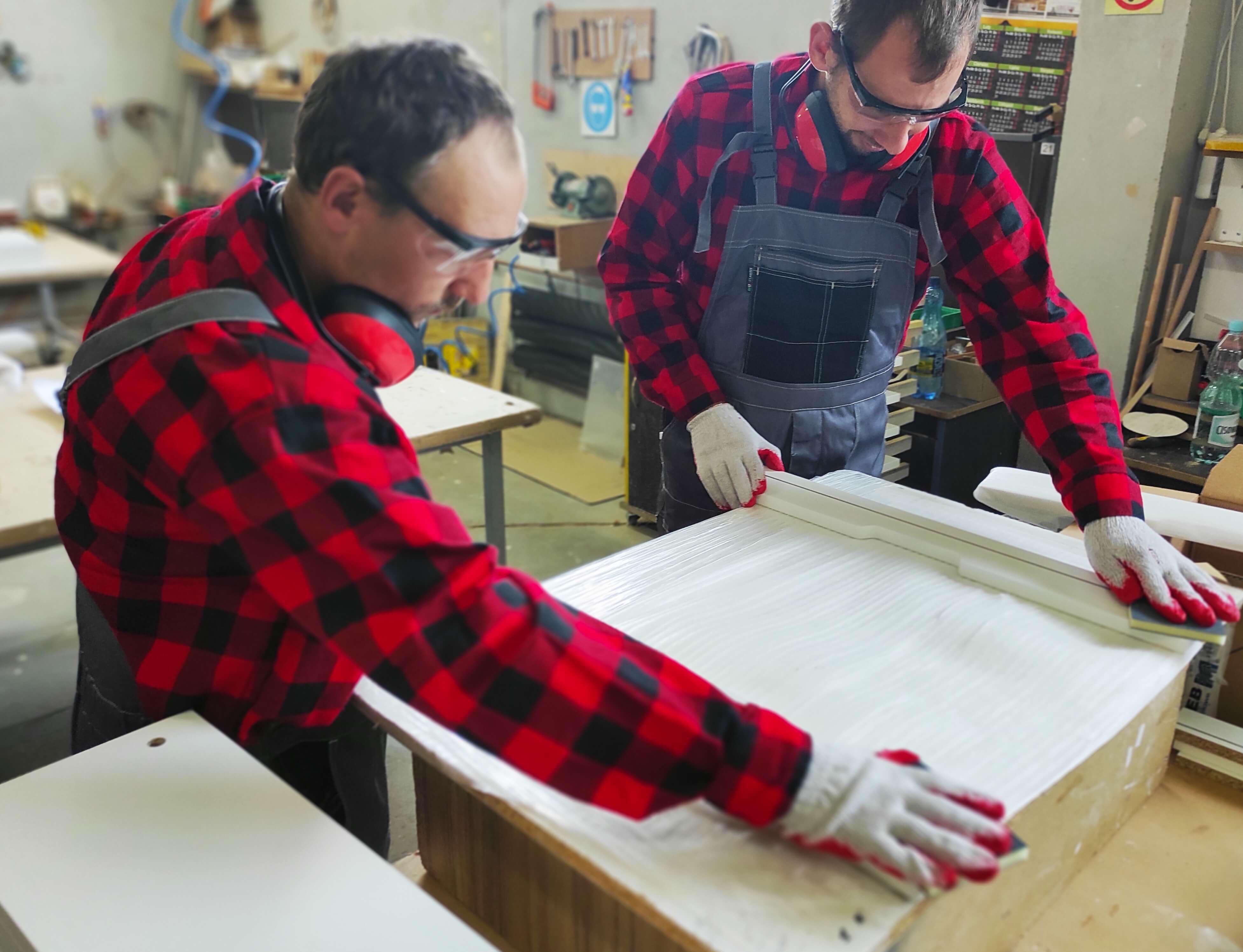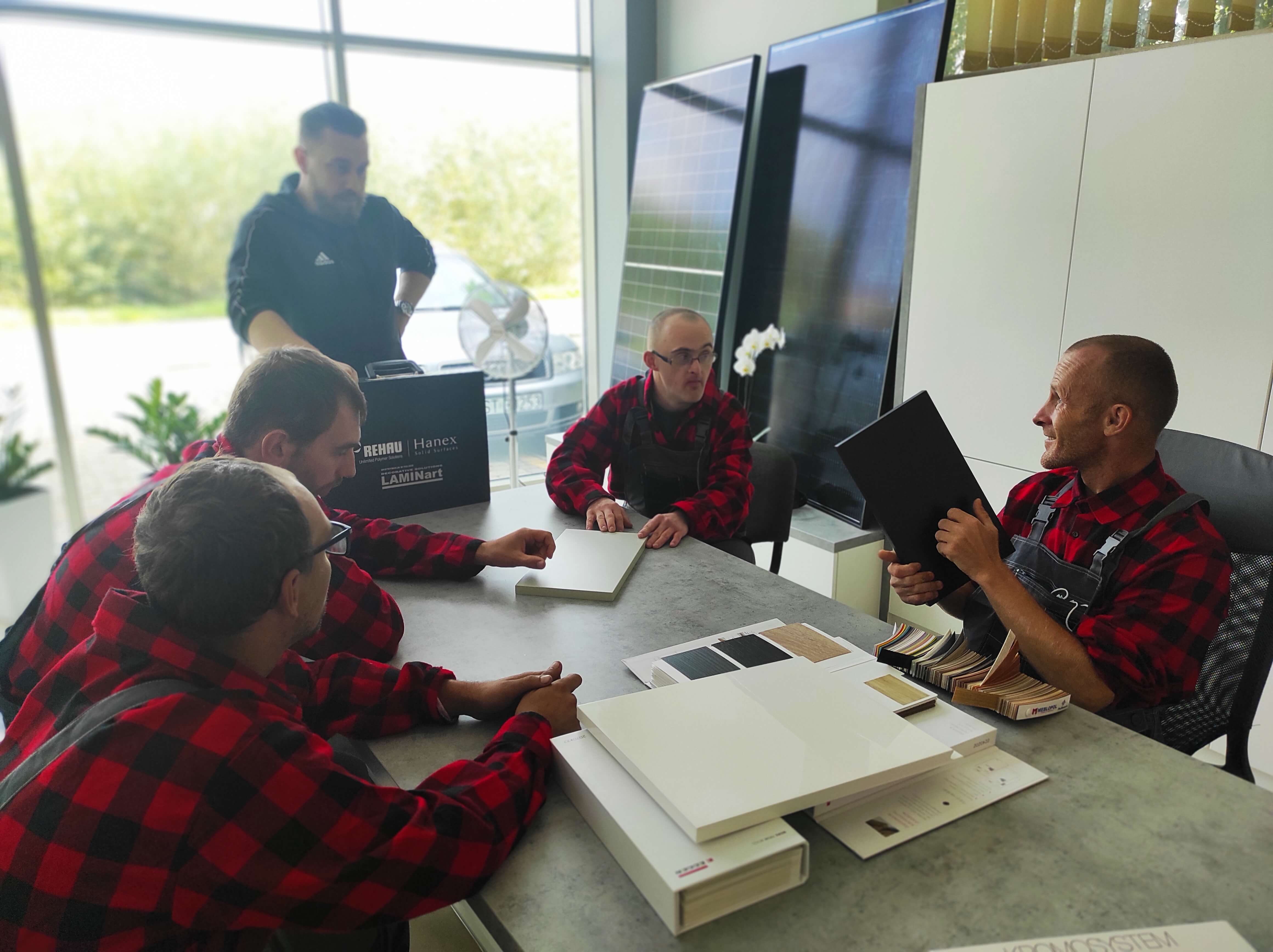 Sobota 28 sierpnia br. była kolejnym dniem pracy uczestników projektu „Praca – Motywacja – Aktywizacja”. Po warsztatach ogrodniczych przyszła kolej na zajęcia stolarskie, które odbywają się w Przedsiębiorstwie Wielobranżowym „Feniks” w Turbii. Bierze w nich udział sześciu chętnych do zaznajomienia się z tajemnicami pracy stolarskiej panów. Wyposażeni w odzież ochronną, pyszne zestawy śniadaniowe oraz środki do dezynfekcji, stawili się na miejscu w pełnej gotowości do pracy. Pod czujnym okiem instruktora - Pana Mateusza, który objaśniał wszystkie zadania do wykonania, pracowali razem ze swoimi opiekunkami - Paniami: Eweliną i Aleksandrą nad powierzonymi im zadaniami. Tego dnia uczestnicy projektu poznali specyfikę miejsca, zasady bezpieczeństwa oraz higieny pracy, zaznajomili się także z materiałami wykorzystywanymi do produkcji mebli. Kompletowali elementy łączące meble według wskazanej instrukcji. Ich zadaniem było również okleinowanie surowych krawędzi płyt meblowych obrzeżem z tworzywa sztucznego. Wszyscy mieli okazję pakować gotowe do wysyłki produkty poprzez zabezpieczanie ich folią bąbelkową oraz styropianem. Podczas powrotu do domu w busie, z wielkim przejęciem dzielili się wrażeniami z tego dnia. Zmęczeni solidną, kilkugodzinną pracą zapewniali, że w następną sobotę stawią się znów w komplecie na swoich nowych stanowiskach pracy.