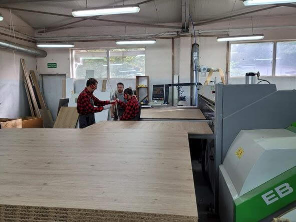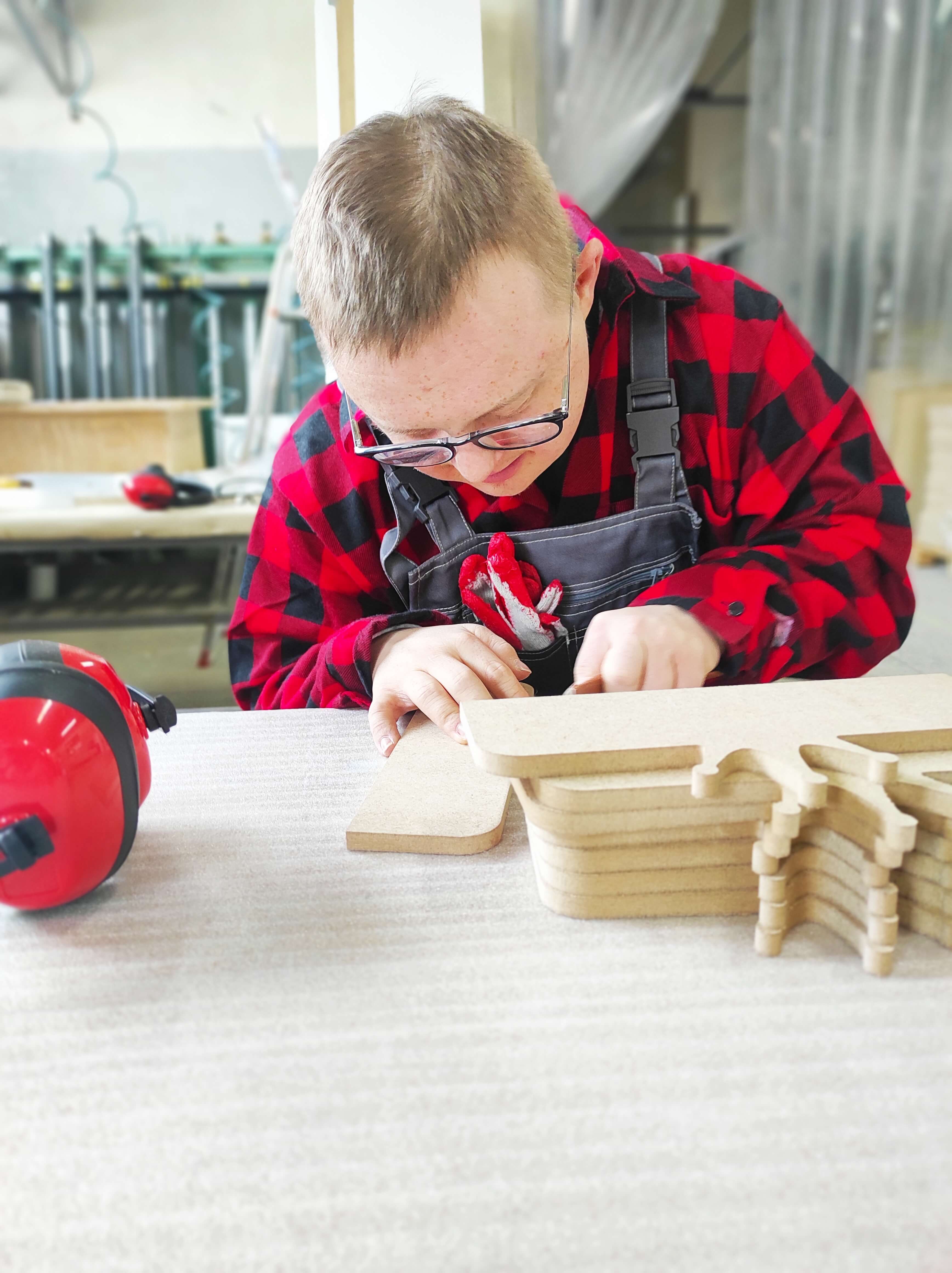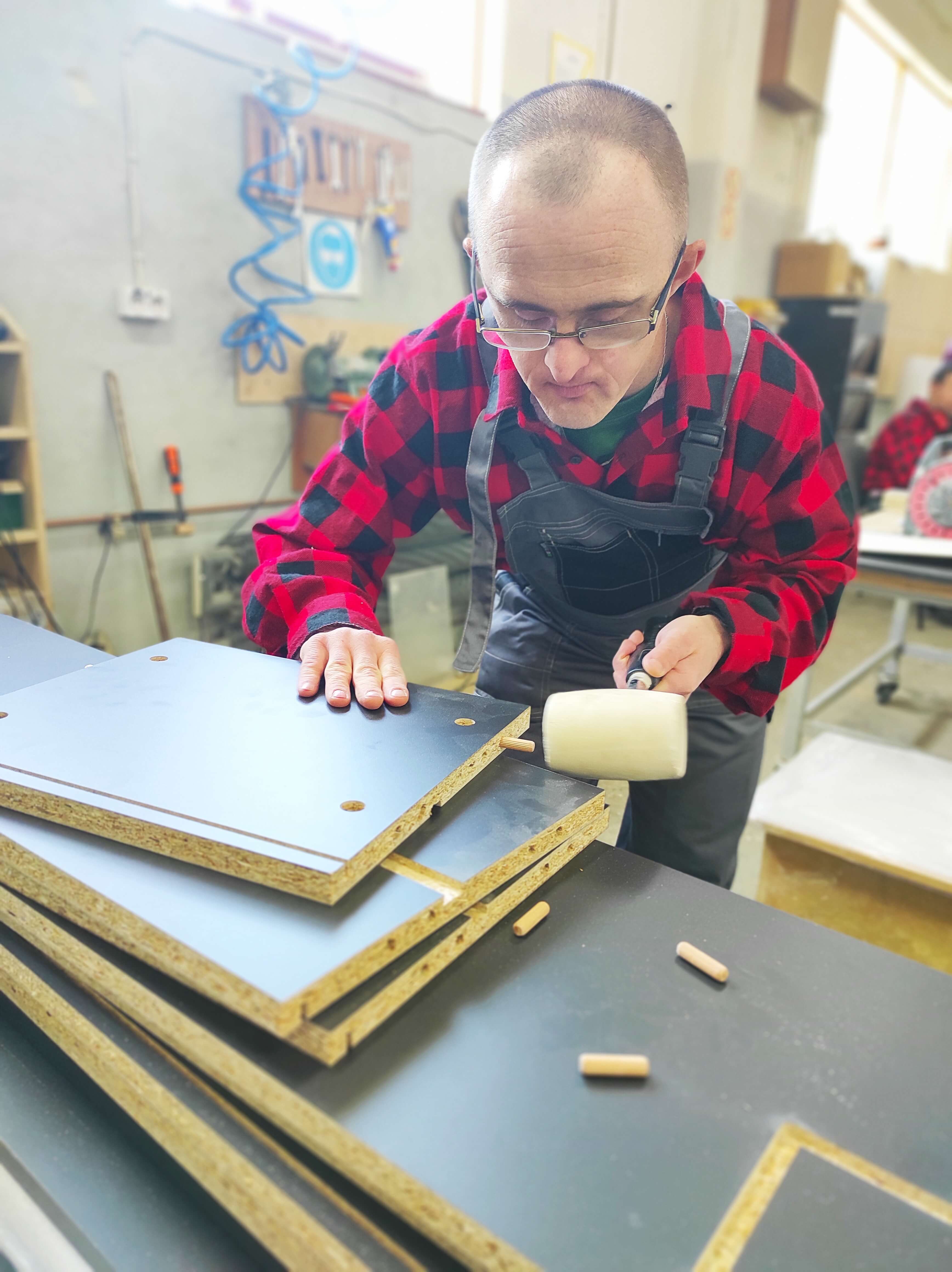 Uczestnicy projektu „Praca – Motywacja- Aktywizacja” nie mają wytchnienia nawet w sobotę. Znów całą ekipą stawili się na zajęciach warsztatowych w stolarni, gotowi podjąć kolejne wyzwania. Tym razem musieli zmierzyć się z bardzo trudnymi i nowymi dla nich zadaniami. Jednym z nich było rozcinanie płyt meblowych na programowanej pile panelowej według przygotowanego rozkroju. Uczyli się również tego, jak przygotować powierzchnię płyty MDF, segregowali materiały meblowe według ich rodzaju (płyta wiórowa, sklejka brzozowa, płyta MDF). Na koniec instruktor objaśnił jak składać komponenty meblowe zgodnie z instrukcją, czego potem sami mogli spróbować, oczywiście na początek z pomocą opiekunek zajęć. W przerwie wszyscy zjedli pyszne kanapki, mieli też okazję do rozmowy na przeróżne tematy. Zajęcia warsztatowe to przecież nie tylko praca, ale też spędzony wspólnie czas, śmiech, dyskusja o sprawach bardziej i mniej poważnych, nauka, wymiana poglądów i opinii.