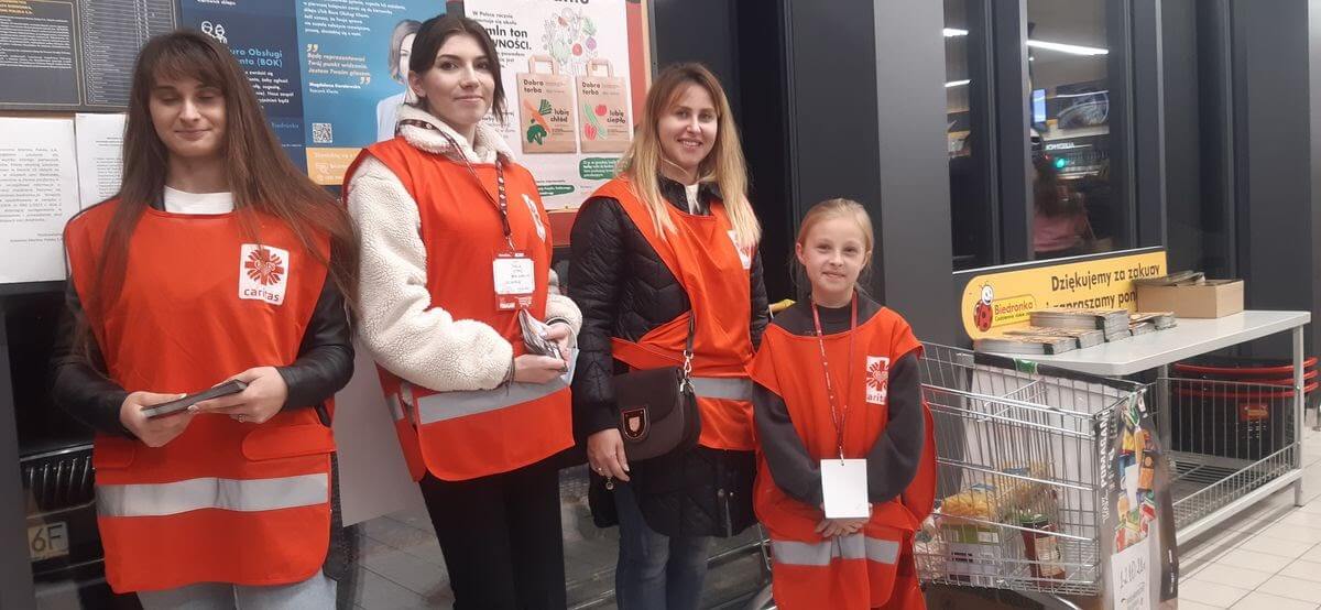 W miniony piątek i sobotę (1-2 października br.) w Janowie Lubelskim odbyła się zbiórka żywności w ramach akcji „Tak. Pomagam” organizowanej przez parafię pw. św. Jana Chrzciciela. Do akcji przyłączyło się 96 wolontariuszy, którzy zbierali żywność o przedłużonym terminie przydatności do spożycia, ofiarowaną przez klientów robiących zakupy w sieci marketów „Biedronka”. Akcję zbiórki żywności poprowadziły siostry ze Zgromadzenia Opatrzności Bożej posługujące w parafii, księża wikariusze oraz młodzież, która bardzo chętnie się w nią włączyła. Młodzi ochotnicy pełnili posługę nie tylko jako wolontariusze, ale także uczestniczyli w segregacji żywności, która zostanie rozdysponowana dla najbardziej potrzebujących i osób ubogich rodzin z parafii Świętego Jana Chrzciciela. Podczas zbiórki zebrano ponad 850 kilogramów żywności w tym: makarony, kasze, mąka, konserwy, cukier, oliwa oraz wiele innych produktów, które trafią do najbardziej potrzebujących osób.