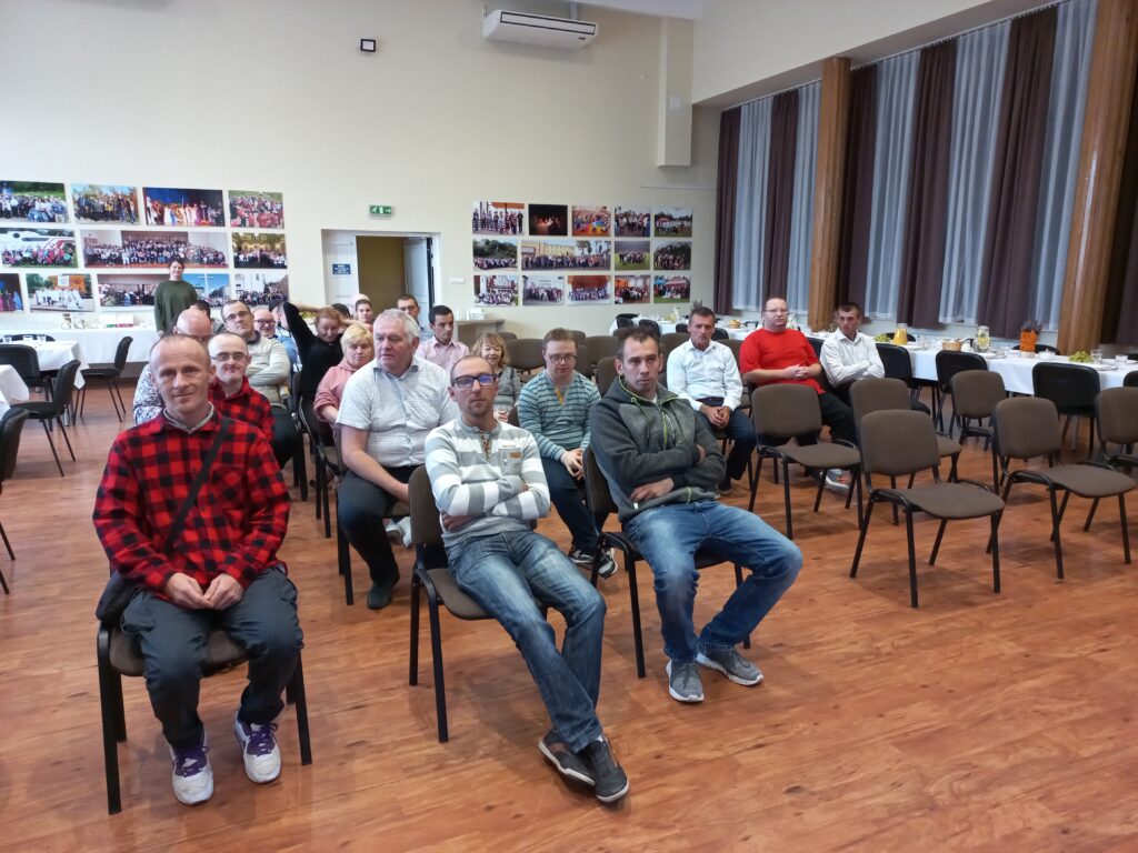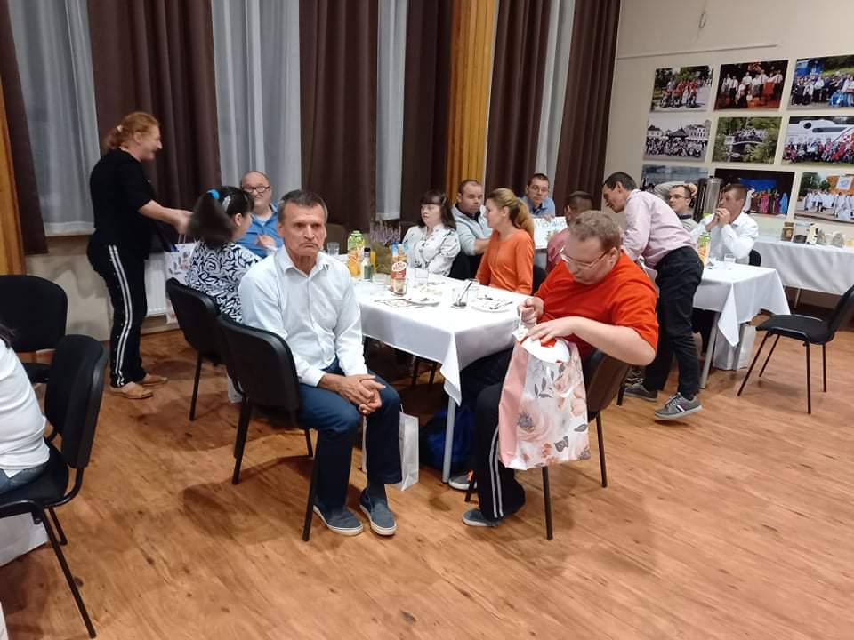 12 października, w godzinach popołudniowych odbyło się spotkanie podsumowujące nasze działania. Przybyli na nie uczestnicy projektu oraz część zaproszonych gości. Wśród nich byli ks. Tomasz Szostek – kierownik Warsztatu Terapii Zajęciowej oraz Środowiskowego Domu Samopomocy w Rudniku nad Sanem, Pan Jerzy Łatka – kierownik Warsztatu Terapii Zajęciowej przy Miejskim Ośrodku Pomocy Społecznej w Stalowej Woli oraz Pani Anna Straub – dyrektor Miejskiego Ośrodka Kultury w Rudniku nad Sanem. Nie wszyscy niestety mogli do nas dołączyć, z różnych względów, co też rozumiemy.