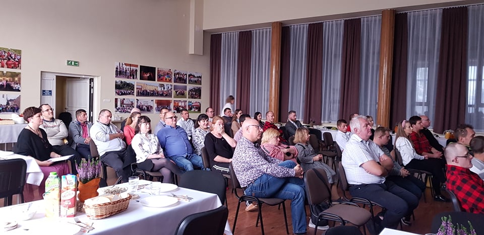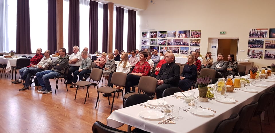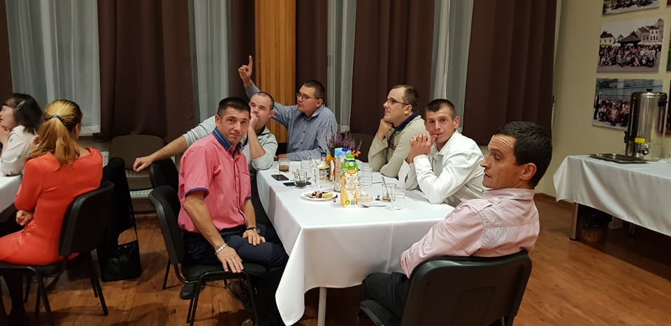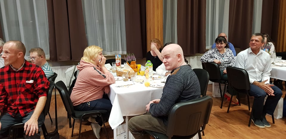 Początkowo planowano spotkanie przy grillu, jednak ani panująca w ostatnich dniach aura, ani temperatura na dworze nie pozwoliły nam na to. Kolację zjedliśmy w sali widowiskowej w Centrum Caritas w Rudniku nad Sanem, przy suto zastawionych daniami z grilla stołach, na koniec racząc się przepysznym tortem i kawą.