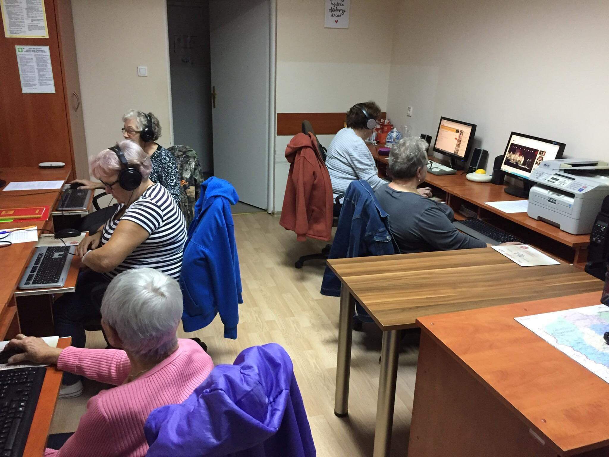 Nadal odbywają się zajęcia komputerowe i z e-bankowości, ćwiczenia ruchowe oraz spotkania z psychologiem. Wszystkie realizowane zajęcia, dostosowane są ściśle do obowiązujących restrykcji sanitarnych związanych z pandemią Covid-19. Tak więc warsztaty prowadzone są w małych grupach, co sprzyja lepszemu zrozumieniu i przyswajaniu nowych, bardzo ważnych i przydatnych informacji. Każdy z uczestników ma możliwość również korzystania z indywidualnych konsultacji by, wyjaśnić niezrozumiałe zagadnienia bądź poprosić o pomoc wykwalifikowanych realizatorów prowadzących zajęcia. Ów wsparcie ma ogromny wpływ nie tylko na rozwój osobisty i zadowolenie beneficjentów projektu, którzy zdobywają cenną wiedzę, ale także mogą efektywnie spędzać swój wolny czas. Kolejnym atutem dla samych uczestników zajęć są nowe znajomości, które wzajemnie ze sobą zawierą, co daje im motywację do wyjścia z domu a tym samym zapobiega to izolacji, dyskryminacji i marginalizacji starszych osób. Zresztą jak sami Seniorzy zgodnie twierdzą: - „Udział w projekcie przynosi im mnóstwo zadowolenia, ponieważ oprócz tematyki, która ich niezmiernie interesuje mogą dokształcać się w tematach, które do tej pory były dla nich zbyt odległe i nieznane”.