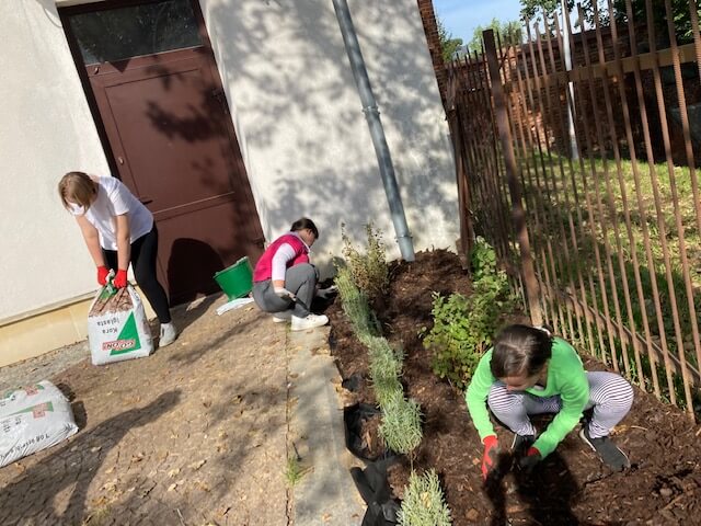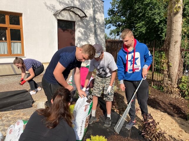Pomimo, że praca niekiedy wymagała dużego wysiłku fizycznego, to całkowicie sprawiła wielką radość uczestnikom, którzy z pełnym zaangażowaniem wykonywali wszystkie niezbędne czynności do powstania ogrodu.