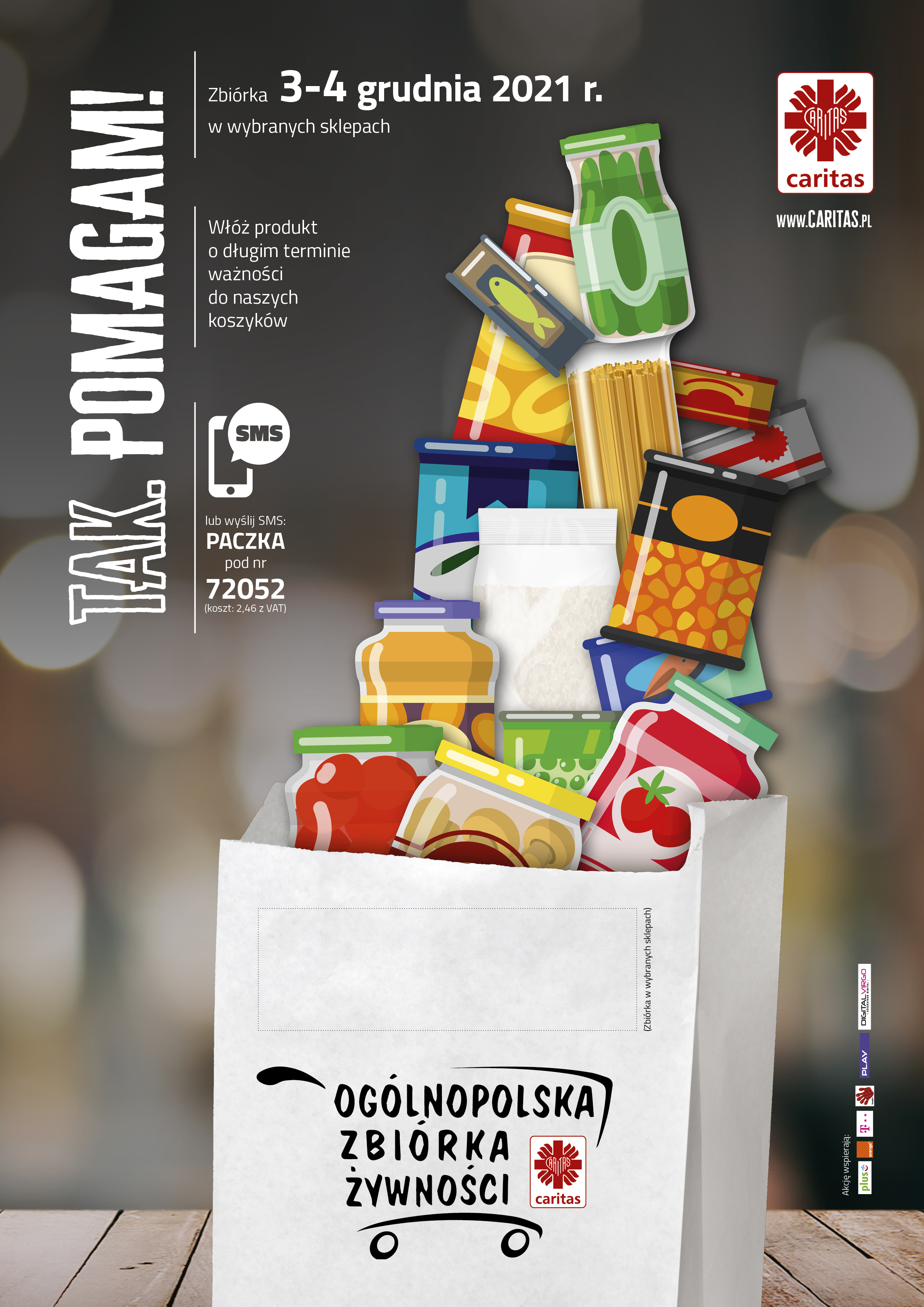 Kampanię „Tak. Pomagam!” organizują Caritas Polska i Caritas diecezjalne. Można się do niej przyłączyć zostawiając część zakupów w koszykach wolontariuszy, a także wysyłając w trakcie zbiórki SMS o treści PACZKA pod charytatywny numer 72052 (koszt to 2,46 z VAT).