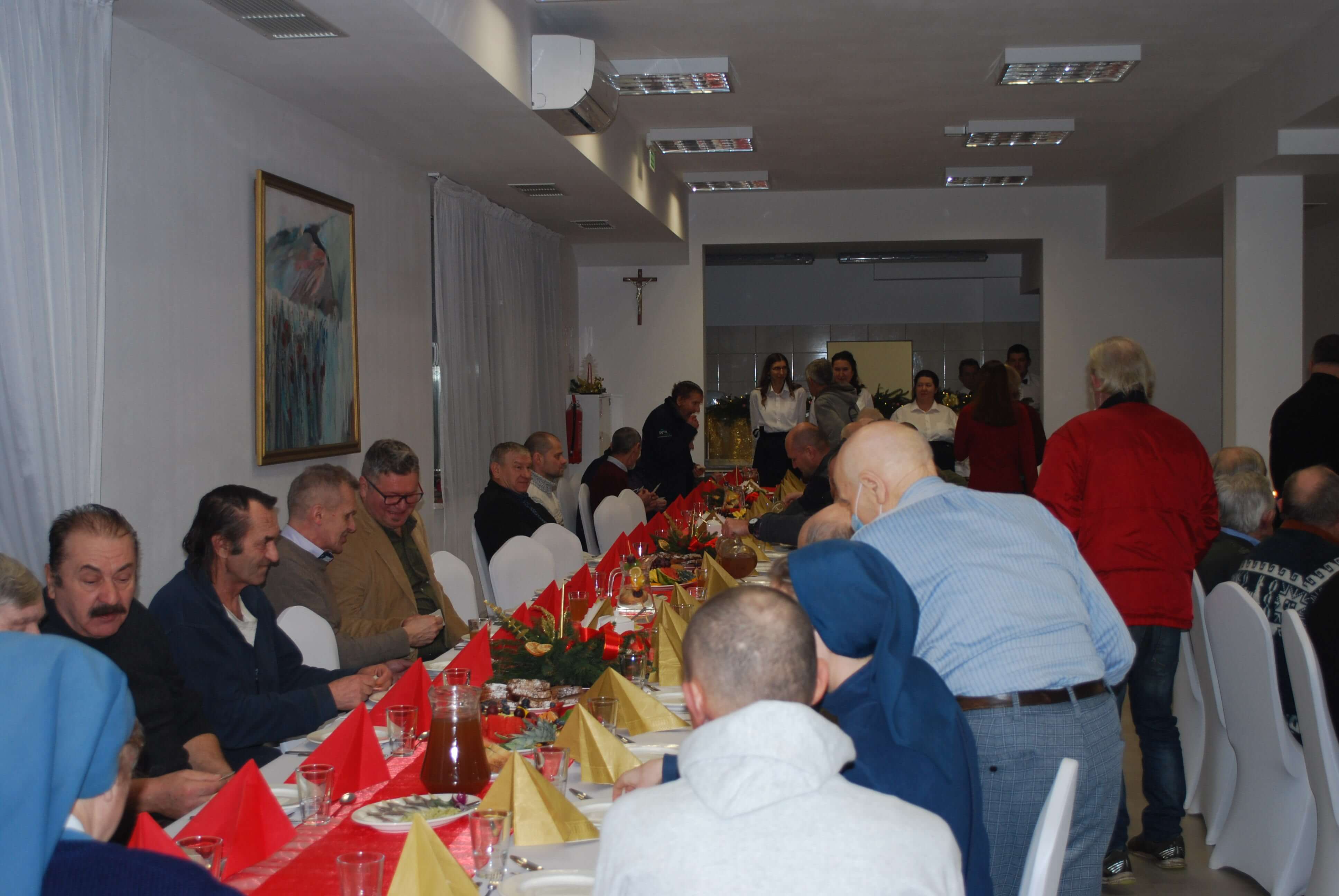 Po inauguracji otwarcia w sali kameralnej Zakładu Aktywności Zawodowej tradycyjnie jak co roku, odbyła się symboliczna wieczerza wigilijna przygotowana przez pracowników działu gastronomii ZAZ, specjalnie dla osób bezdomnych, ubogich i samotnych. Następnie po przeczytaniu Ewangelii św. Łukasza (Łk 2, 1-14) i odmówieniu wspólnej modlitwy oraz ogólnie złożonych świątecznych życzeń, każdy z uczestników przyjął opłatek i zasiadł do tradycyjnej wieczerzy. Wizyta odbyła się zgodnie z obowiązującym rozporządzeniem i zachowaniem restrykcji sanitarnych związanych z pandemią Covid-19.