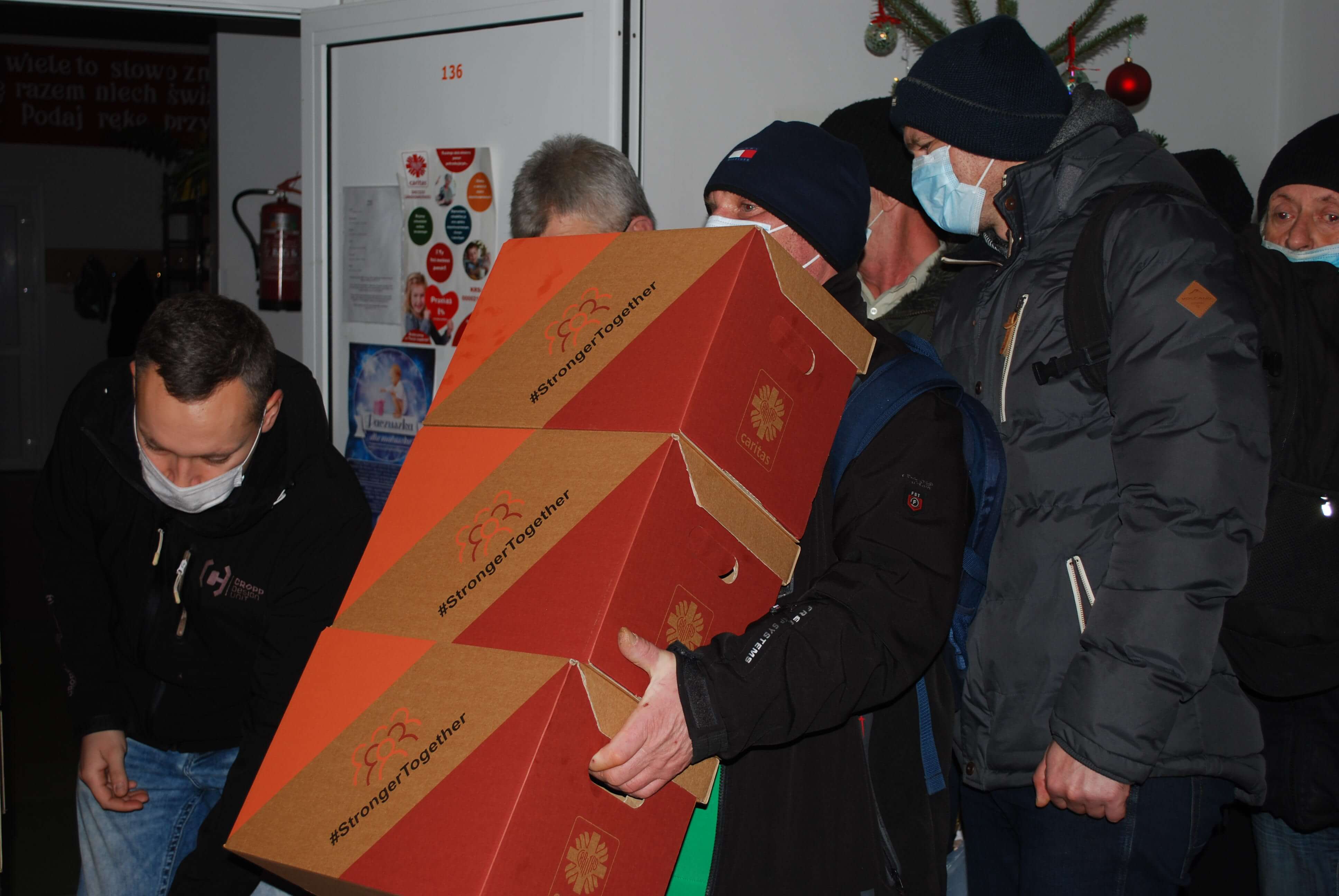 W Wigilię Świąt Bożego Narodzenia przy symbolicznym stole Caritas Diecezji Sandomierskiej spotkały się osoby starsze, samotne i schorowane oraz z najuboższych rodzin, które na co dzień korzystają z obiadów przygotowanych przez „Kuchnię dla Ubogich” CDS. Po poświęceniu opłatków, wspólnej modlitwie oraz życzeniach świątecznych złożonych przez BP Diecezji Sandomierskiej Ks. Krzysztofa Nitkiewicza i Dyr. CDS Ks. Bogusława Pituchę, zgromadzeni mieszkańcy z Sandomierza otrzymali paczki z przygotowaną żywnością na Wieczerzę Wigilijną i dwa dni świąt, w których oprócz tradycyjnych potraw, był także wspomniany opłatek (do wspólnego podzielenia się z bliskimi) oraz świeca WDPD rozprowadzana w kościołach naszej diecezji. Jak zaznaczył Biskup Ordynariusz – „Te paczki świąteczne przygotowane są nie tylko z inicjatywy Caritas, ale przede wszystkim dzięki ofiarności wielu ludzi z naszej diecezji, którzy troszczą się o potrzeby najuboższych, nie tylko od święta ale pomagając również przez cały rok”. Ponadto w przygotowanych paczkach oprócz żywności dla Pań i Panów, były także drobne upominki w postaci zestawów kosmetyków i jak podkreślił Ks. dyrektor – „Tak jak każdy z nas czeka na Wigilię i Święta Bożego Narodzenia, na tę pierwszą gwiazdkę i upominki świąteczne. Tak i my chcemy, żeby ta wigilia dla ludzi ubogich i potrzebujących była taka sama jak w każdej rodzinie i w domu… Dlatego dziś, spotykamy się w wigilijny dzień przy tym symbolicznym stole odmawiając wspólną modlitwę, dzieląc się opłatkiem i świątecznymi potrawami a także przekazując skromne upominki, które dodane są do paczek.”