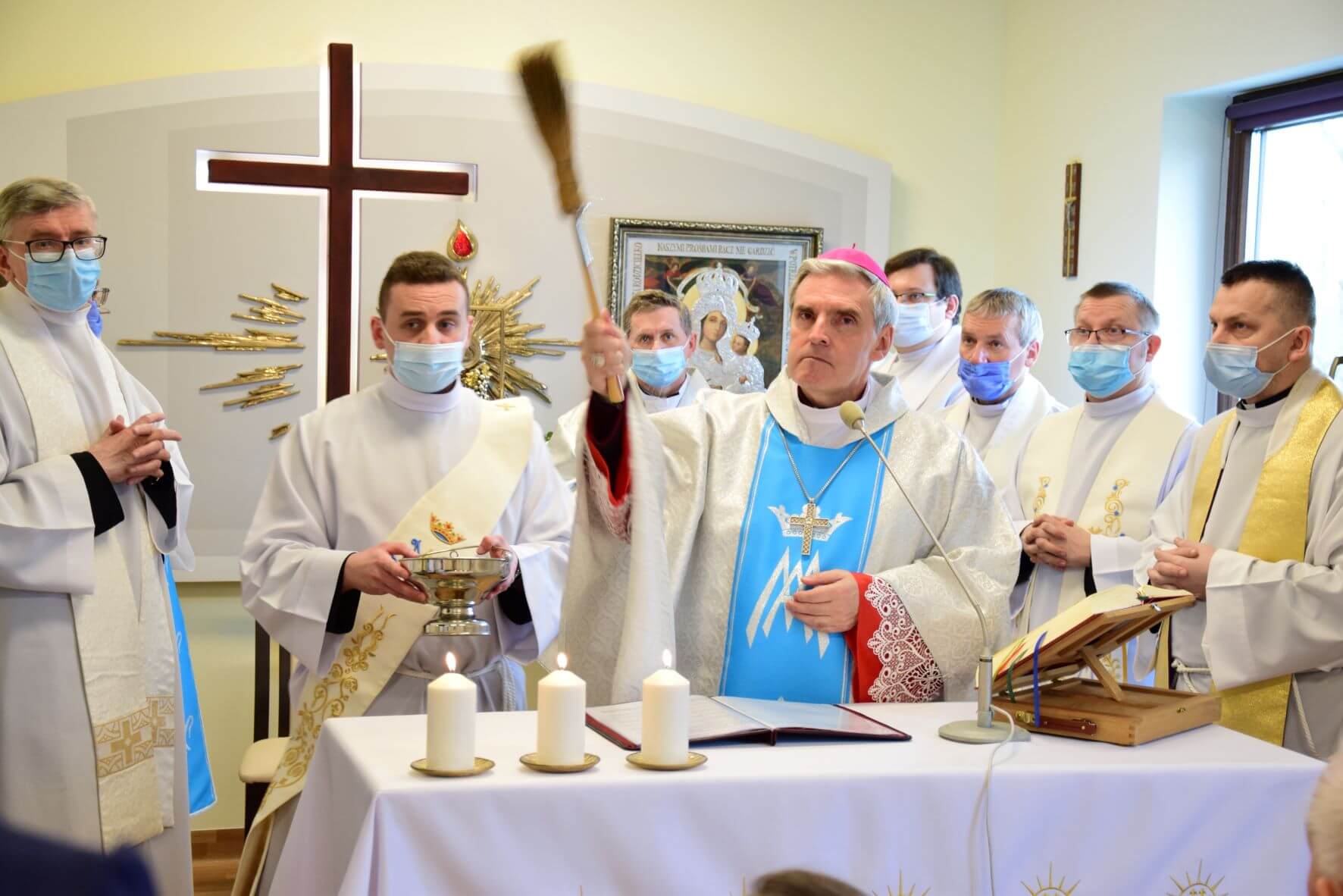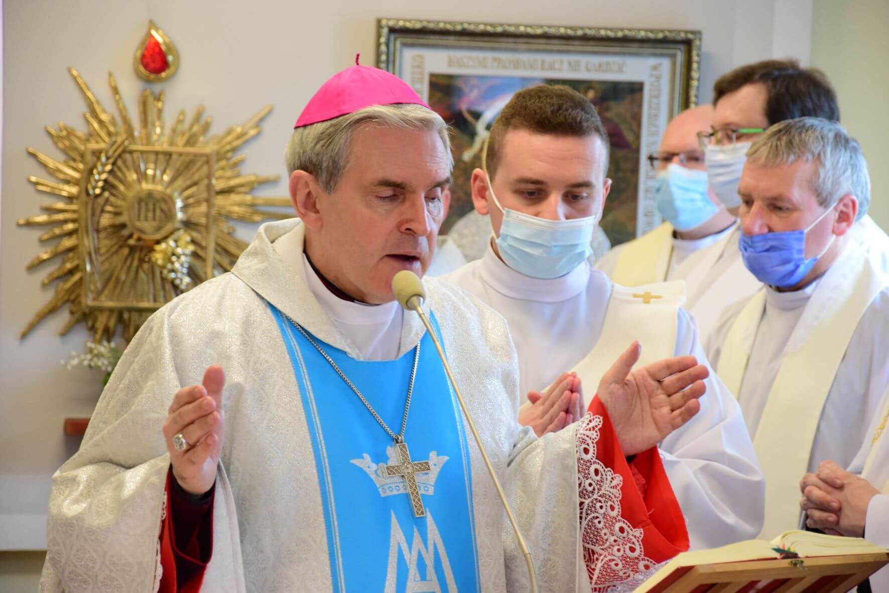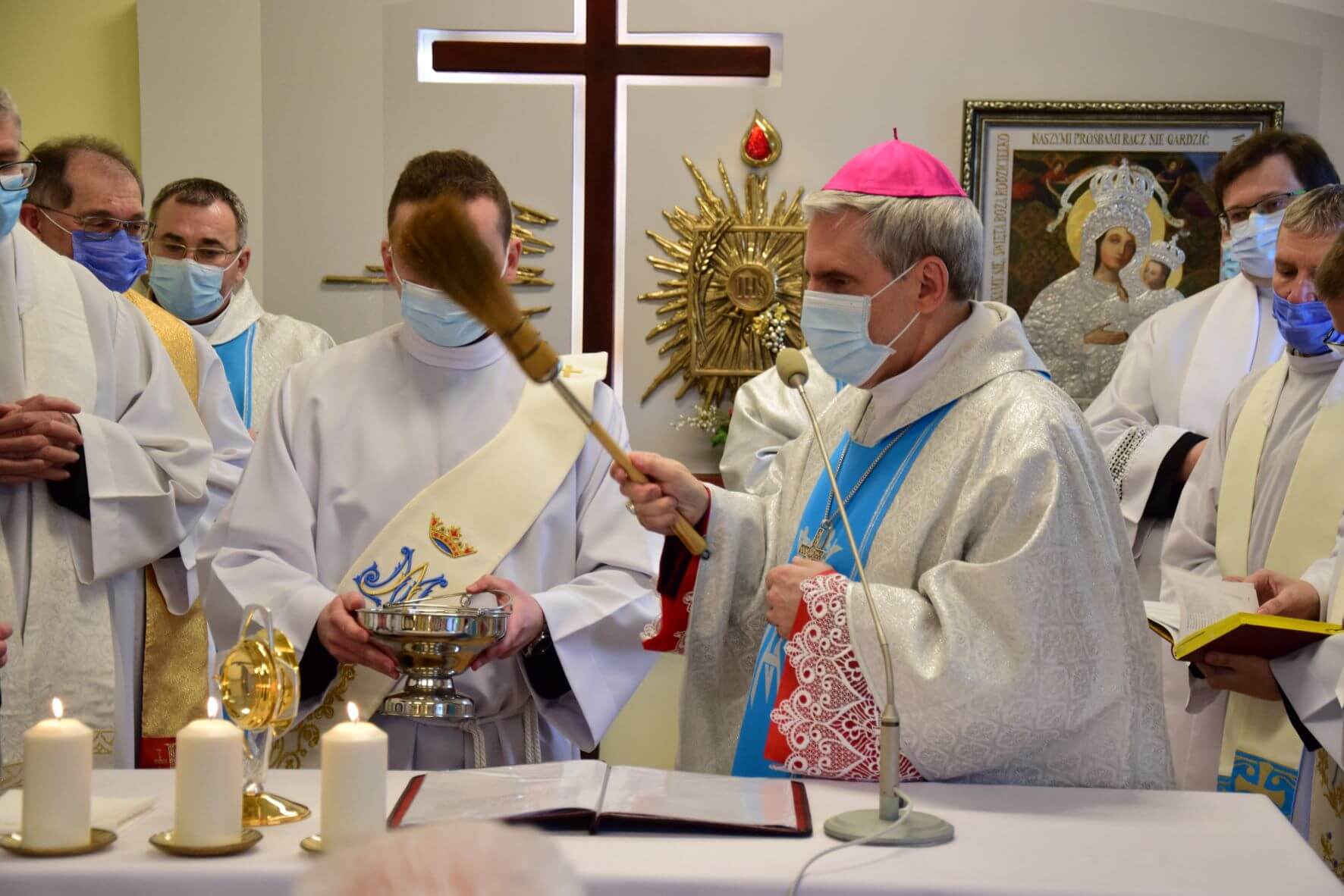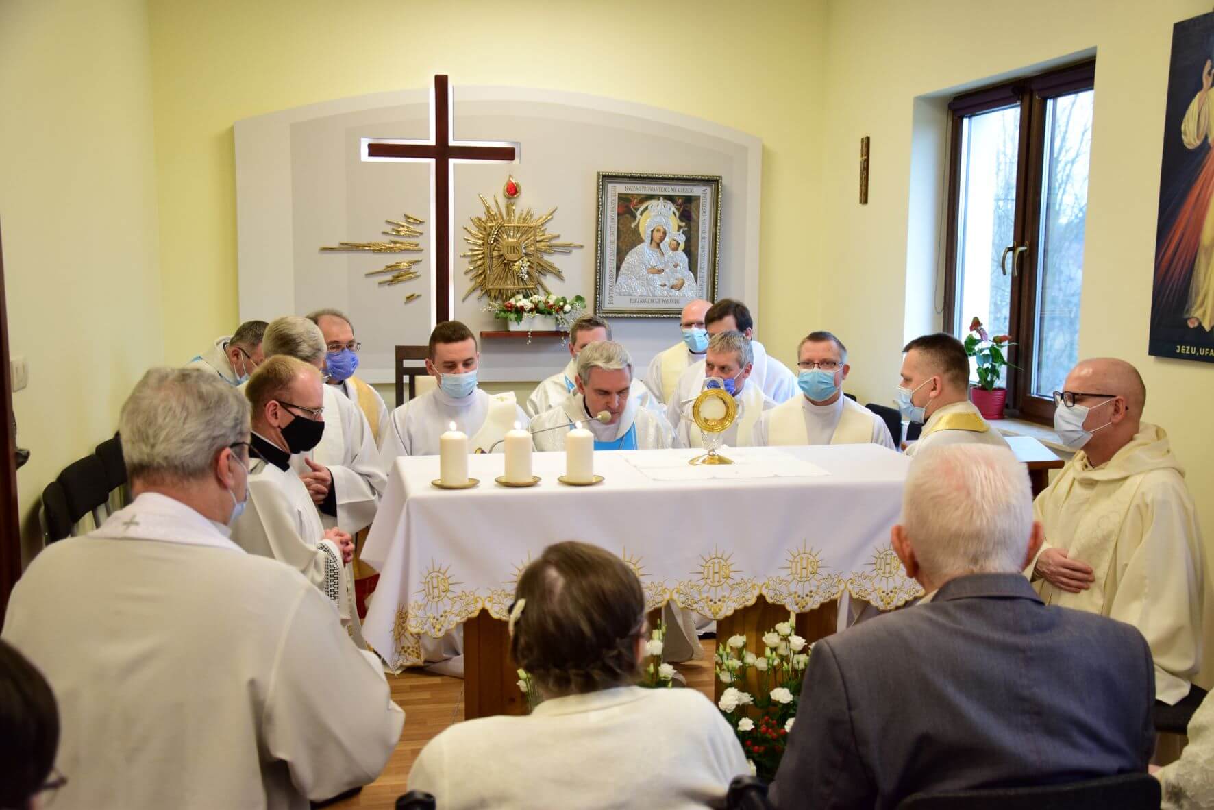 Na zakończenie Eucharystii została odmówiona Litania do Matki Bożej, a następnie wszystkim zgromadzonym w kaplicy oraz uczestniczącym w uroczystości za pośrednictwem transmisji internetowej, Ks. Biskup Nitkiewicz udzielił błogosławieństwa Najświętszym Sakramentem.