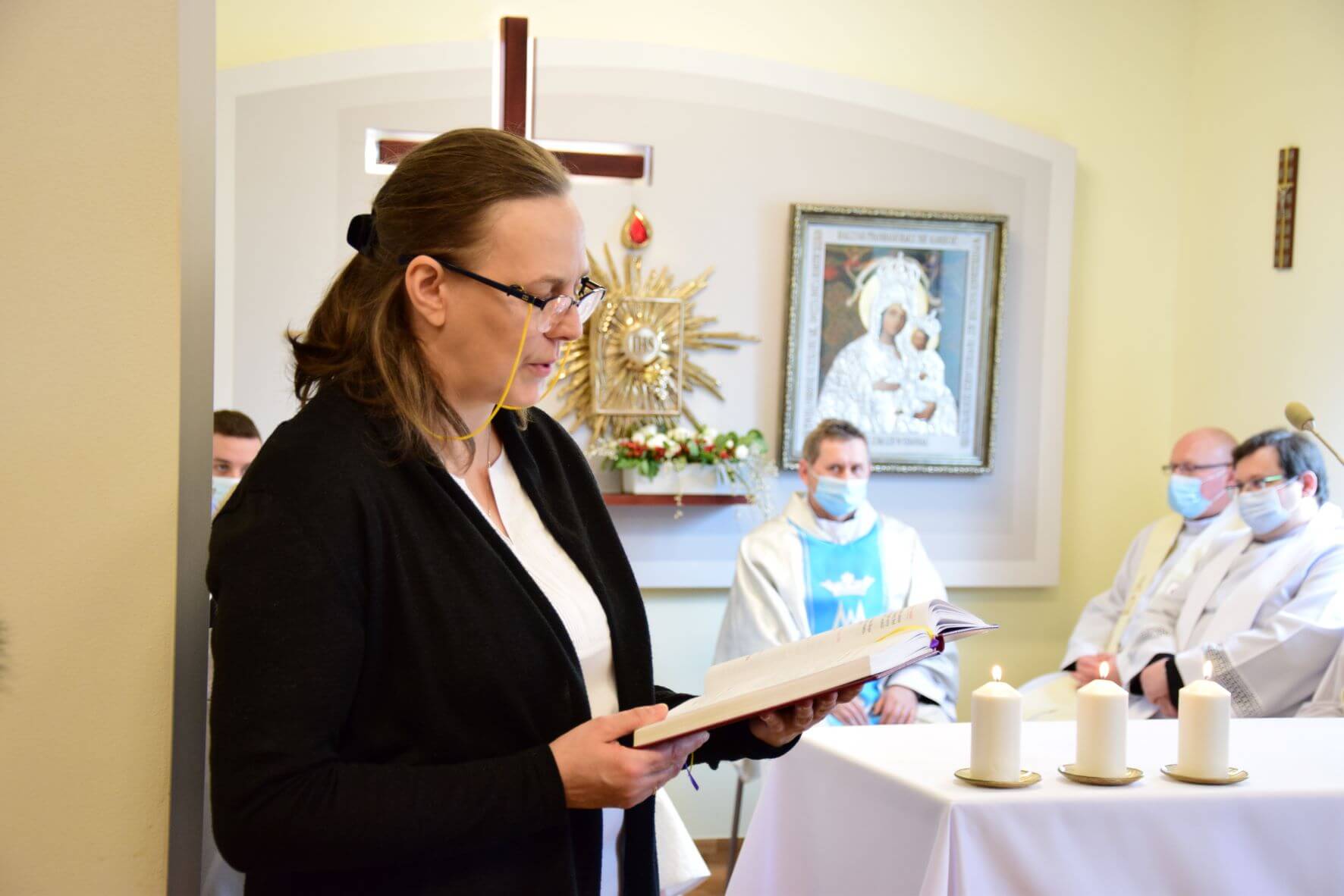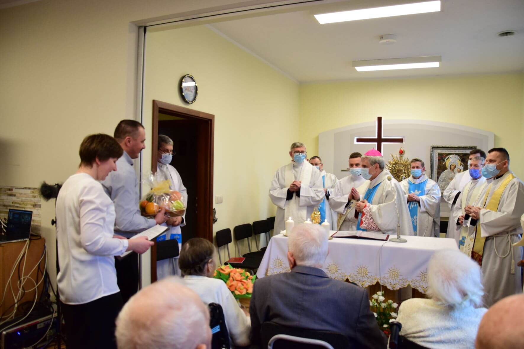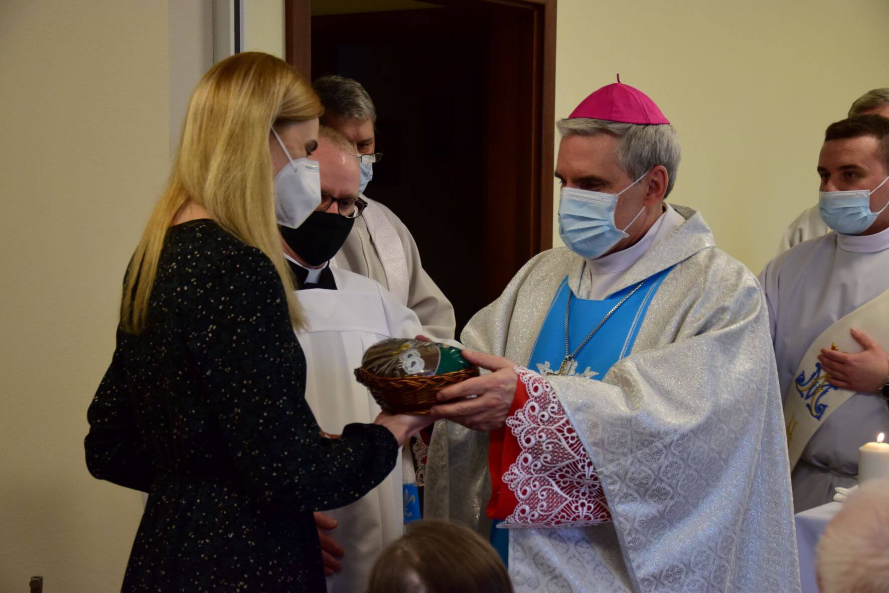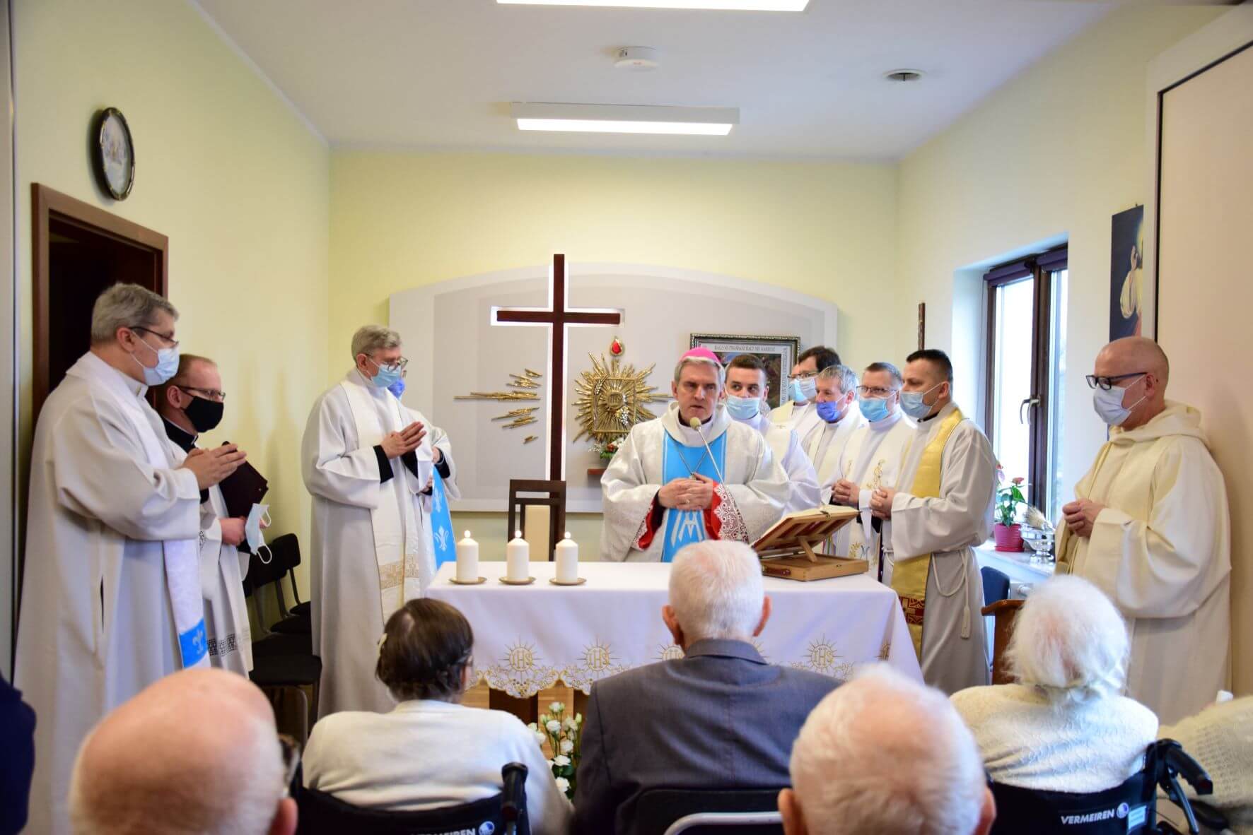 Na zakończenie Eucharystii została odmówiona Litania do Matki Bożej, a następnie wszystkim zgromadzonym w kaplicy oraz uczestniczącym w uroczystości za pośrednictwem transmisji internetowej, Ks. Biskup Nitkiewicz udzielił błogosławieństwa Najświętszym Sakramentem.
