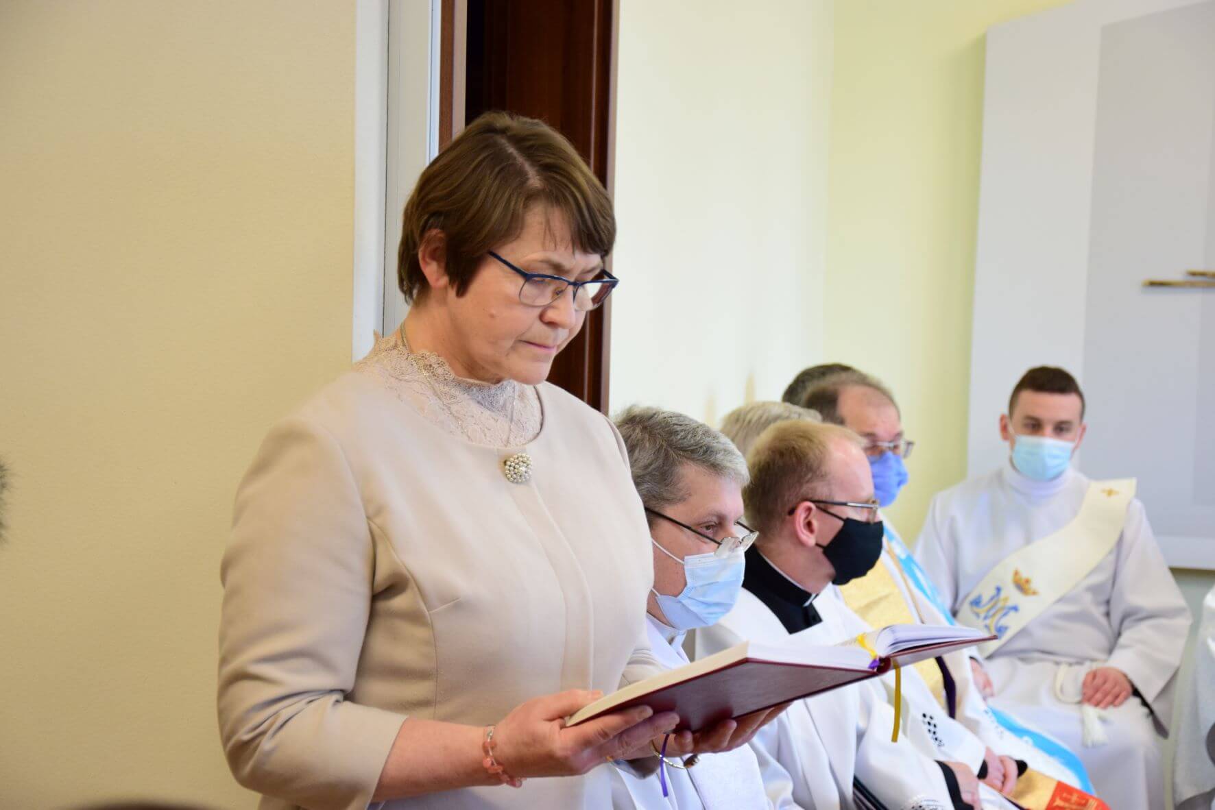 Wspólną modlitwę rozpoczęto od powitania Księdza Biskupa przez Matkę Generalną Zgromadzenia Sióstr od Aniołów – s. Marię Piątkowską, gdzie na jej prośbę Bp. Nitkiewicz poświęcił kaplicę pw. Matki Bożej Gietrzwałdzkiej.