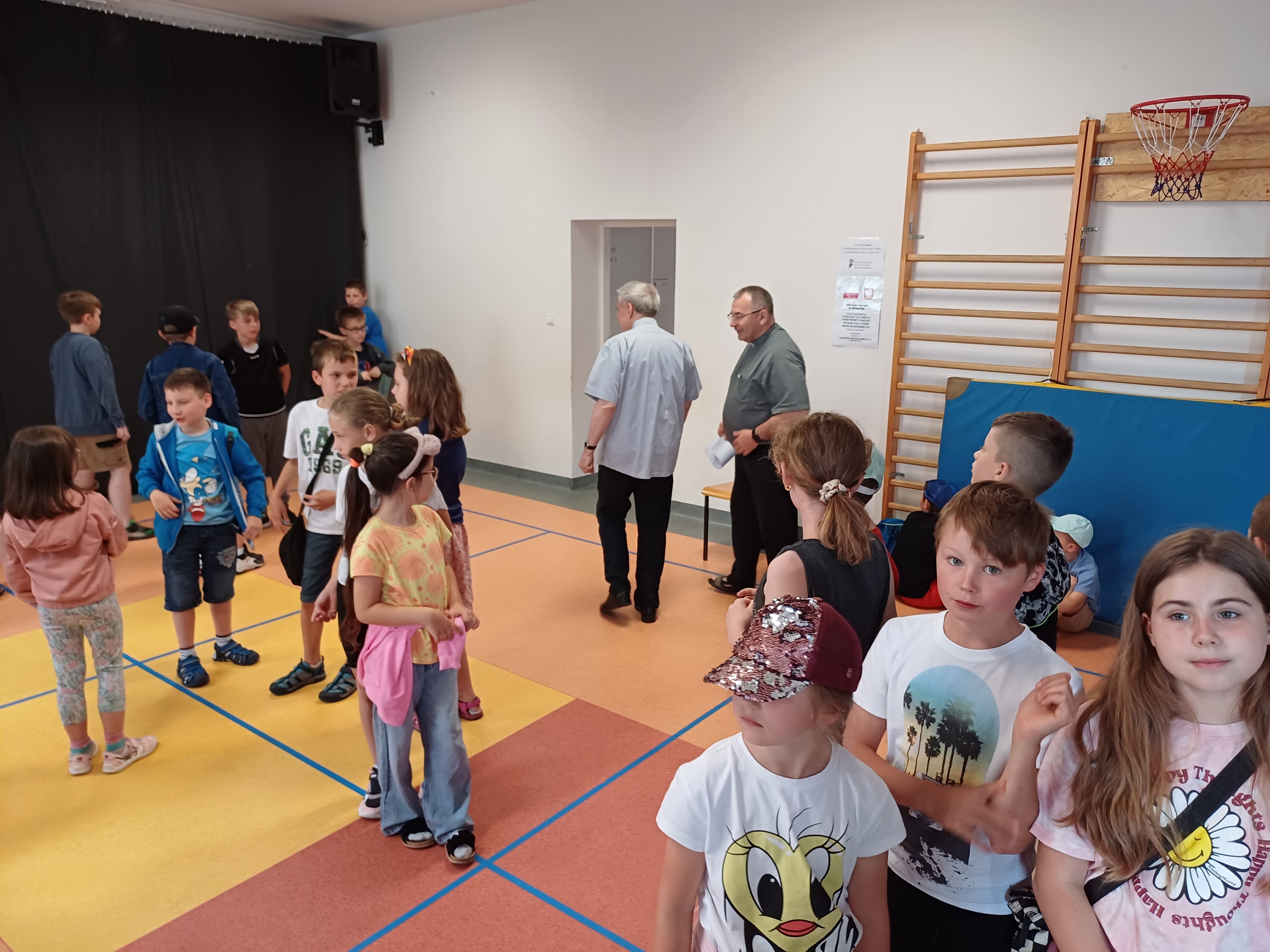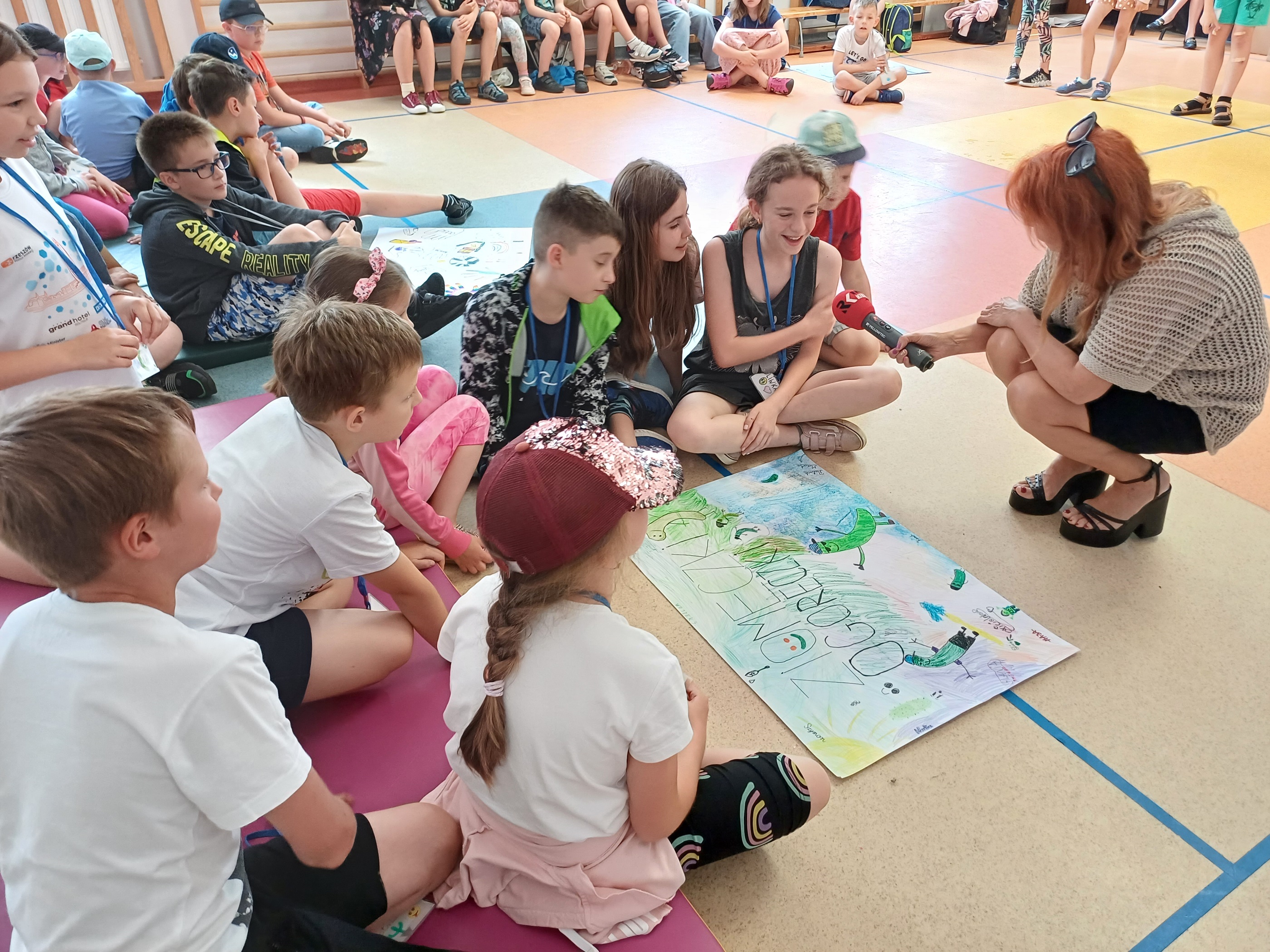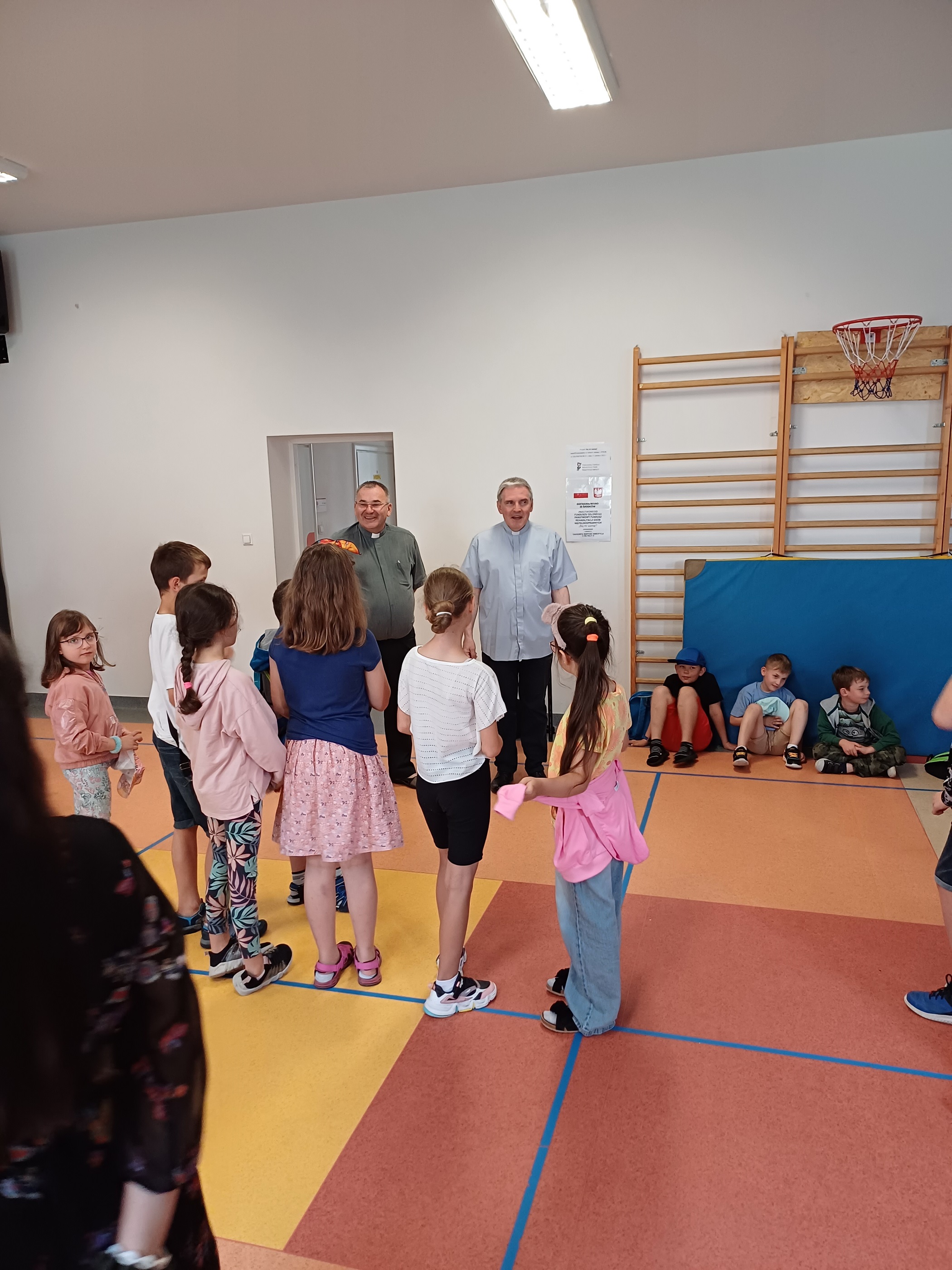 Miłym akcentem dnia była wizyta J.E. Księdza Biskupa Krzysztofa Nitkiewicza, który porozmawiał z uczestnikami oraz spotkanie dzieci z Panią Grażyną Szlęzak dziennikarką Radia Kielce, która chętnie odpowiadała na pytania dotyczące pracy w radiu.