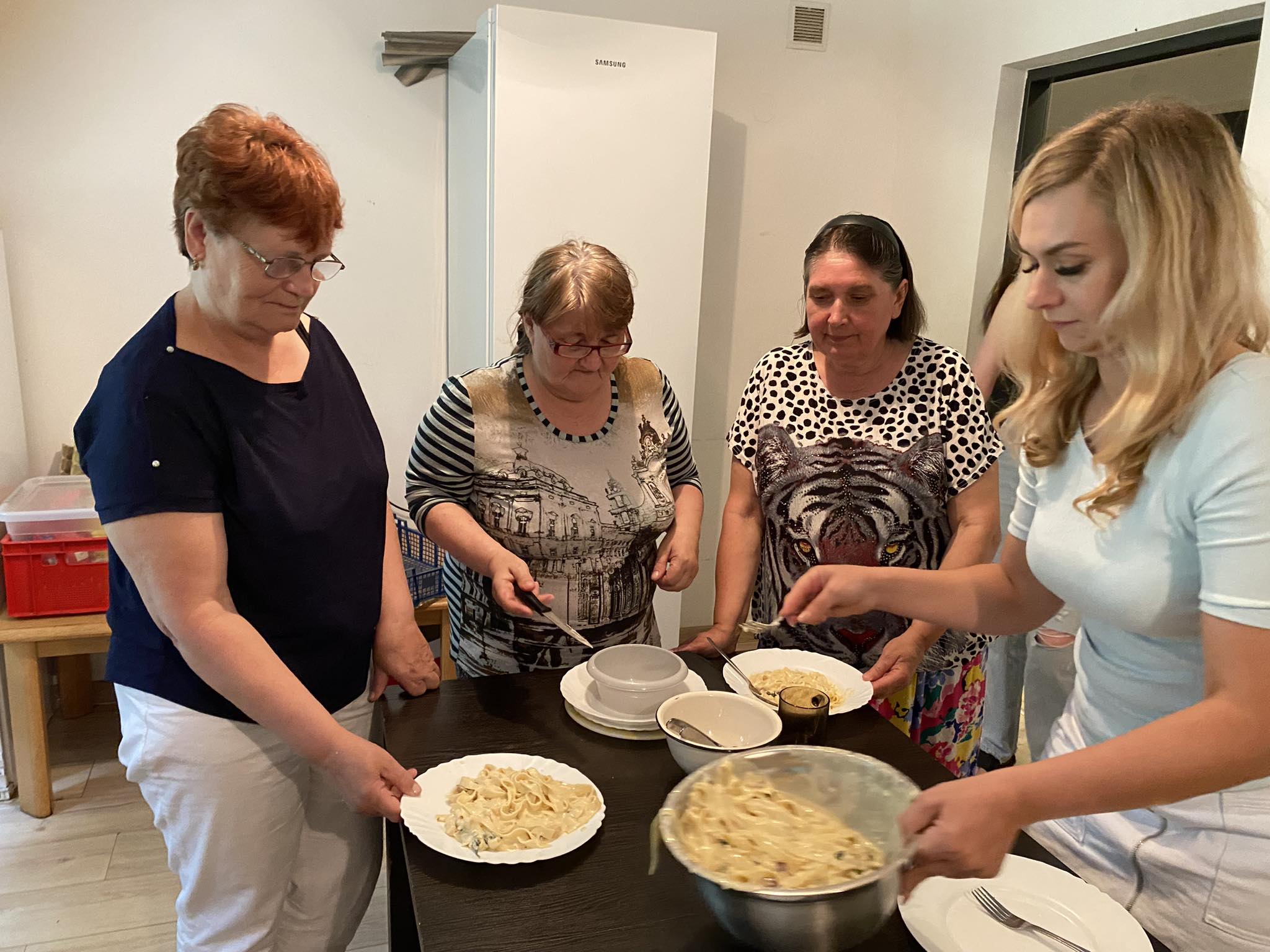Zajęcia kulinarne w ramach Projektu „ Przywrócić nadzieję” w którym udział biorą cudzoziemcy z Ukrainy to doskonała okazja do wymiany przepisów kulinarnych, poznania nowych potraw, smaków ale przede wszystkim by smacznie zjeść. Forma zajęć kulinarnych, rodzaj przygotowywanych potraw w każdej z grup jest inna. Wynika to z faktu, iż w każdej z trzech miejscowościach tj. Sandomierzu, Janowie Lubelskim i Bojanowie są rożni beneficjaci a w przeważającej części to dzieci i młodzież. Dlatego też realizatorzy zajęć dokładają wszelkich starań aby spotkania przebiegały w miłej i przyjezdnej atmosferze. Sami uczestnicy bardzo chętnie włączają się podczas zajęć, gdzie obierają warzywa, przygotowują smaczne zapiekanki, deserki, koktajle i wiele innych smacznych i zdrowych potraw. Pod koniec warsztatów kulinarnych omawiane jest co będzie przygotowywane na kolejnych zajęciach. Są to nie tylko nasze tradycyjne polskie dania ale także uczestnicy bardzo chętnie i z wielką radością dzielą się swoją ukraińską kuchnią. Zajęcia kulinarne potrwają do końca października 2023r.
