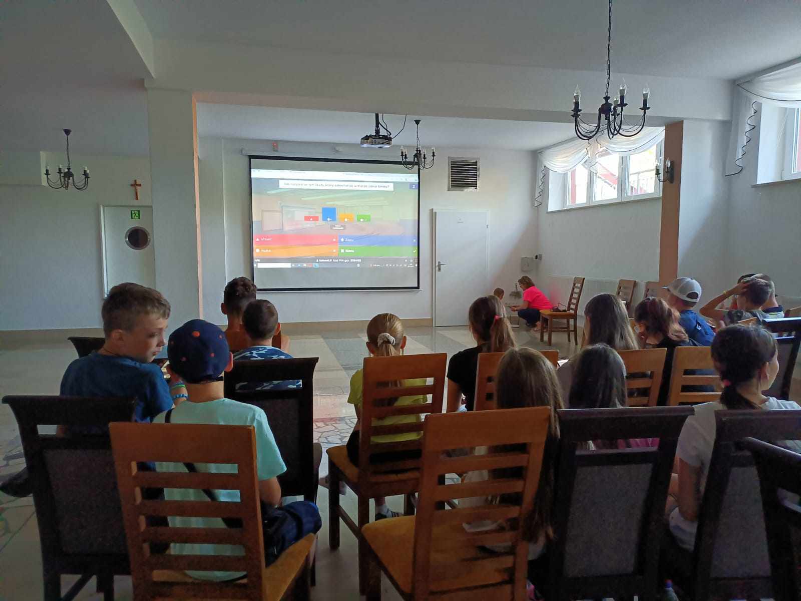 W niedzielę odbyły się warsztaty przyrodnicze pod hasłem ,, W poszukiwaniu Ekolandii” prowadzone przez przyrodniczkę z Fundacji EKOSKOP z Rzeszowa. Po południu uczestnicy kolonii wykonywali biżuterię z kamieni sztucznych i naturalnych a wieczorem brali udział w grze interaktywnej Kahoot.