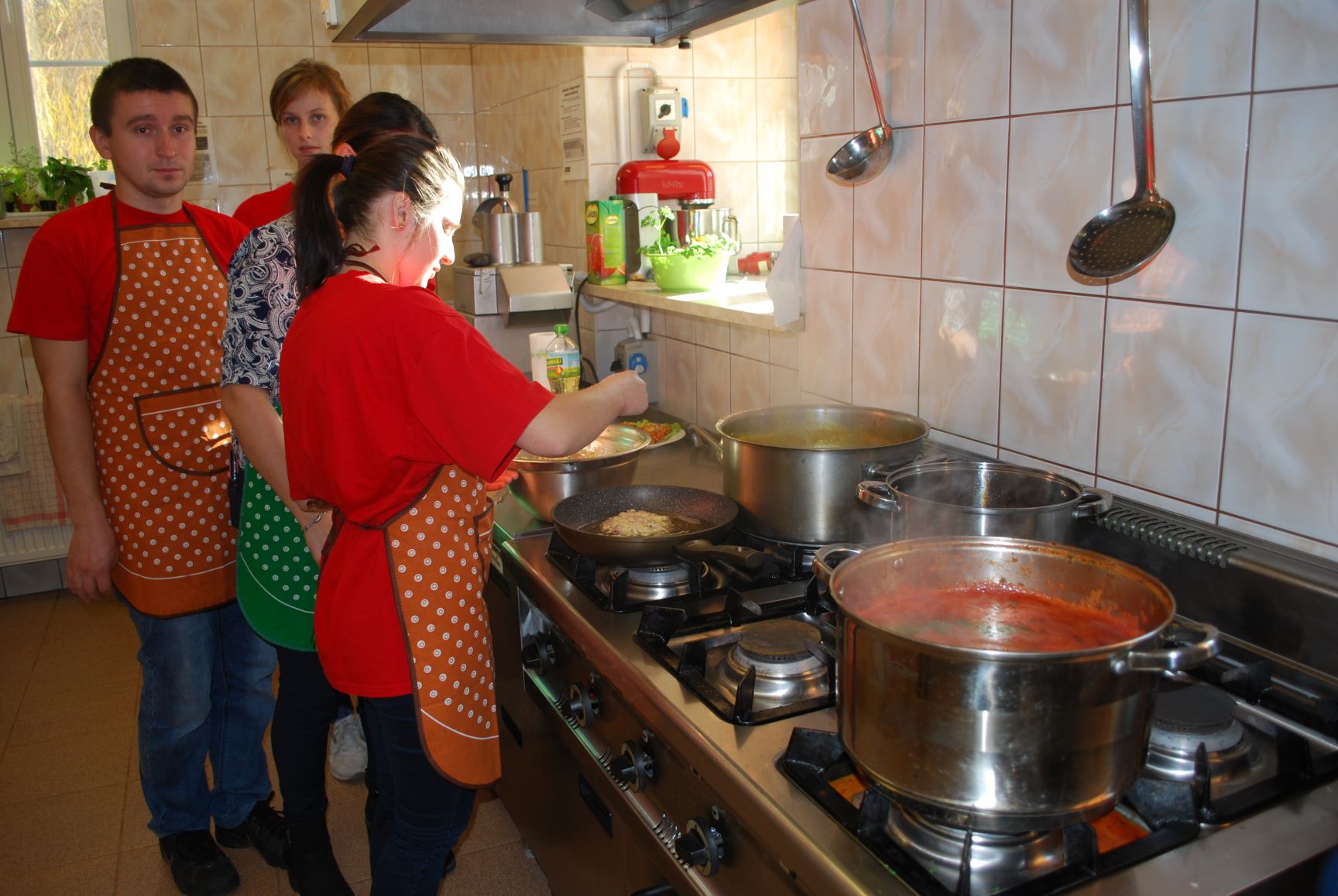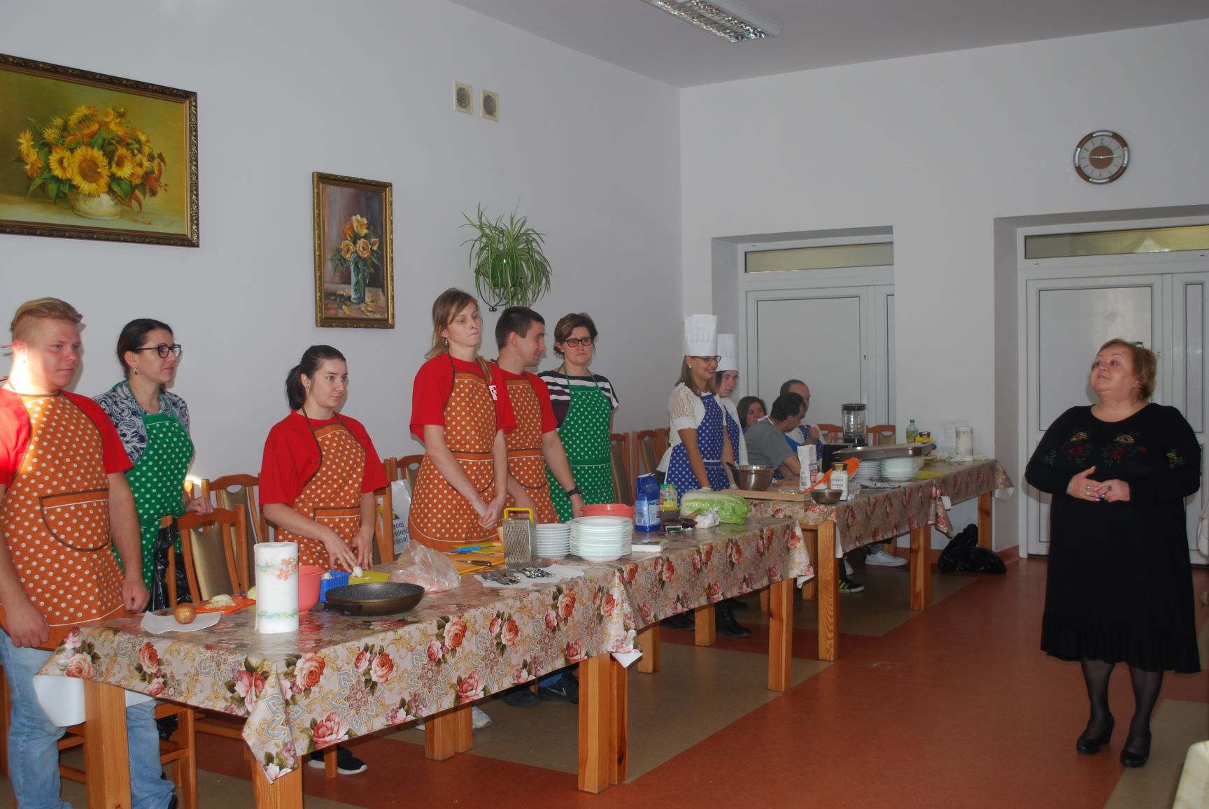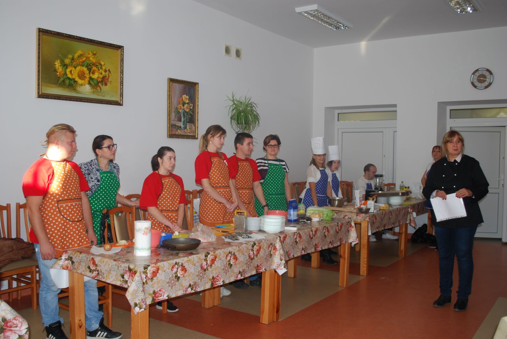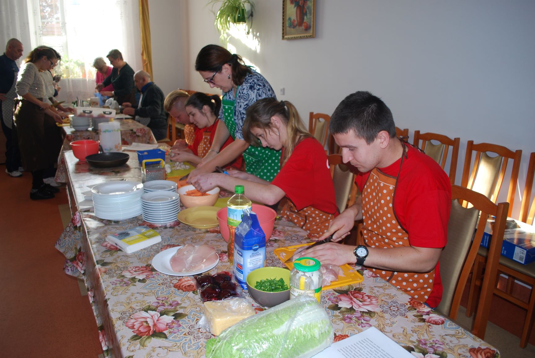 W czasie zmagań kulinarnych poszczególne drużyny pod kierunkiem profesjonalnych kucharzy przygotowywali popisowe dania. Poziom był bardzo wysoki. Oceniano nie tylko smak potraw, ale również proces ich przygotowania, estetykę podania, porządek na stanowisku pracy. Pierwsza drużyna składająca się z pań i panów ze schronisk Caritas przygotowała: przystawkę – pieczywo pełnoziarniste z pasta z awokado i łososia; danie główne – szaszłyk z kurczaka i ananasa z ryżem i warzywami; deser – ptysie z masą mascarpone i konfiturą z borówki. Druga drużyna w skład, której weszli uczniowie Szkoły Przysposabiającej do Pracy działającej w ramach Ośrodka „Radość Życia” podała danie główne – kotlety siekane z kurczaka z warzywami, frytki z batatów oraz dwie sałatki z kapusty pekińskiej i z buraczków. Natomiast trzecia drużyna złożona z uczestników Projektu „Rehabilitacja 25+” zaserwowała: danie główne – jesienną zupę z dyni oraz deser – kruche ciasteczka „serduszka”. Z kolei czwarta drużyna, którą stanowiły Seniorki z Dziennego Domu Senior+ w Modliborzycach przygotowała deser – obwarzanki serowe. Na przygotowanie potraw uczestnicy zmagań mieli 60 minut. Apetycznie wyglądające dania zaprezentowano na stole degustacyjnym. Poziom był bardzo wyrównany, dlatego też wszyscy uczestnicy otrzymali jednogłośnie pierwsze miejsce oraz nagrody. Następnie miał miejsce poczęstunek, w czasie którego wymieniano się daniami. Spotkanie miało na celu integrację osób ubogich z placówek o charakterze pomocowym.