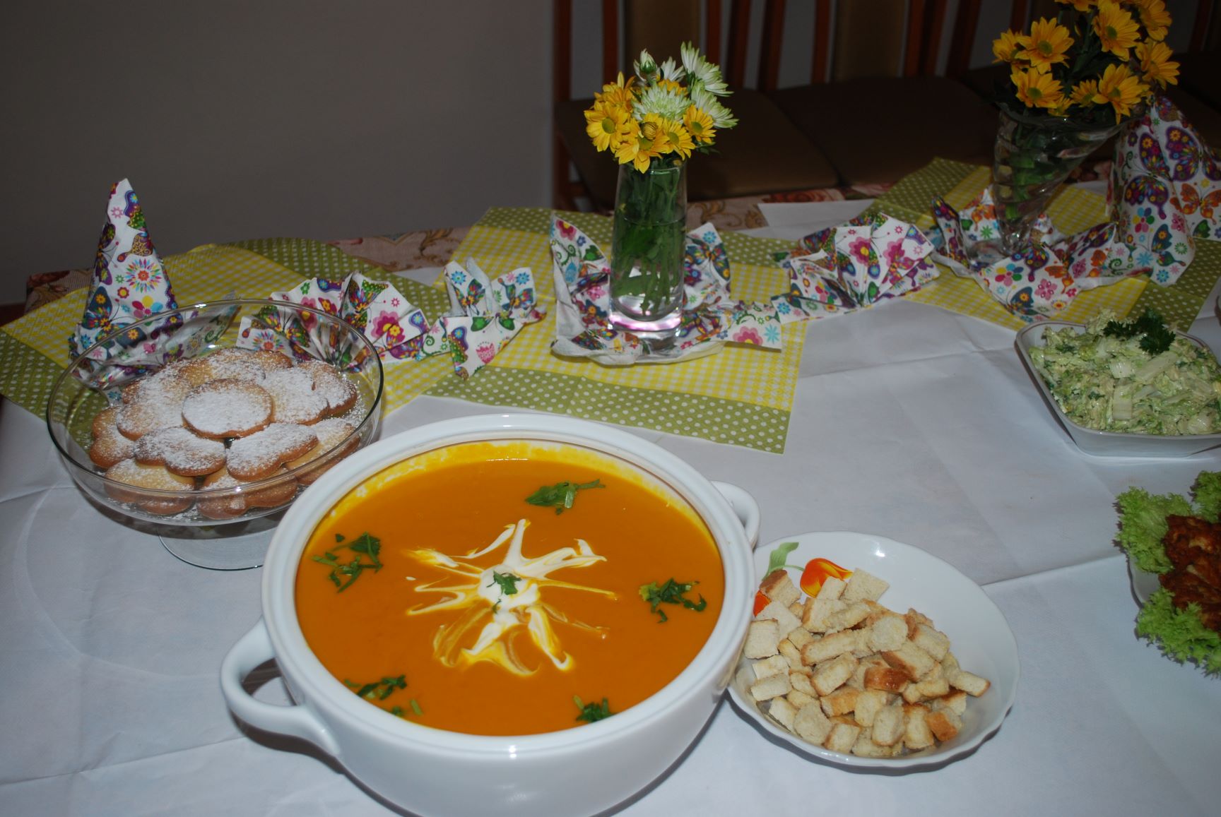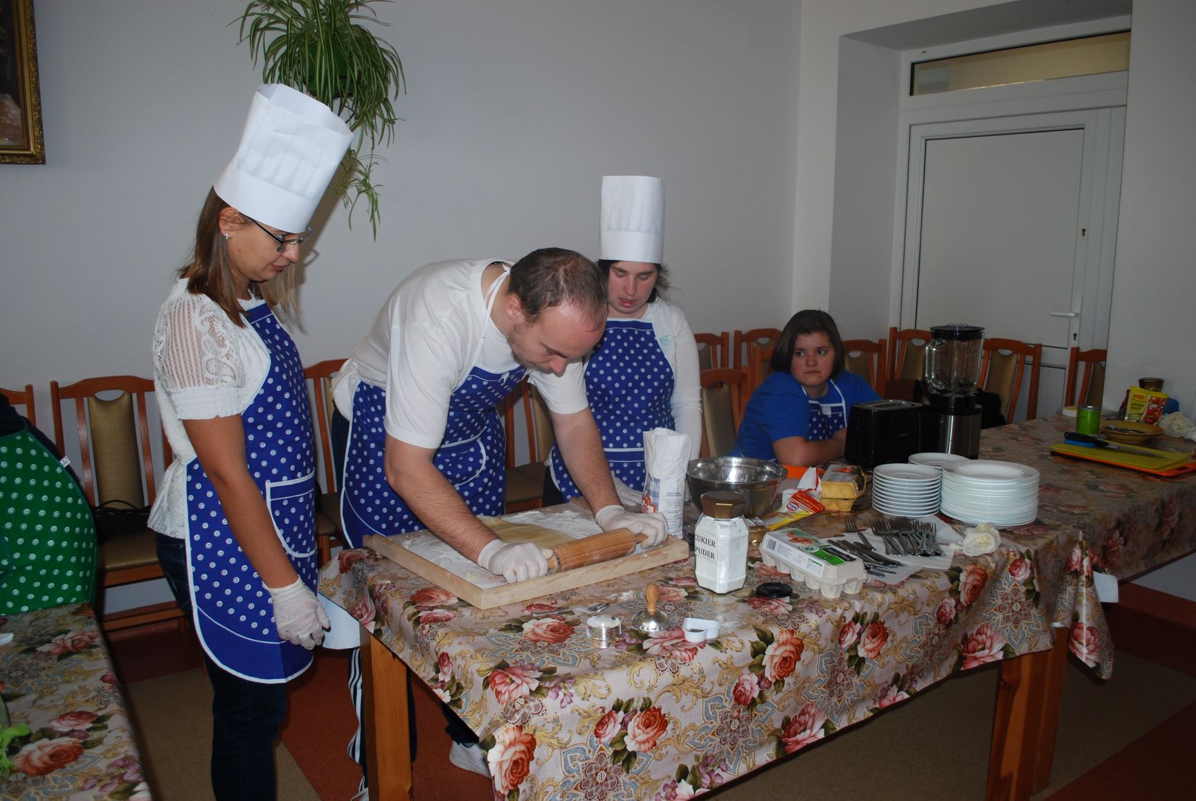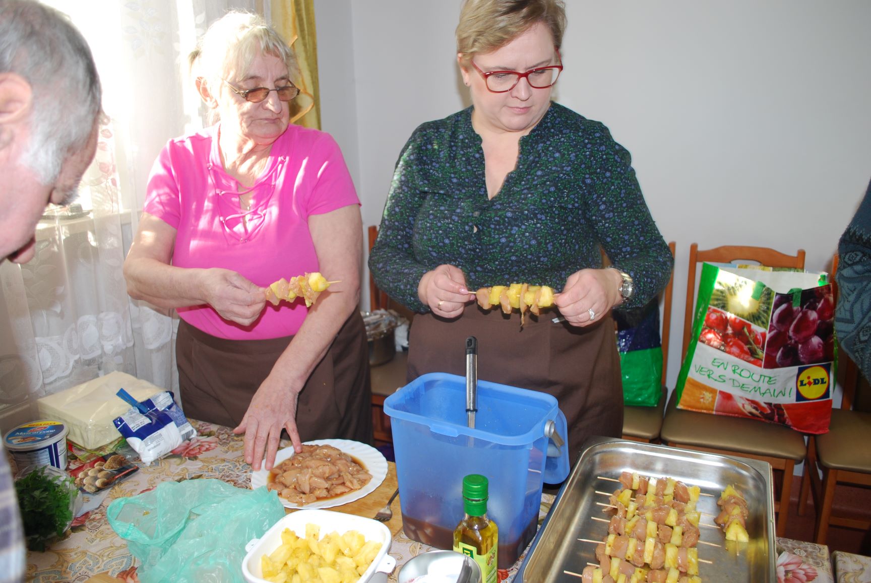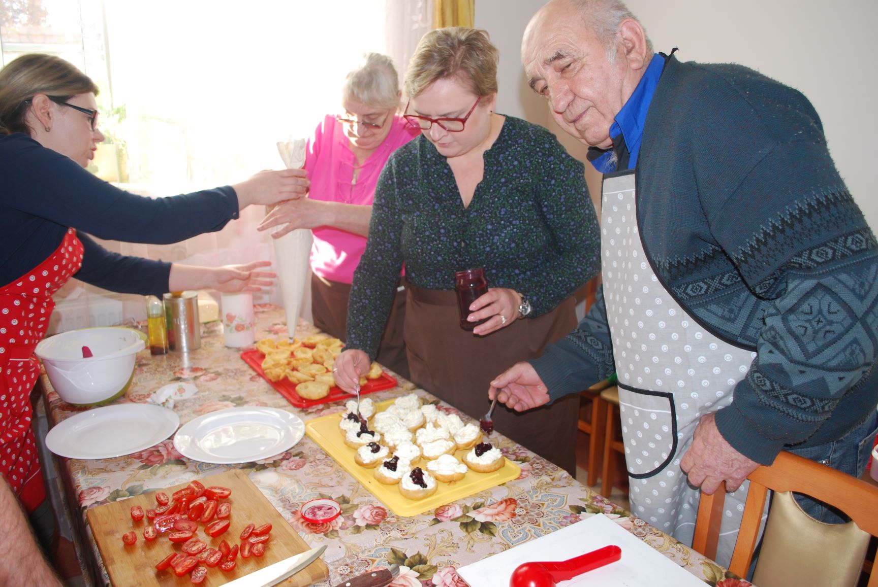 W czasie zmagań kulinarnych poszczególne drużyny pod kierunkiem profesjonalnych kucharzy przygotowywali popisowe dania. Poziom był bardzo wysoki. Oceniano nie tylko smak potraw, ale również proces ich przygotowania, estetykę podania, porządek na stanowisku pracy. Pierwsza drużyna składająca się z pań i panów ze schronisk Caritas przygotowała: przystawkę – pieczywo pełnoziarniste z pasta z awokado i łososia; danie główne – szaszłyk z kurczaka i ananasa z ryżem i warzywami; deser – ptysie z masą mascarpone i konfiturą z borówki. Druga drużyna w skład, której weszli uczniowie Szkoły Przysposabiającej do Pracy działającej w ramach Ośrodka „Radość Życia” podała danie główne – kotlety siekane z kurczaka z warzywami, frytki z batatów oraz dwie sałatki z kapusty pekińskiej i z buraczków. Natomiast trzecia drużyna złożona z uczestników Projektu „Rehabilitacja 25+” zaserwowała: danie główne – jesienną zupę z dyni oraz deser – kruche ciasteczka „serduszka”. Z kolei czwarta drużyna, którą stanowiły Seniorki z Dziennego Domu Senior+ w Modliborzycach przygotowała deser – obwarzanki serowe. Na przygotowanie potraw uczestnicy zmagań mieli 60 minut. Apetycznie wyglądające dania zaprezentowano na stole degustacyjnym. Poziom był bardzo wyrównany, dlatego też wszyscy uczestnicy otrzymali jednogłośnie pierwsze miejsce oraz nagrody. Następnie miał miejsce poczęstunek, w czasie którego wymieniano się daniami. Spotkanie miało na celu integrację osób ubogich z placówek o charakterze pomocowym.