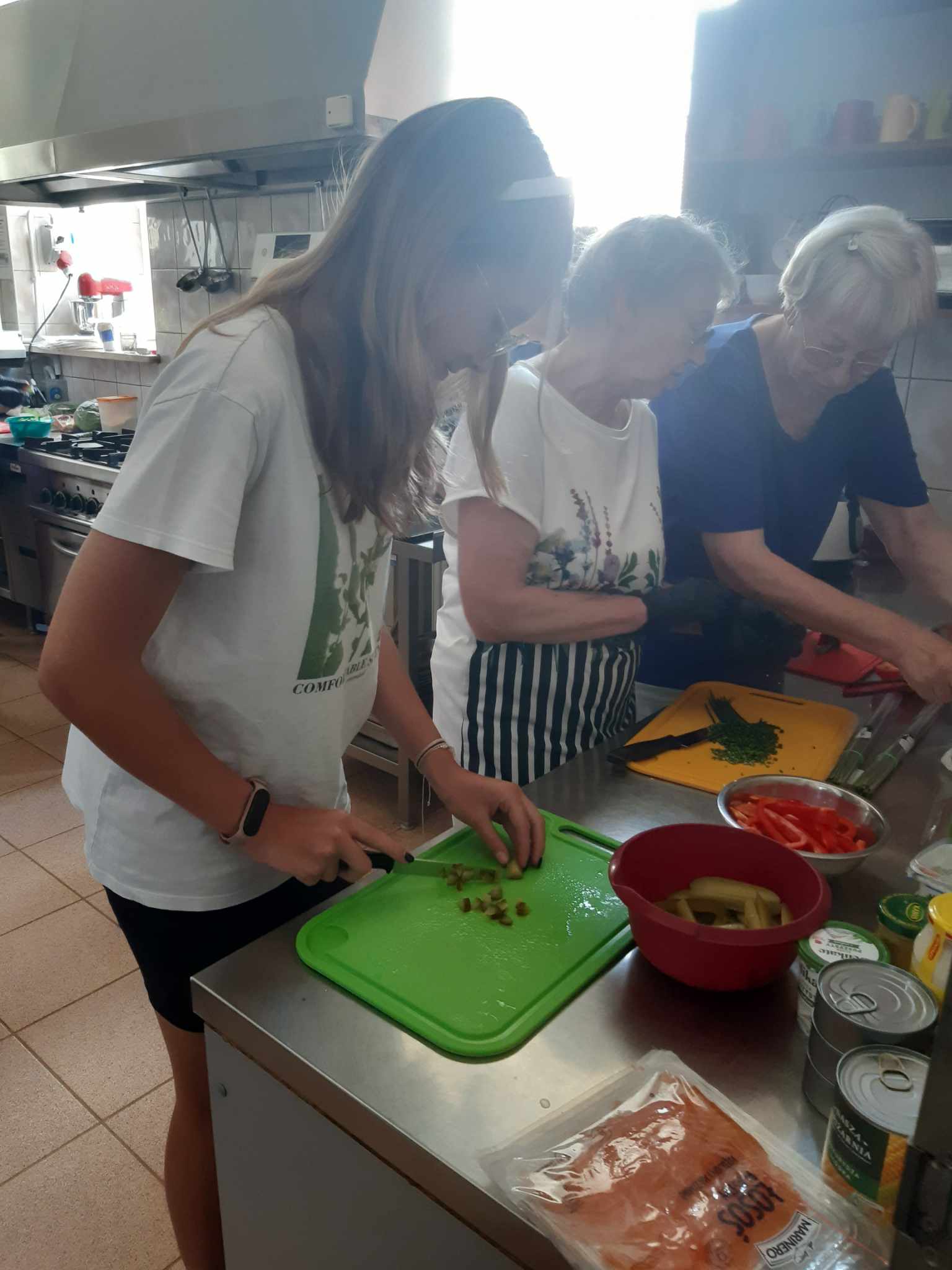 - kulinarne pn. "Kulinarne podróże od Juniora do Seniora” podczas których przygotowywane był smaczne przekąski, desery, koktajle, sałatki, zdrowe past oraz pieczenie pysznego chleba. Warsztaty dały możliwość wymiany doświadczeń kulinarnych, nauki młodego pokolenia robienia pierogów, pieczenia chleba, robienia przetworów. Z kolei seniorzy poznali nowe smaki, potrawy, dania preferowane przez dzieci i młodzież np. pizzy. Podczas zajęć panowała miła i bardzo przyjazna atmosfera co sprawiało iż warsztaty były bardziej atrakcyjne dla wszystkich uczestników.