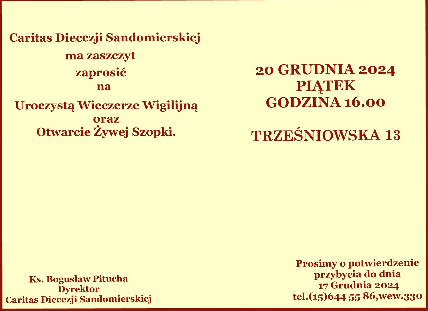 ZAPROSZENIE NA WIECZERZĘ WIGILIJNĄ