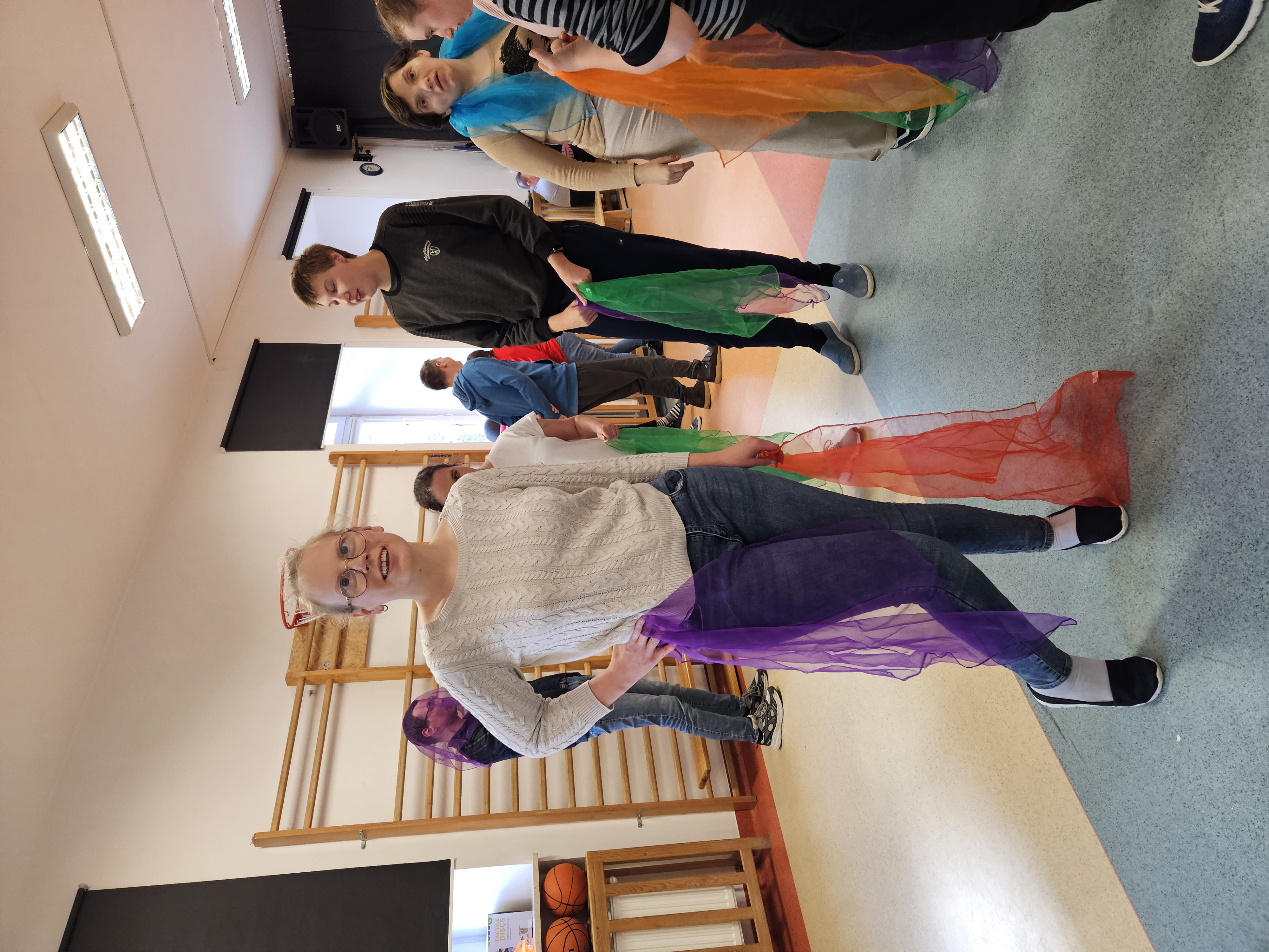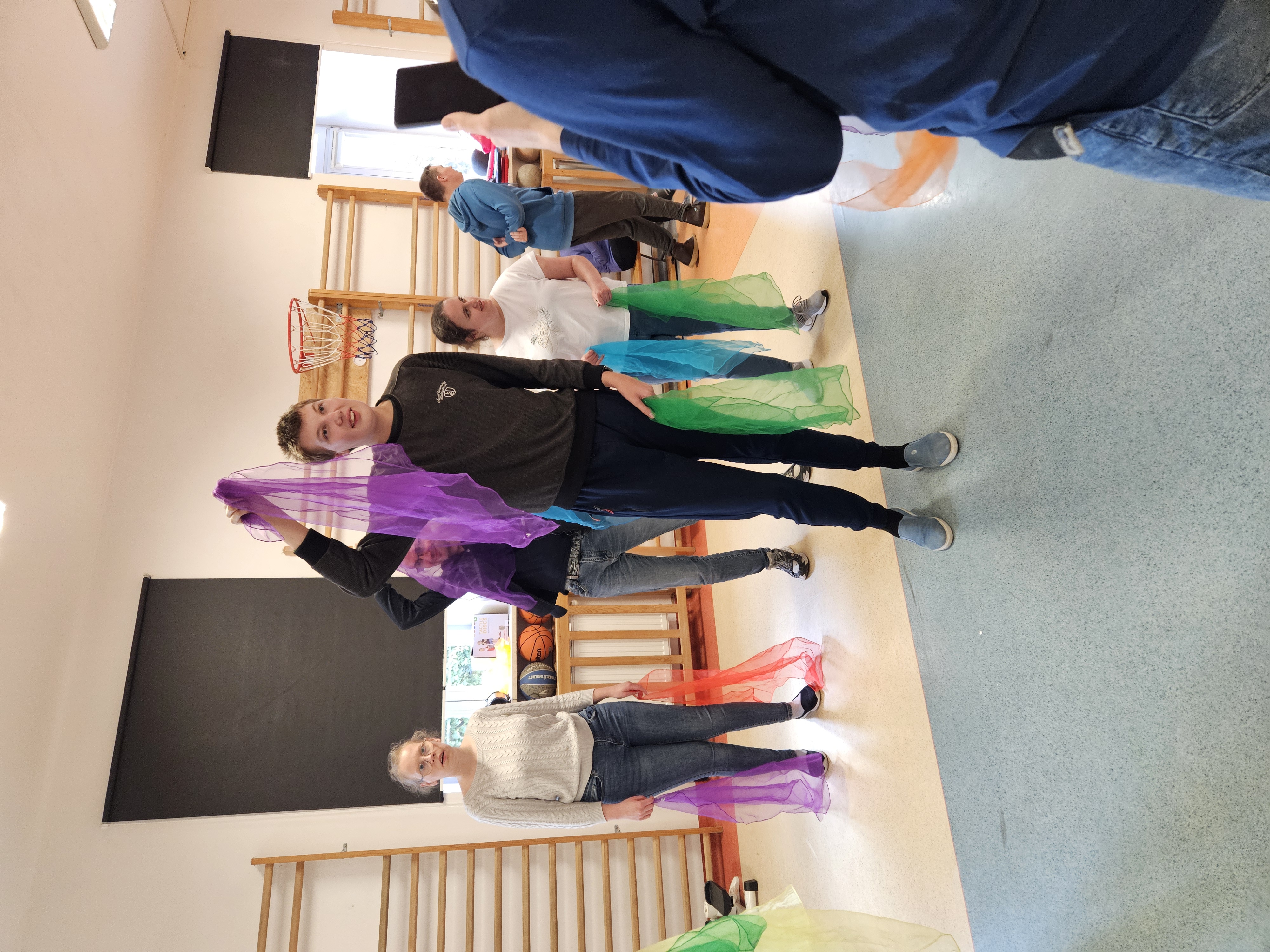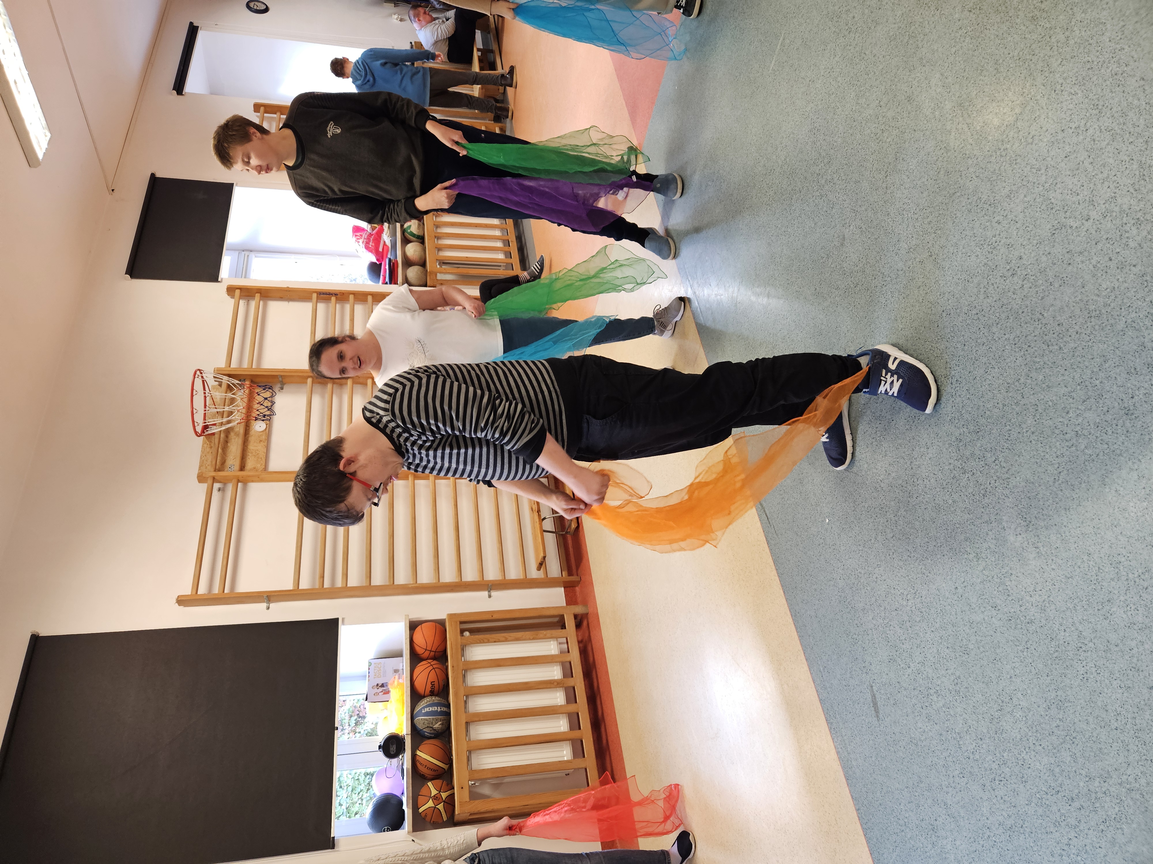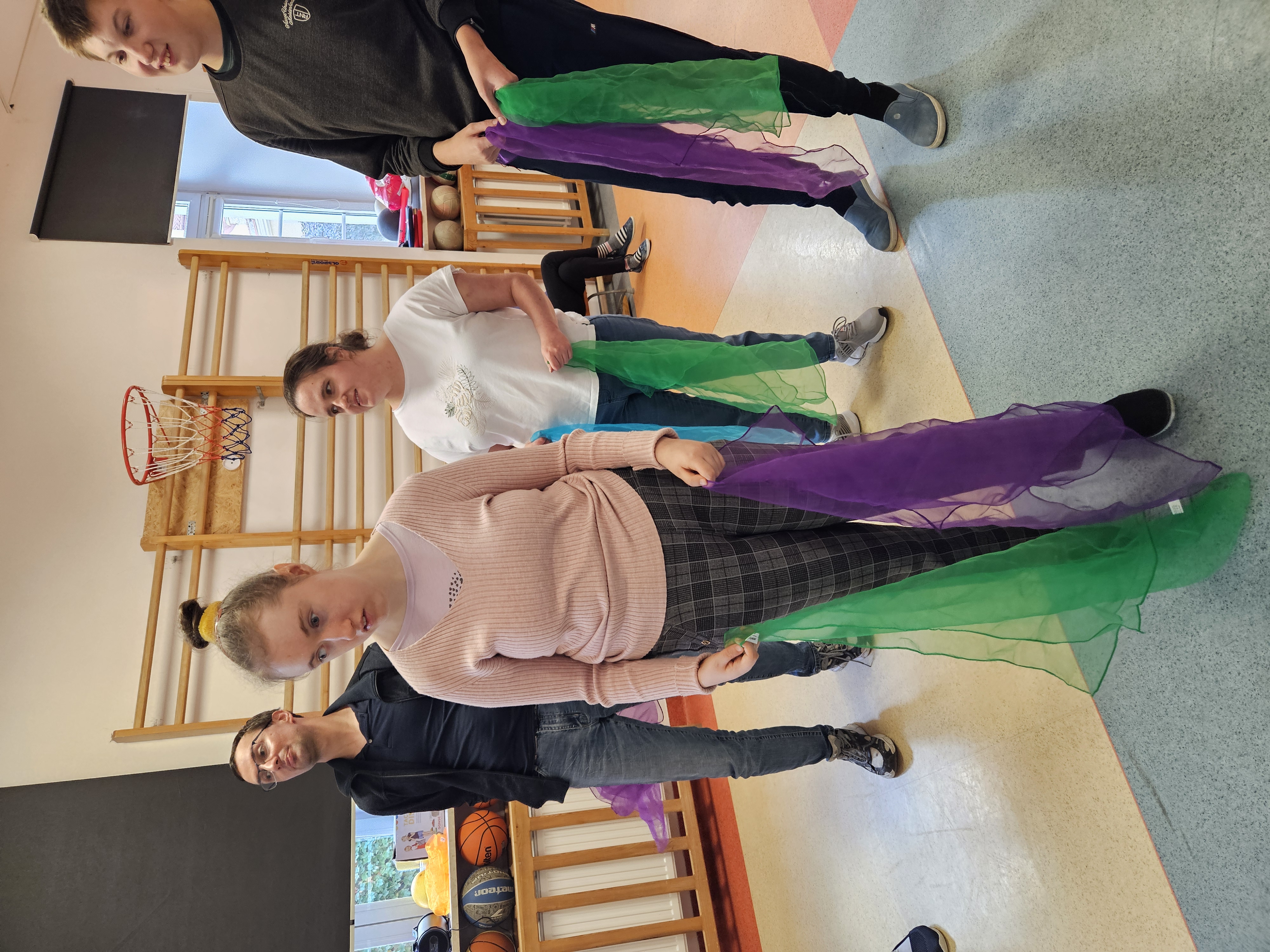 rozpoczynamy od rozgrzewki, poznania siebie przez zabawę oraz wspólne działanie i