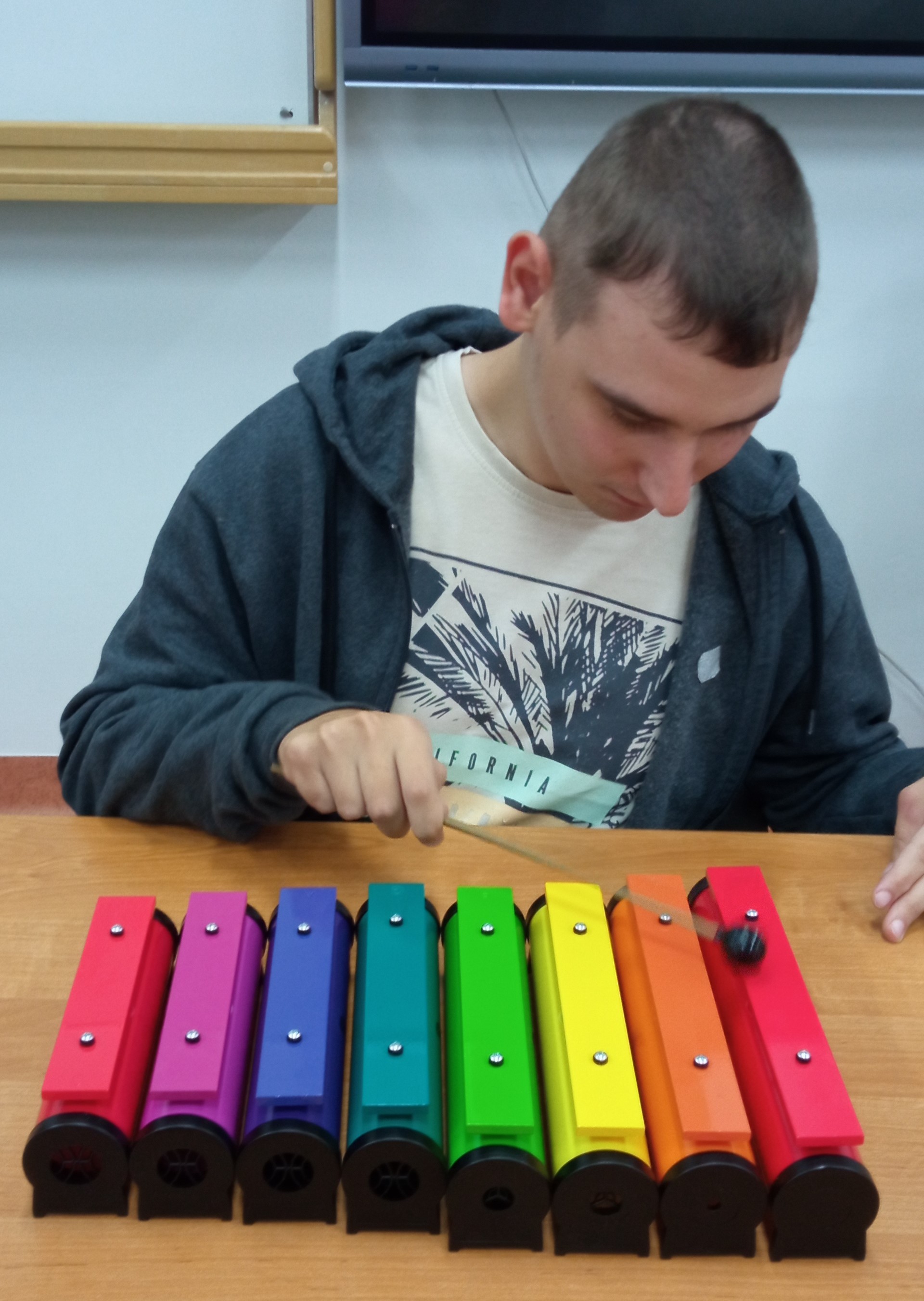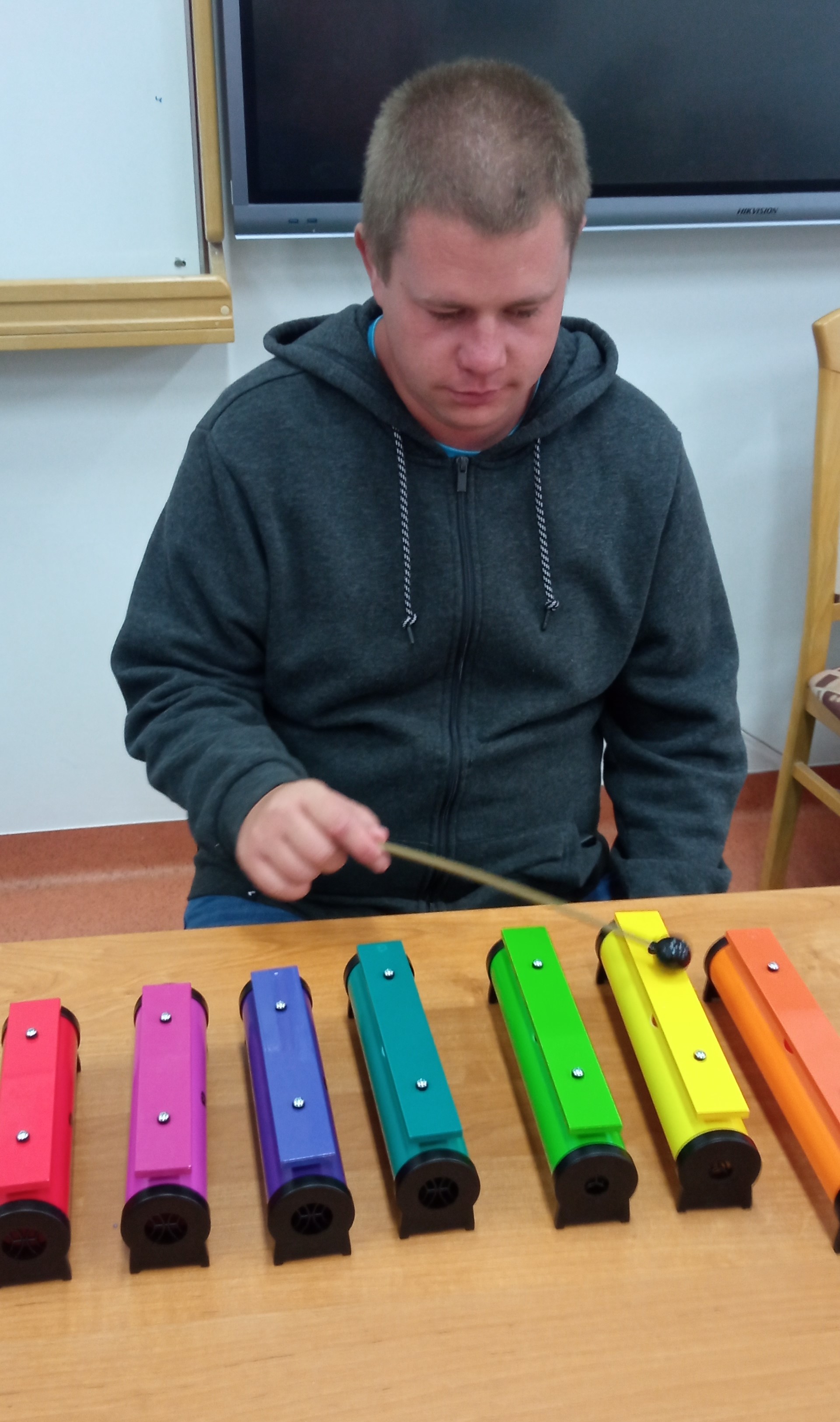 W ramach zajęć z arteterapii uczestnicy projektu Rehabilitacja 25 + biorą udział między innymi w zajęciach muzycznych. Poprzez tę formę terapii uczestnicy rozbudzają w sobie zamiłowanie do śpiewu, muzyki i tańca. Podczas zajęć stosowane sa różne techniki artystyczne: połączenie śpiewu z ruchem i zabawą. Niewątpliwą atrakcją zajęć jest wykorzystywanie instrumentów muzycznych. Uczestnicy uczyli się grać na bum bum rurkach, dzwonkach diatonicznych i oraz innych instrumentach podczas których wykorzystuje się metodę kolorowych dźwięków. Uczestniczyli w różnych wydarzeniach artystycznych taki jak: akademie, koncerty, konkursy, festiwale, imprezy okolicznościowe czy wyjazd do operetki dzięki czemu mogli być odbiorcami ale też twórcami sztuki.