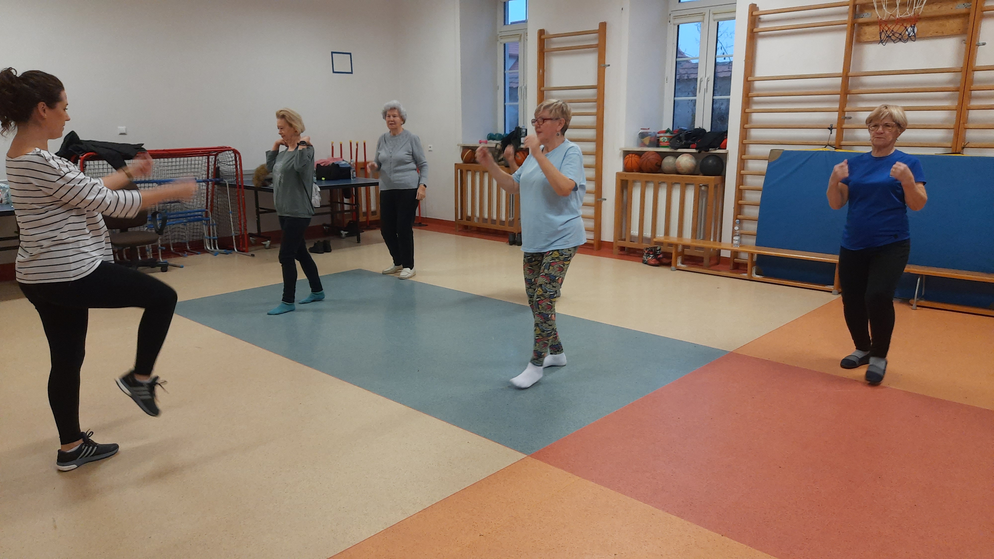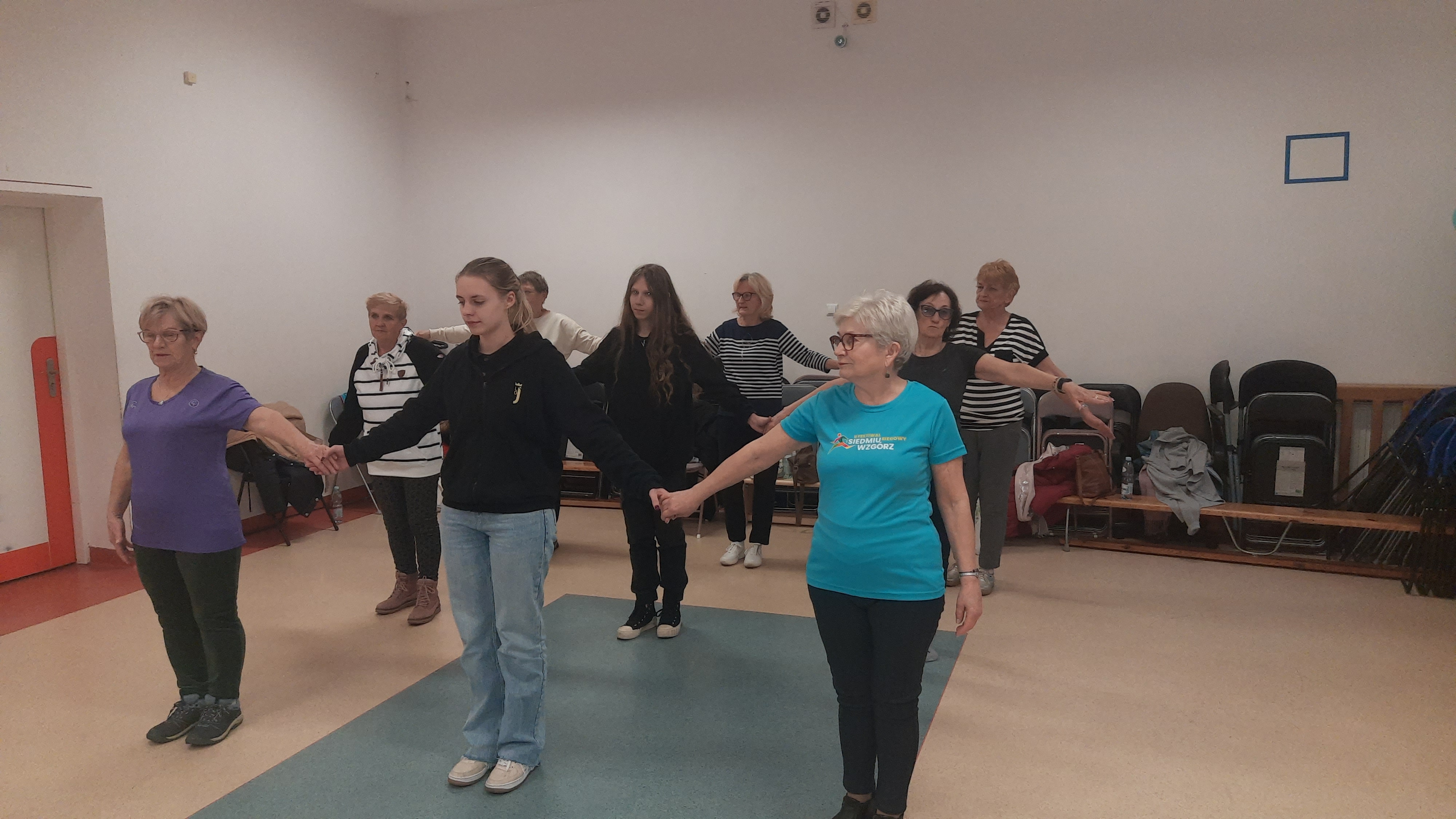 Rehabilitacyjnych „ W zdrowym ciele zdrowy duch” realizowane były poprzez aktywność ruchową i gimnastykę co pomogło poprawić kondycje zarówno seniorom jak i młodym. Był to czas spędzony w atmosferze radości, który pokazał jak ważne jest dbanie o kondycję fizyczną zarówno w wieku starszym jak i młodym.