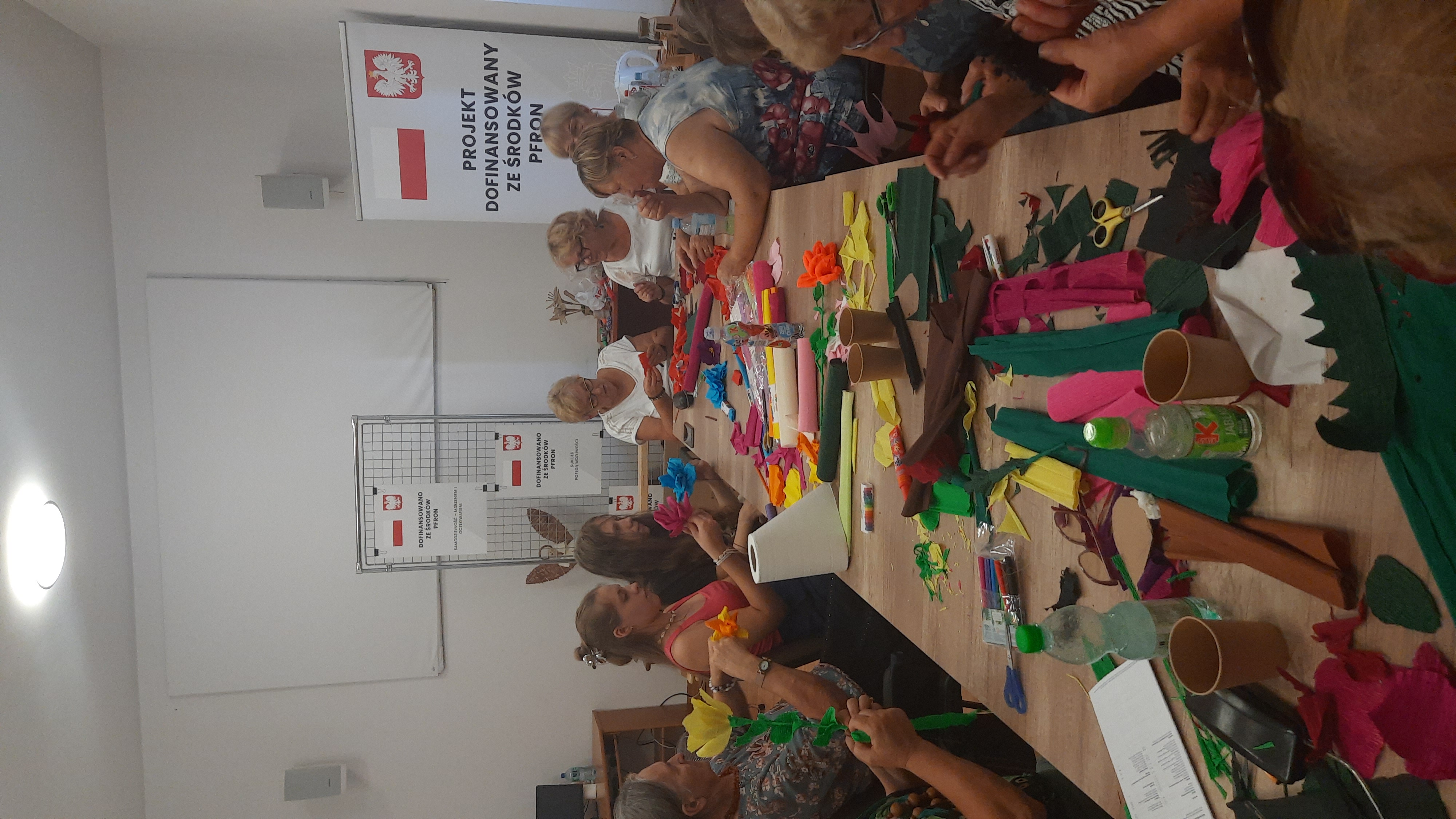 Florystycznych” Kwiat w nowej odsłonie” podczas, których uczestnicy rozwijali swoje talenty manualne tworząc piękne kompozycje kwiatowe, a także mieli okazję nauczyć się nowych kompozycji na różne okazje. Była to, również możliwość do wzajemnej współpracy, integracji i ubogacenia doświadczeniami. Młodzi dużo się nauczyli od starszych i odwrotnie.