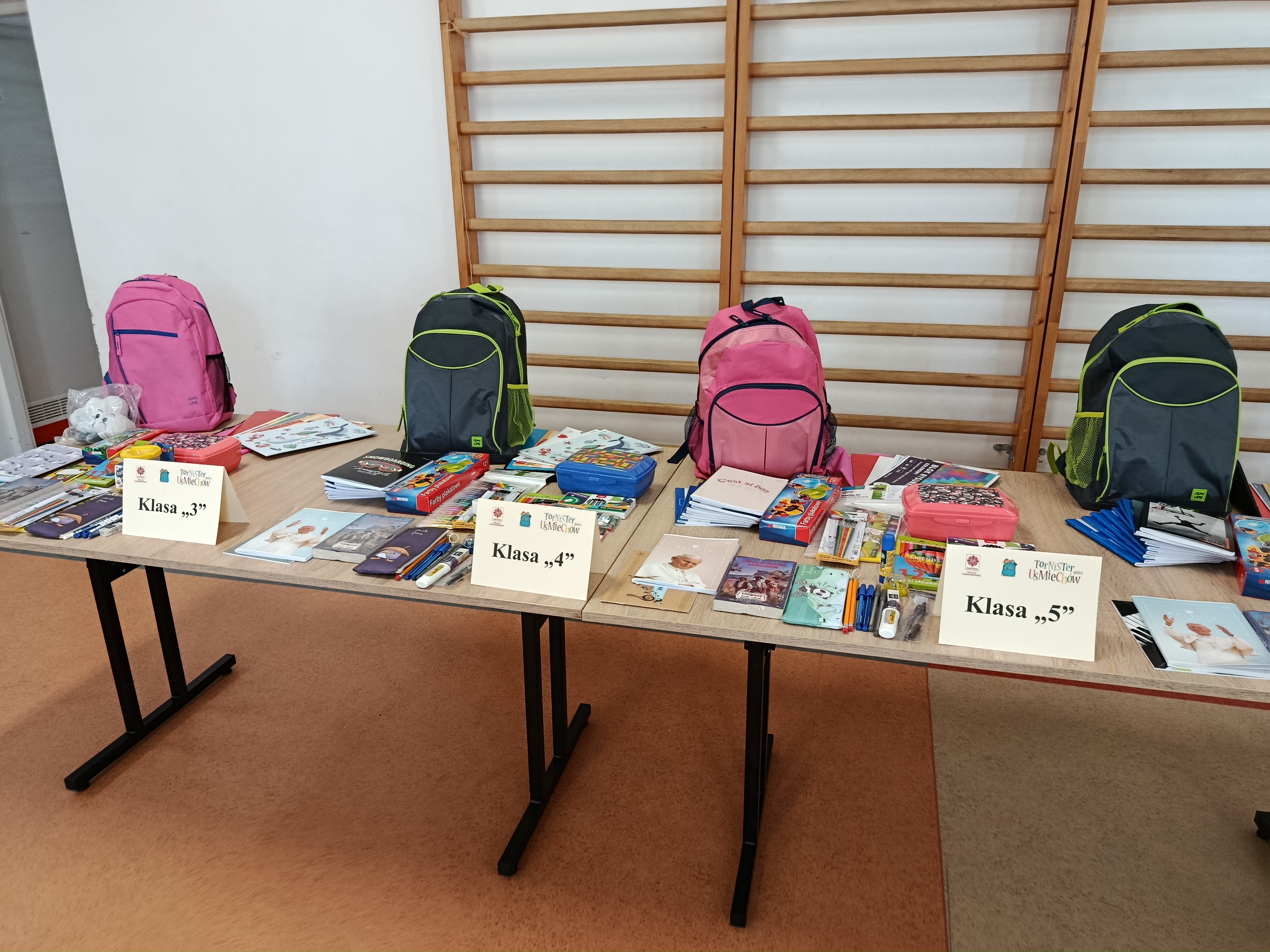 Każdy tornister został starannie wypełniony przyborami szkolnymi: od zeszytów i piórników, przez kredki i farby, aż po wszystkie niezbędne materiały, które pomogą dzieciom dobrze rozpocząć naukę. Zestawy zostały dostosowane do wieku uczniów, tak aby jak najlepiej odpowiadały ich potrzebom.