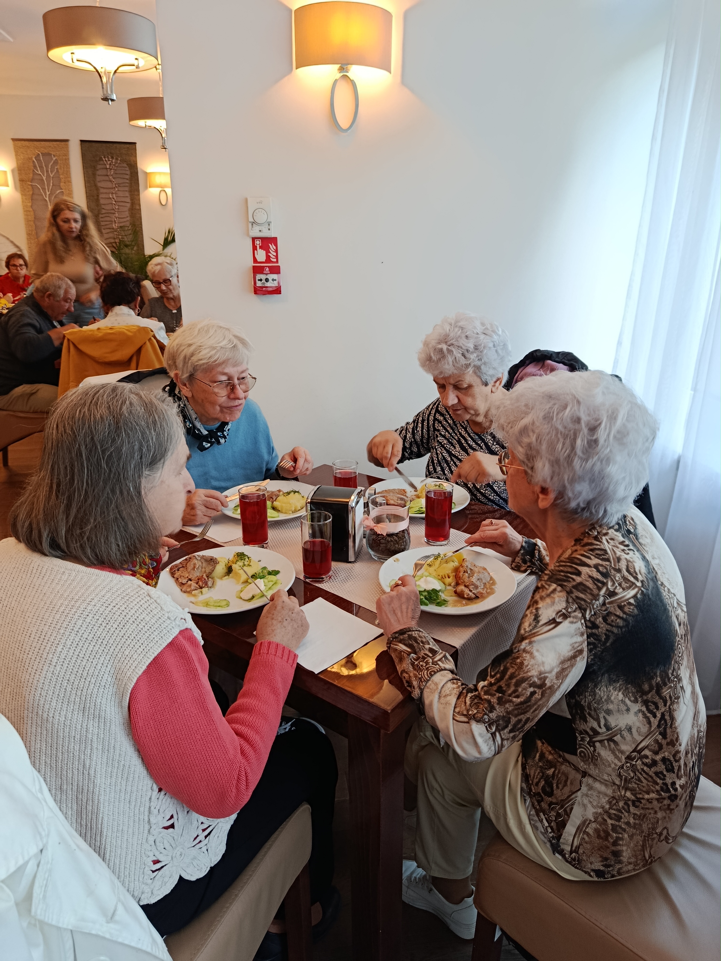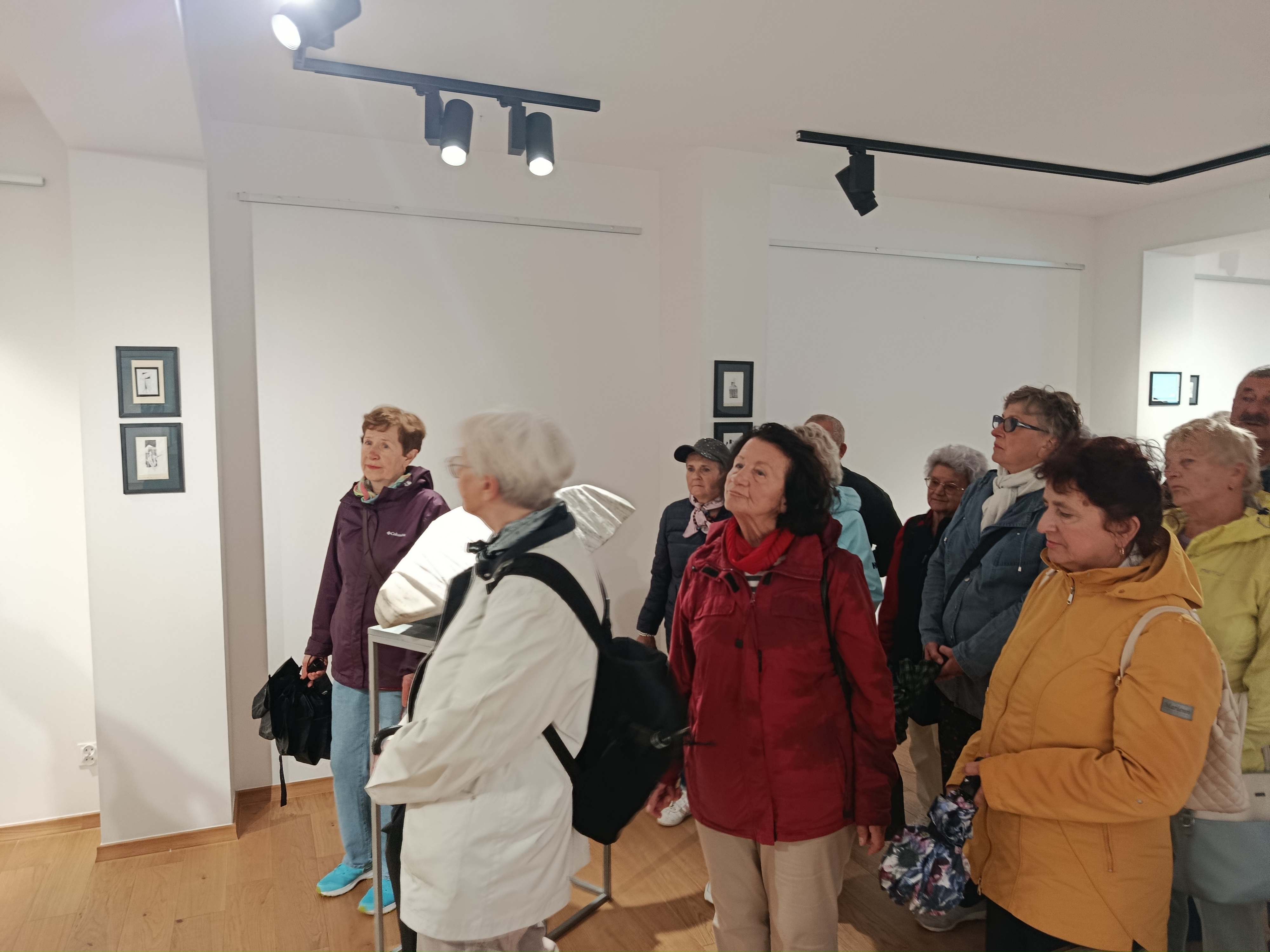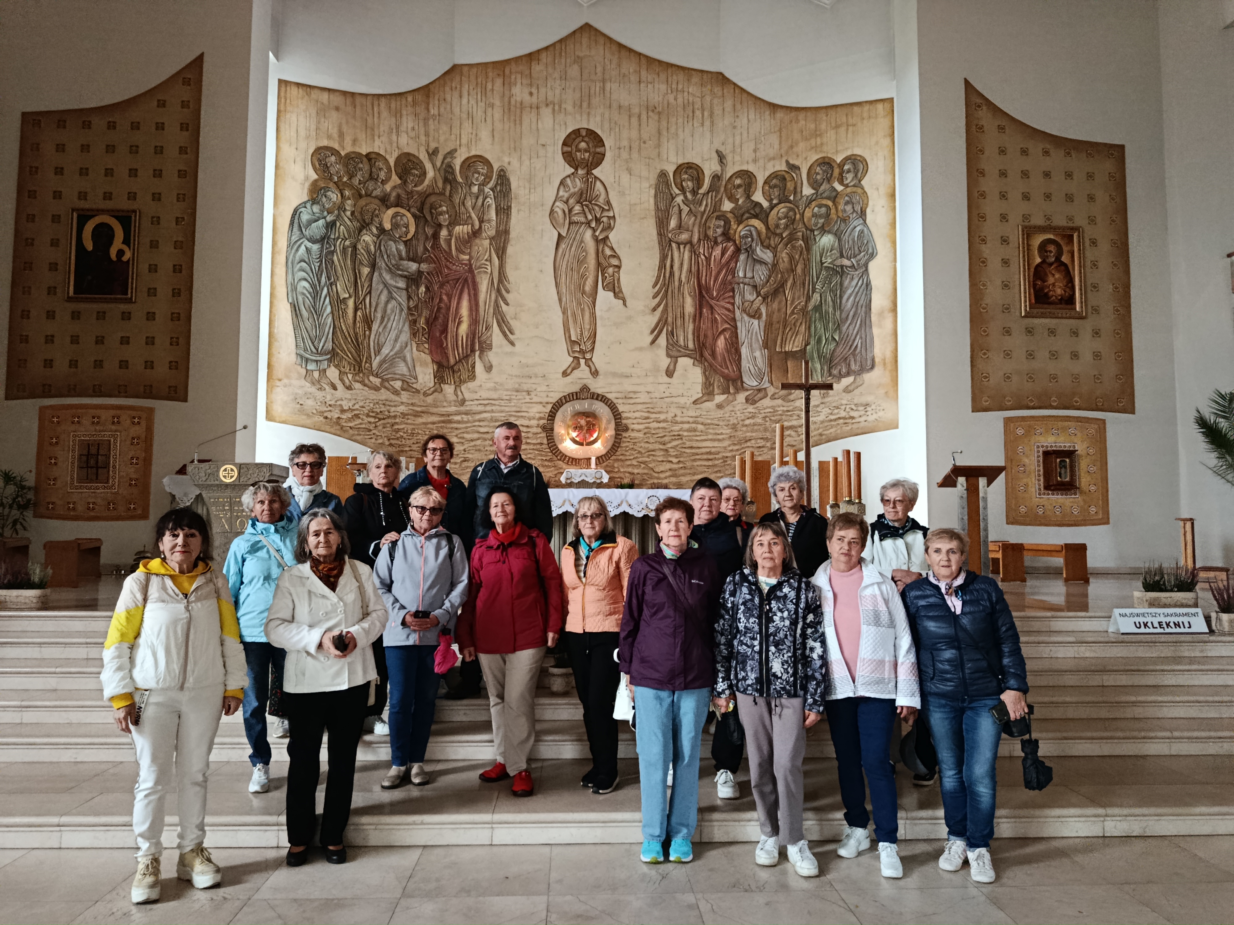 Ważnym punktem wycieczki była także wizyta w Galerii Polonia, gdzie seniorzy obejrzeli wystawę „She” autorstwa Kornela Arciszewskiego. Ekspozycja wywarła na uczestnikach duże wrażenie i stała się inspiracją do ciekawych rozmów. Po wspólnym obiedzie i chwili odpoczynku ostatnim etapem podróży było zwiedzanie Sanktuarium Brata Alberta Chmielowskiego.