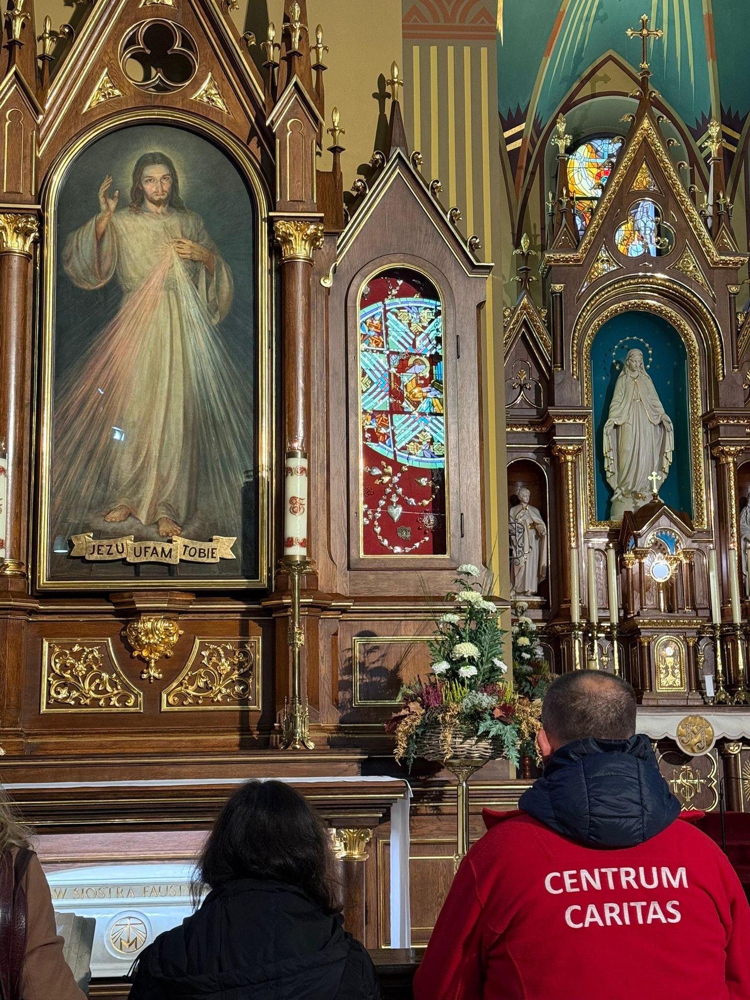 Po Mszy Świętej pielgrzymi mieli możliwość osobistej modlitwy w Kaplicy z cudownym obrazem Jezusa Miłosiernego oraz przy grobie św. Faustyny Kowalskiej. Dla wielu był to czas głębokiego skupienia i ciszy, w której można było na nowo doświadczyć pokoju płynącego z Bożej obecności.