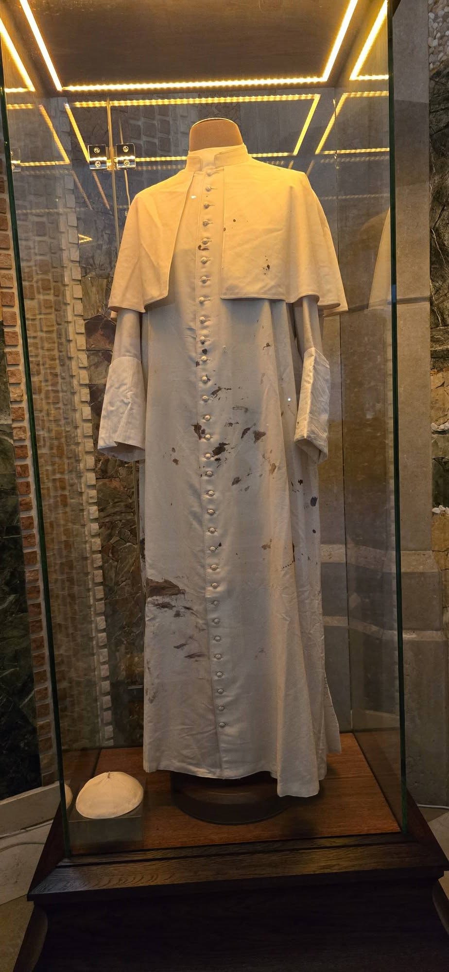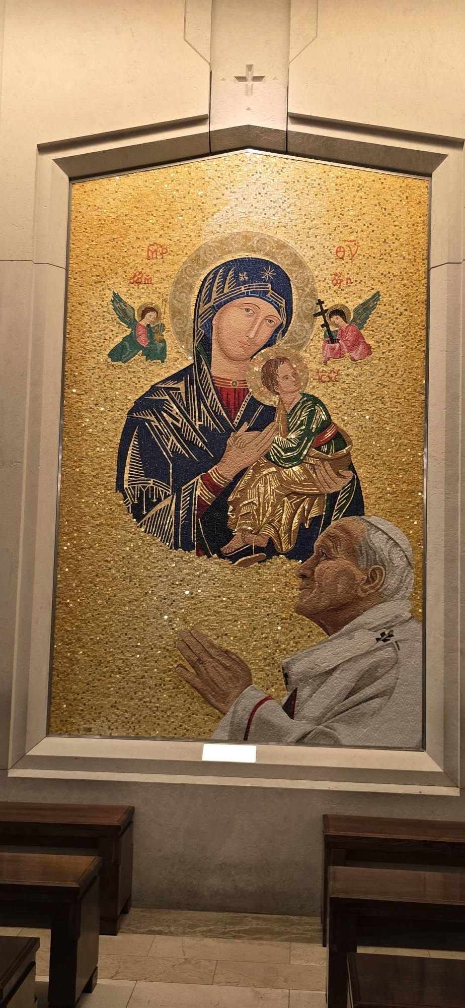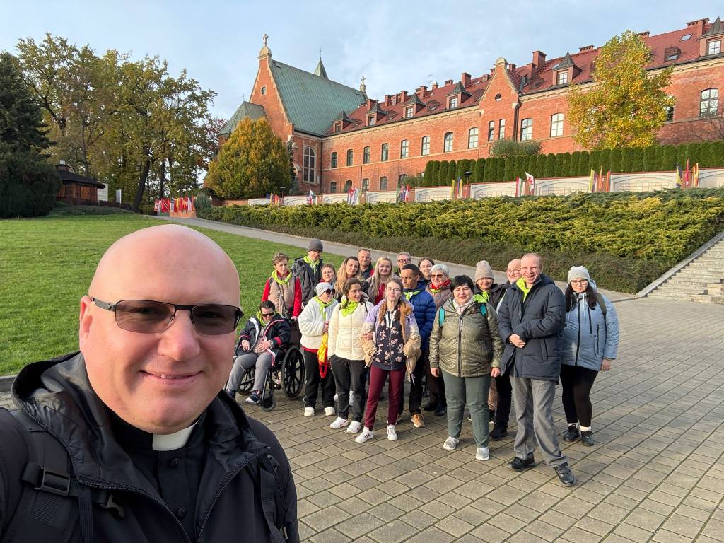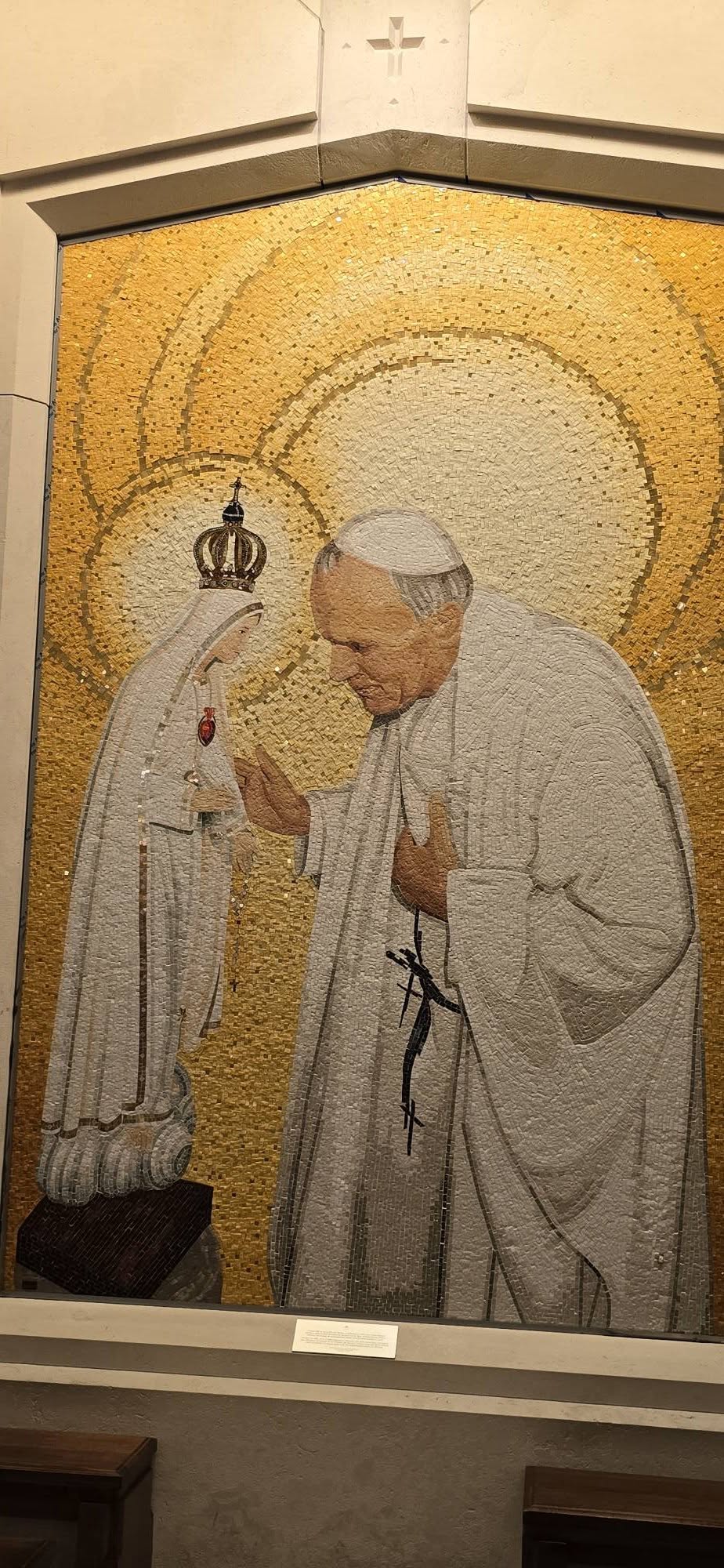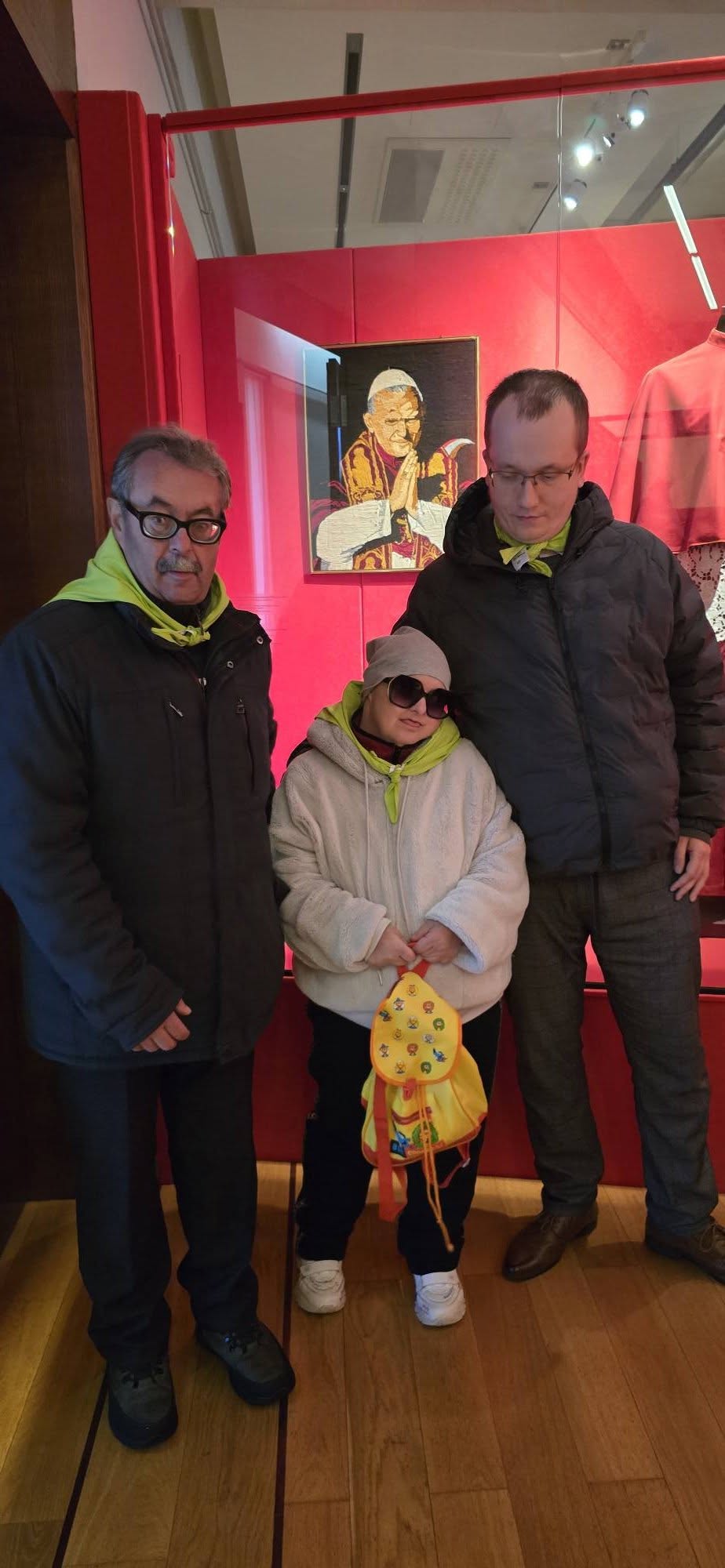 Kolejnym etapem duchowej wędrówki było Sanktuarium św. Jana Pawła II. Tam zwiedziliśmy Muzeum św. Jana Pawła II, które w niezwykle przejmujący sposób ukazuje życie i pontyfikat Papieża Polaka. Ekspozycja przybliżyła pielgrzymom jego nauczanie o miłosierdziu, pokoju i godności człowieka. Szczególne wrażenie wywarły autentyczne pamiątki z życia Świętego, w tym fragment sutanny z dnia zamachu oraz liczne fotografie dokumentujące jego posługę na całym świecie.