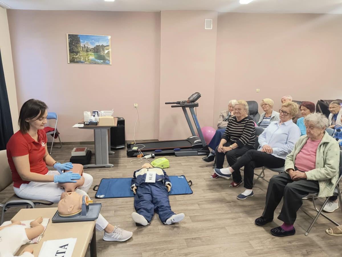 W ramach Projektu przyprowadzony został kurs pierwszej pomocy dla seniorów. To bardzo wartościowa inicjatywa — zarówno dla samych seniorów, jak i ich opiekunów czy bliskich. Celem spotkania z zakresu bezpieczeństwa było zapoznanie się z najważniejszymi zasadami z zakresu udzielania pierwszej pomocy — z uwzględnieniem sytuacji, które najczęściej zdarzają się w tej grupie wiekowej.