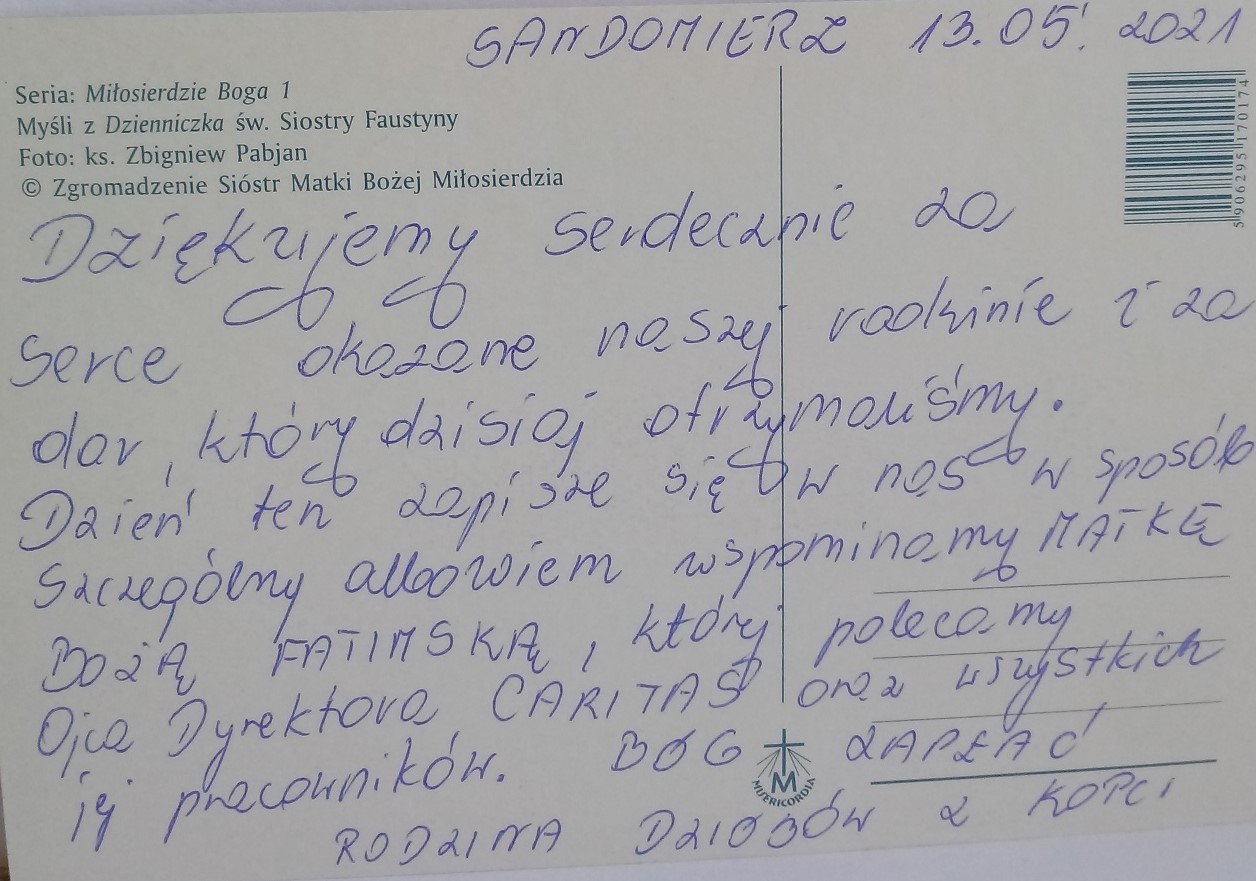 Serdecznie dziękujemy, Bóg zapłać.